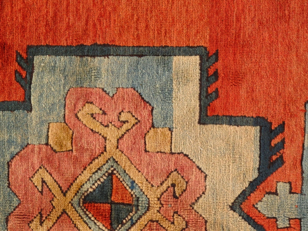 Serapi Design rug. Hand knotted 100% hand-spun lamb's wool rug with all natural dyes. Lamb's Wool on a Wool Foundation this rug has a dense, soft pile, and excellent quality, to ensure that you will enjoy the look and feel of your rug for years to come. From Turkey.