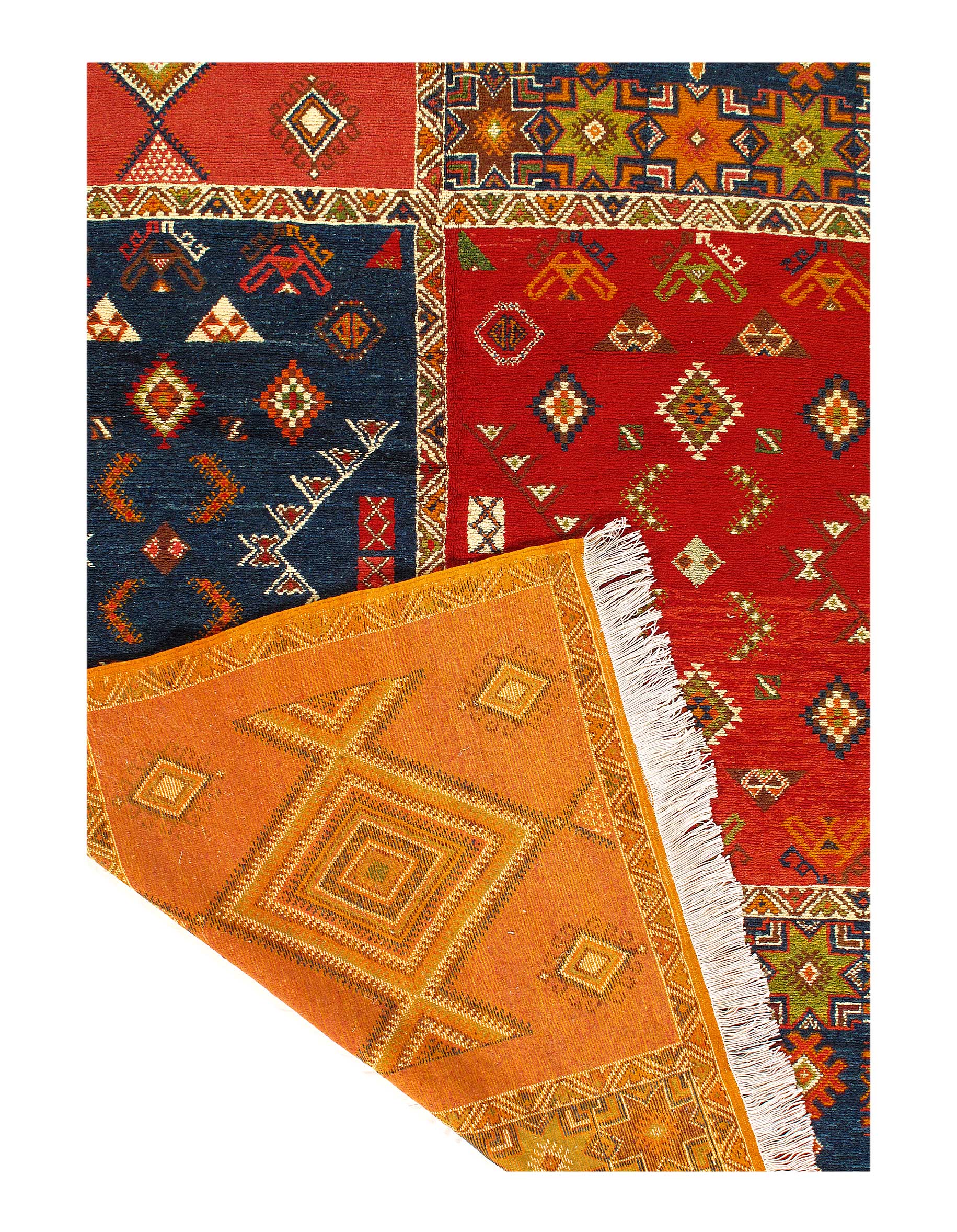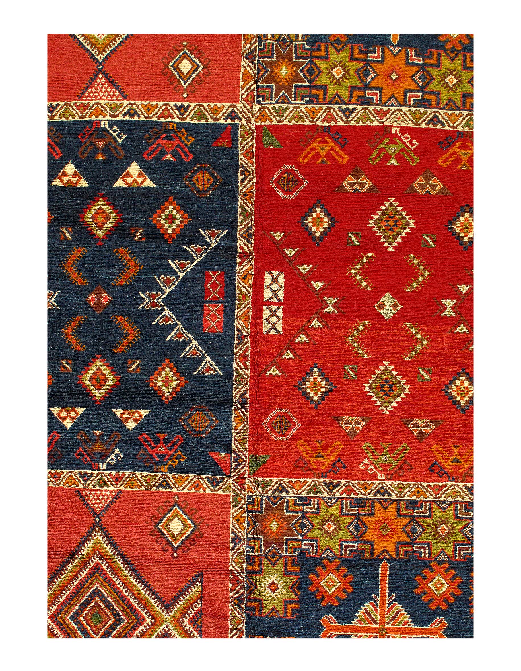 This is a true Moroccan magnum opus, full of art, vibrancy and character. Vintage rugs share the wisdom and elegance that comes with age, while still retaining its flair. These rugs have matured to allow the softening of the colours while extracting some of the natural Lanolin oil contained in the wool fibres to produce a beautiful finish.