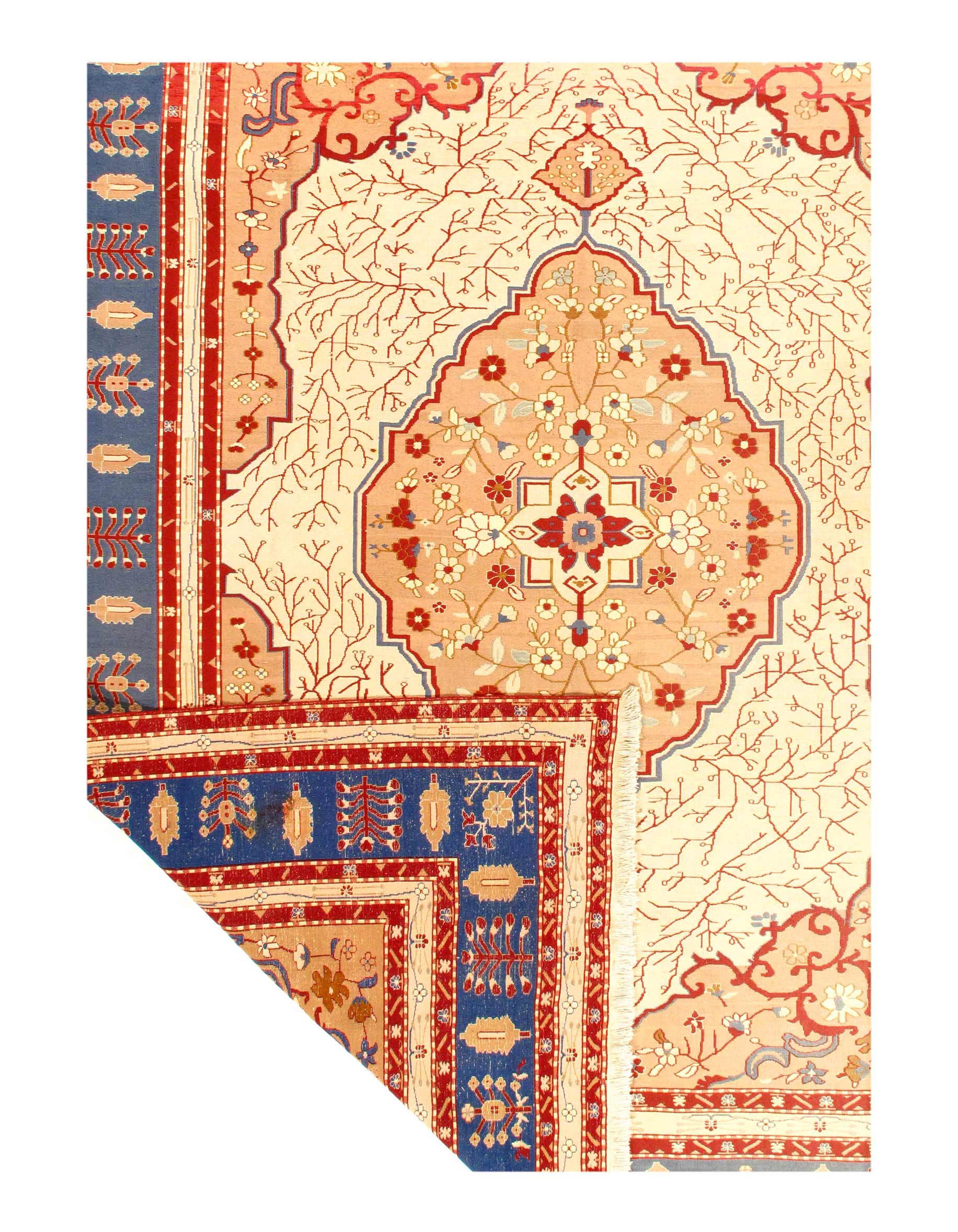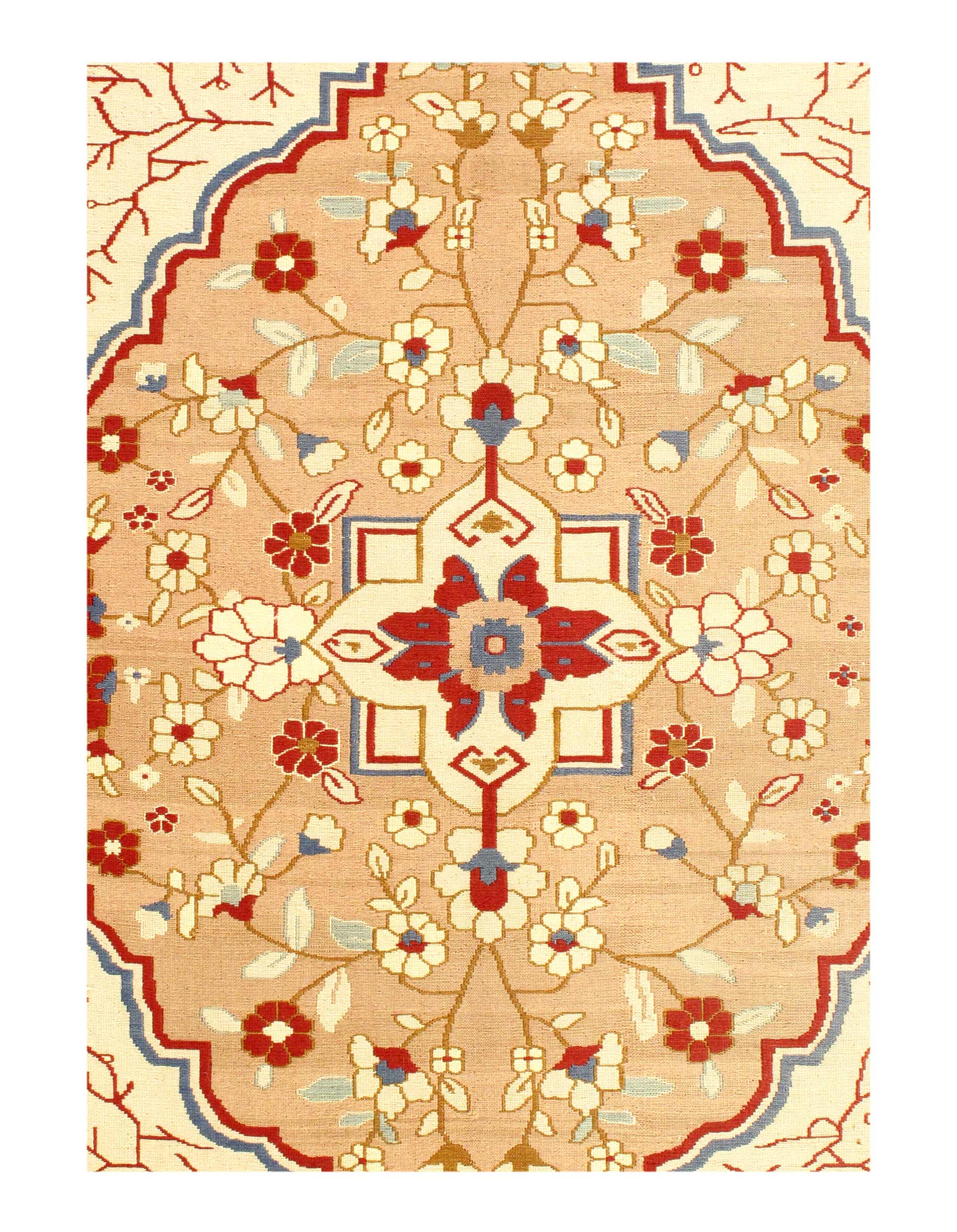 Beautiful area rug from our Flat Weave, Tribal Collection Fine Hand Knotted Ivory Rug with other colors Select Color, Orange, L.Blue in the Rug. It wool on a Cotton foundation.