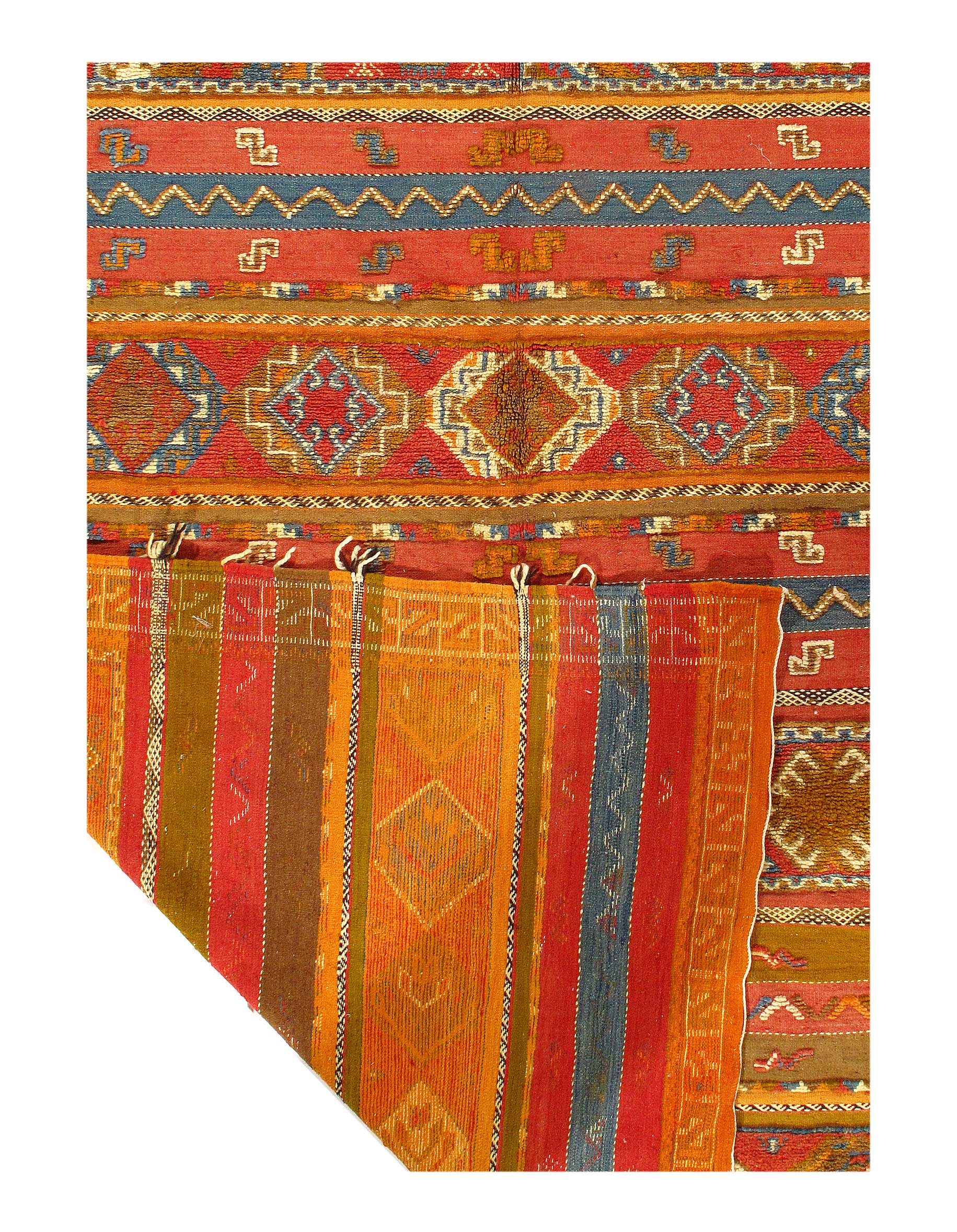 This is a true Moroccan magnum opus, full of art, vibrancy and character. Vintage rugs share the wisdom and elegance that comes with age, while still retaining its flair. These rugs have matured to allow the softening of the colours while extracting some of the natural Lanolin oil contained in the wool fibres to produce a beautiful finish.