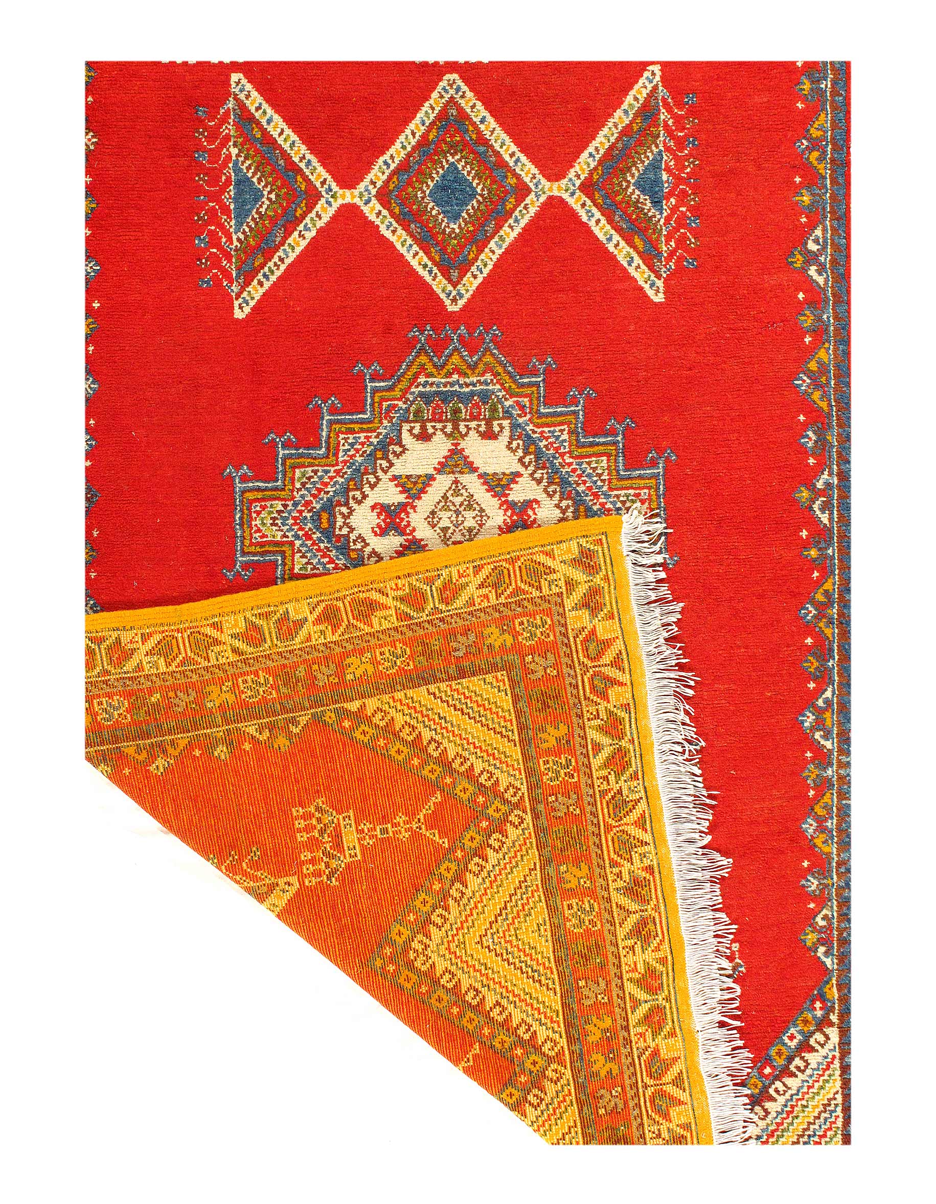 This is a true Moroccan magnum opus, full of art, vibrancy and character. Vintage rugs share the wisdom and elegance that comes with age, while still retaining its flair. These rugs have matured to allow the softening of the colours while extracting some of the natural Lanolin oil contained in the wool fibres to produce a beautiful finish.