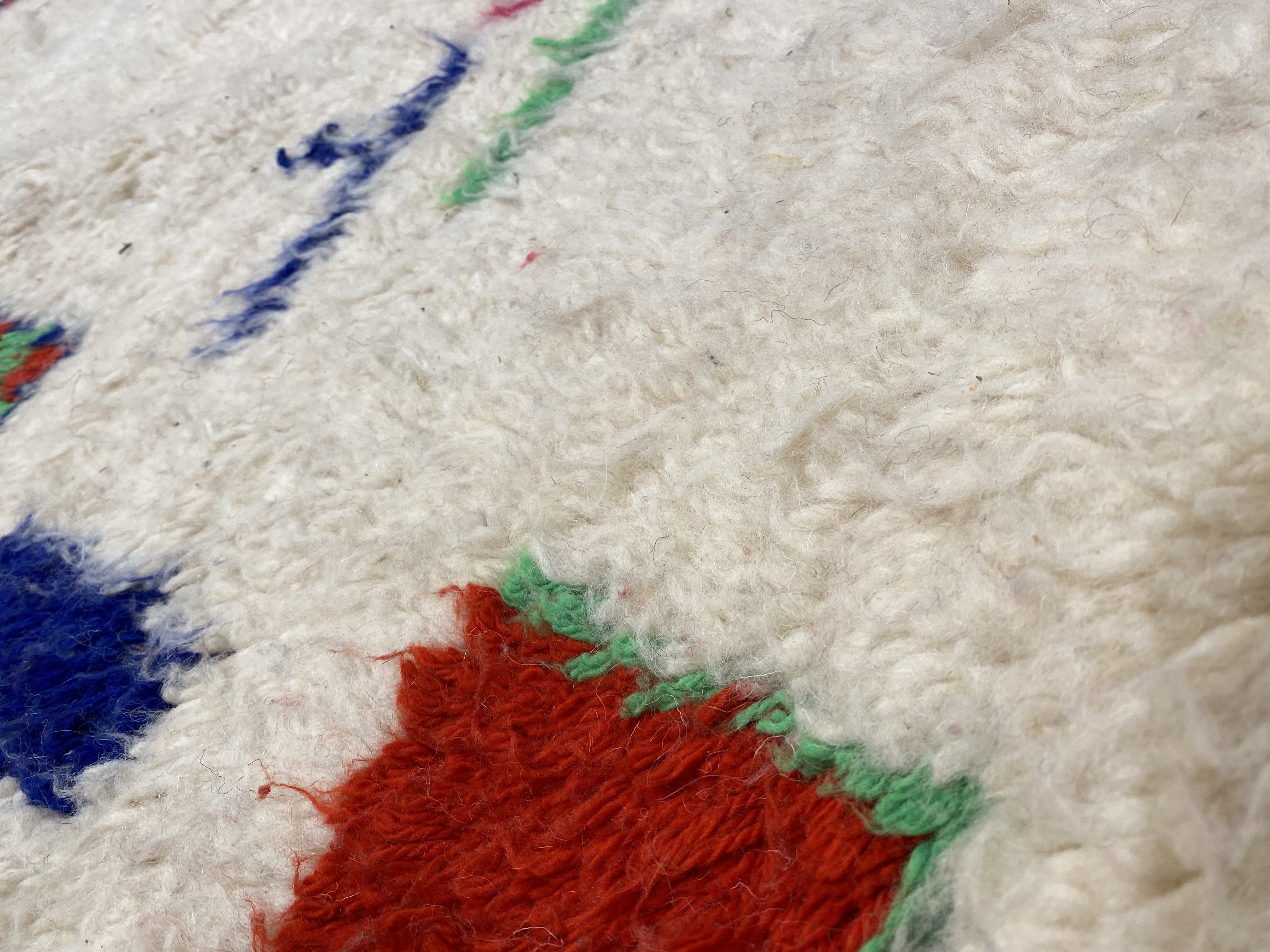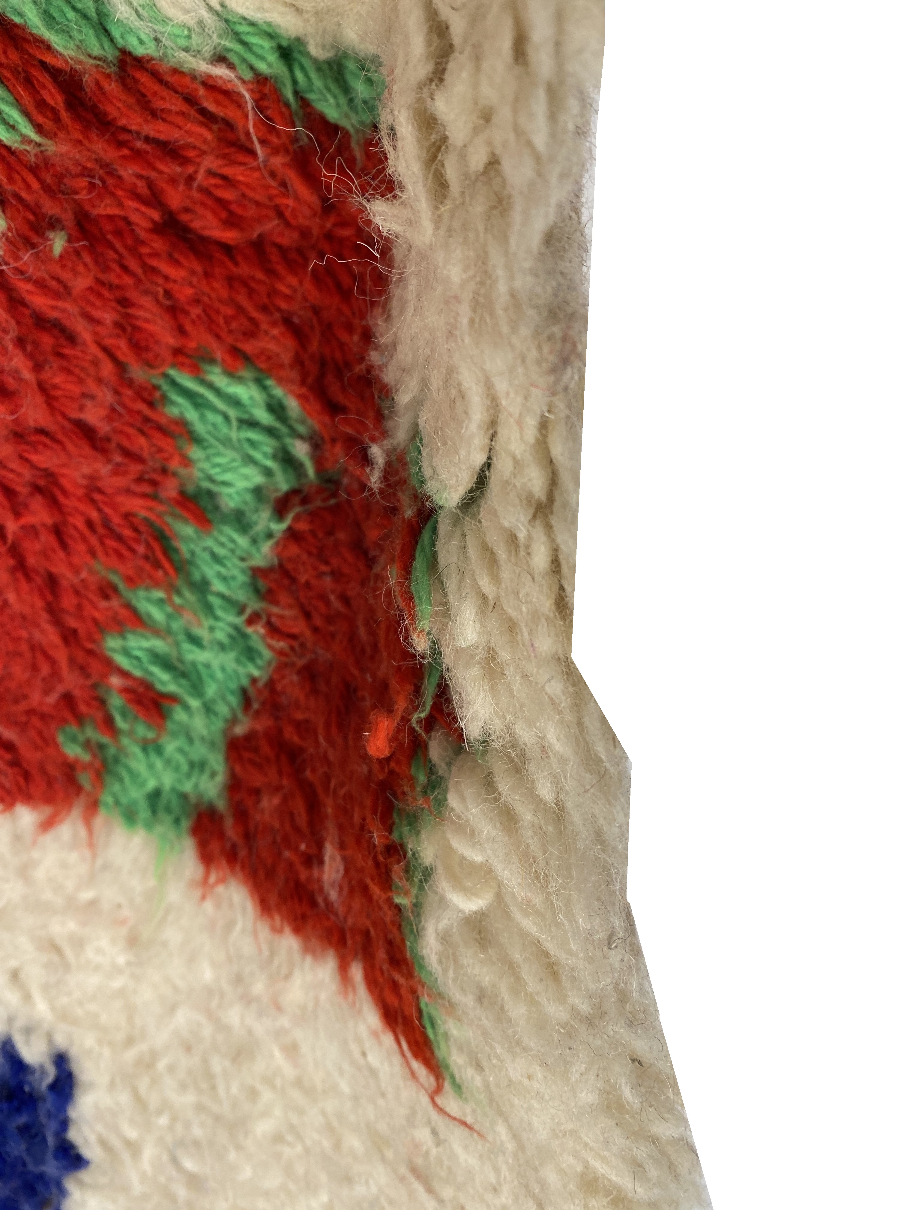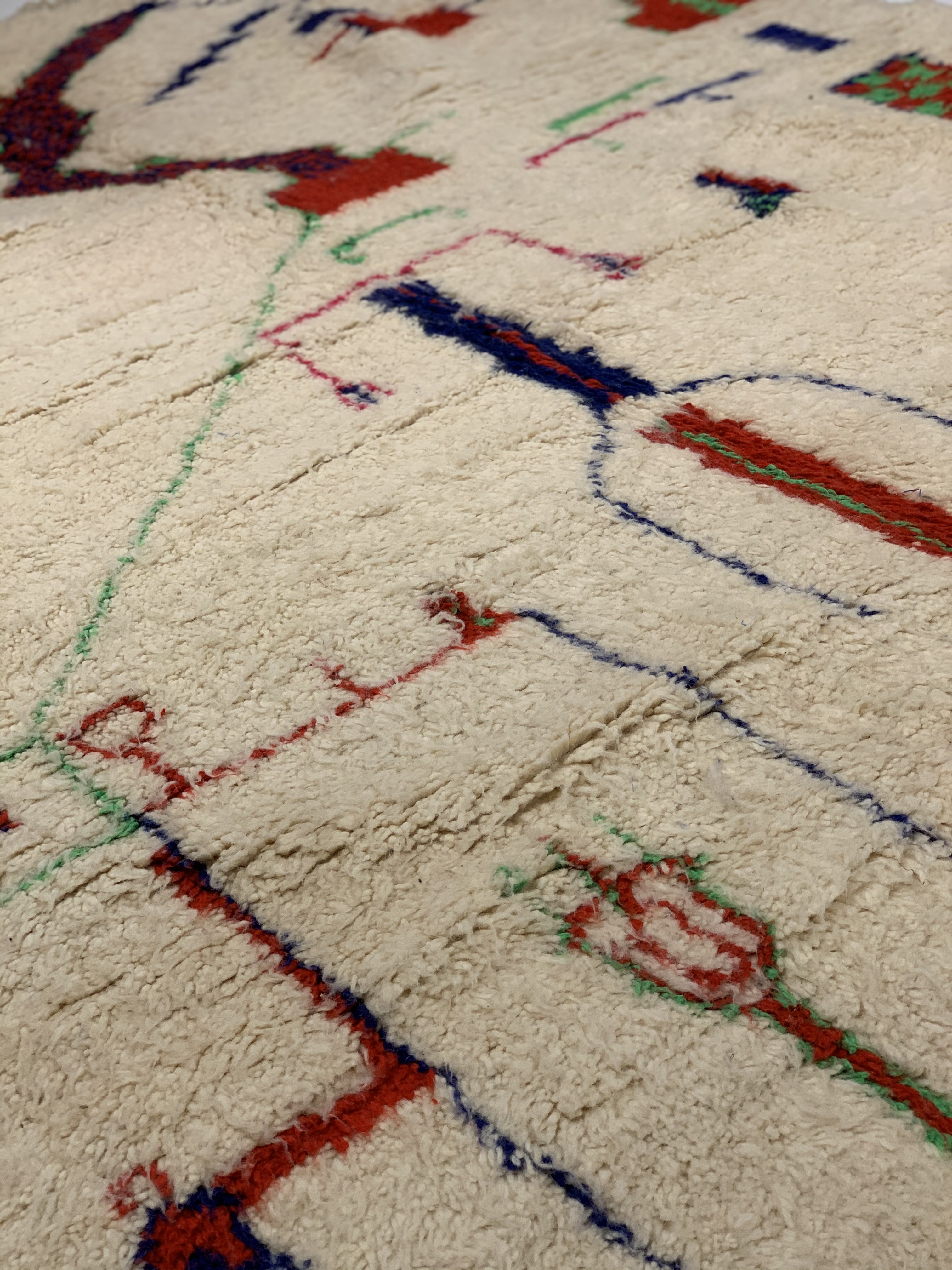 This is a true Moroccan magnum opus, full of art, vibrancy and character. Vintage rugs share the wisdom and elegance that comes with age, while still retaining its flair. These rugs have matured to allow the softening of the colours while extracting some of the natural Lanolin oil contained in the wool fibres to produce a beautiful finish.