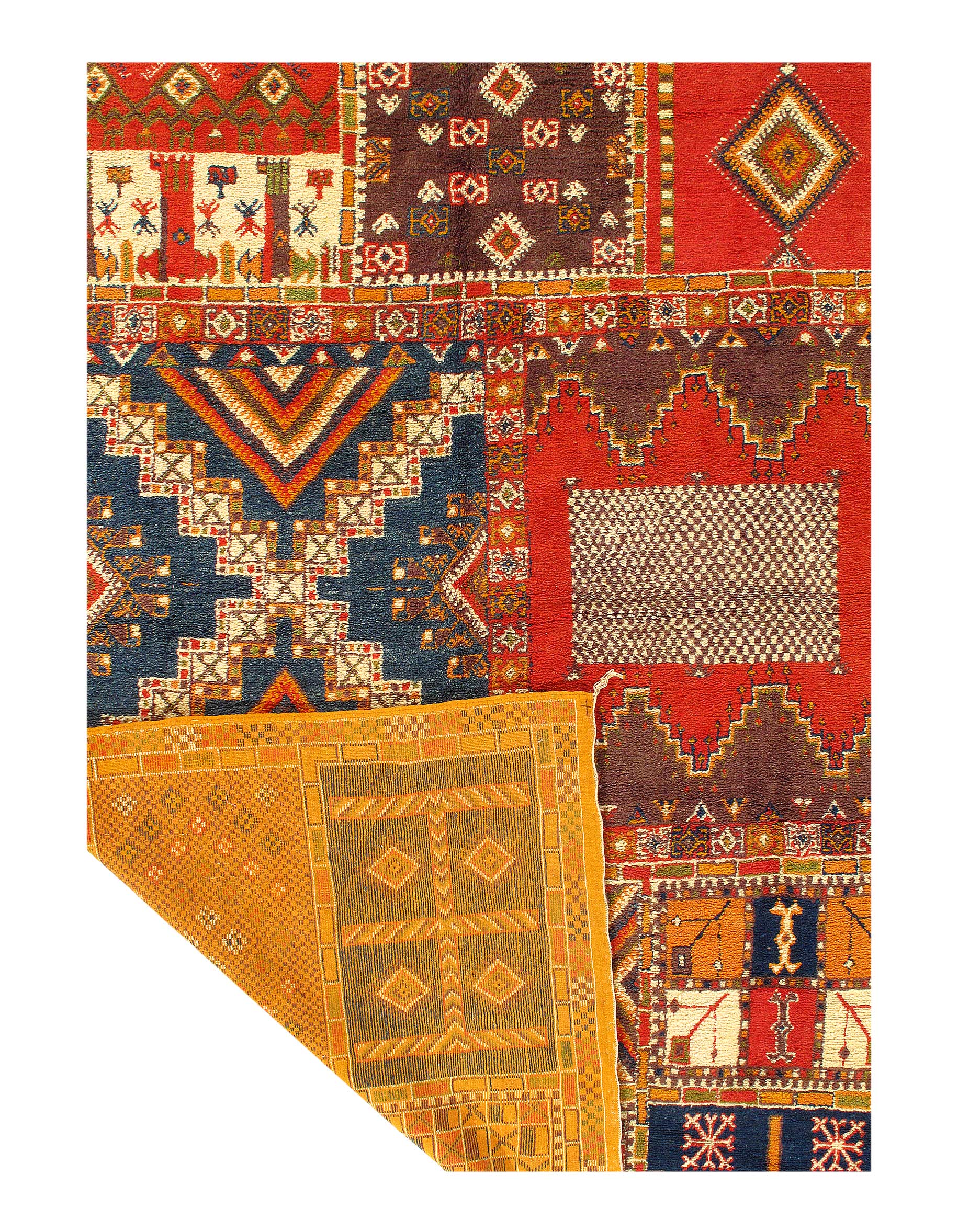 This is a true Moroccan magnum opus, full of art, vibrancy and character. Vintage rugs share the wisdom and elegance that comes with age, while still retaining its flair. These rugs have matured to allow the softening of the colours while extracting some of the natural Lanolin oil contained in the wool fibres to produce a beautiful finish.
