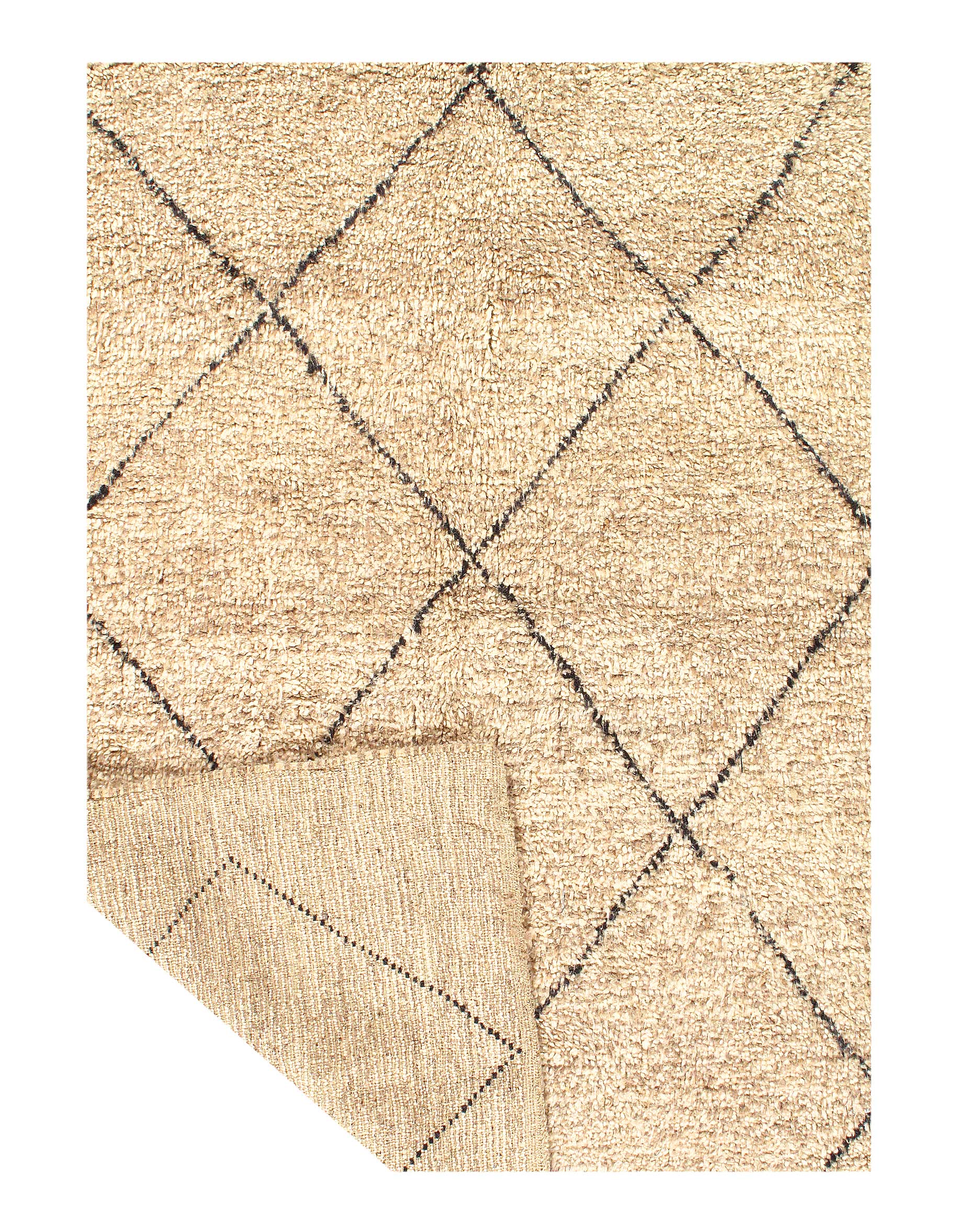 This is a precious Moroccan treasure, full of art, gentleness and elegance. This luxurious Moroccan rug features a profound design steeped in Moroccan folklore. It charms those who walk on this elegant rug with good tidings and prosperity.