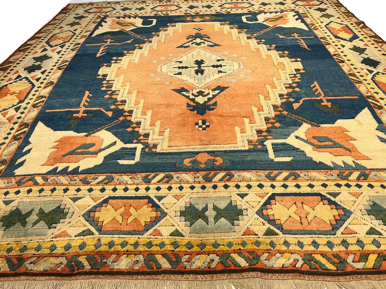Turkish Serapi design rug. Handmade and hand-knotted in fine lambswool on a cotton foundation. Vegetable dyed hand-spun wool rug.