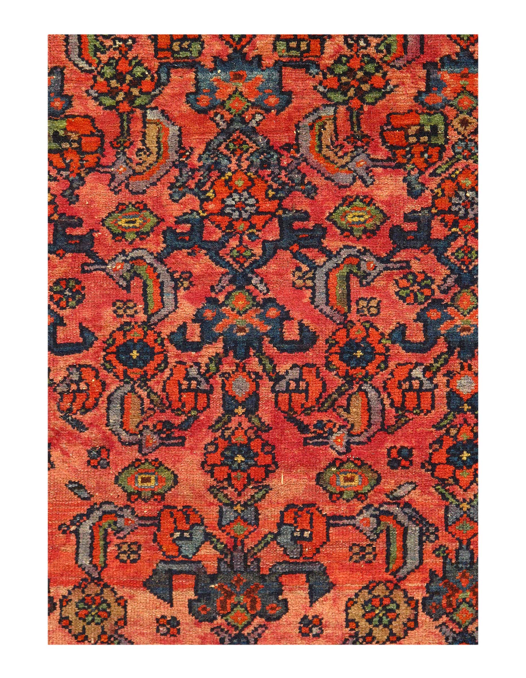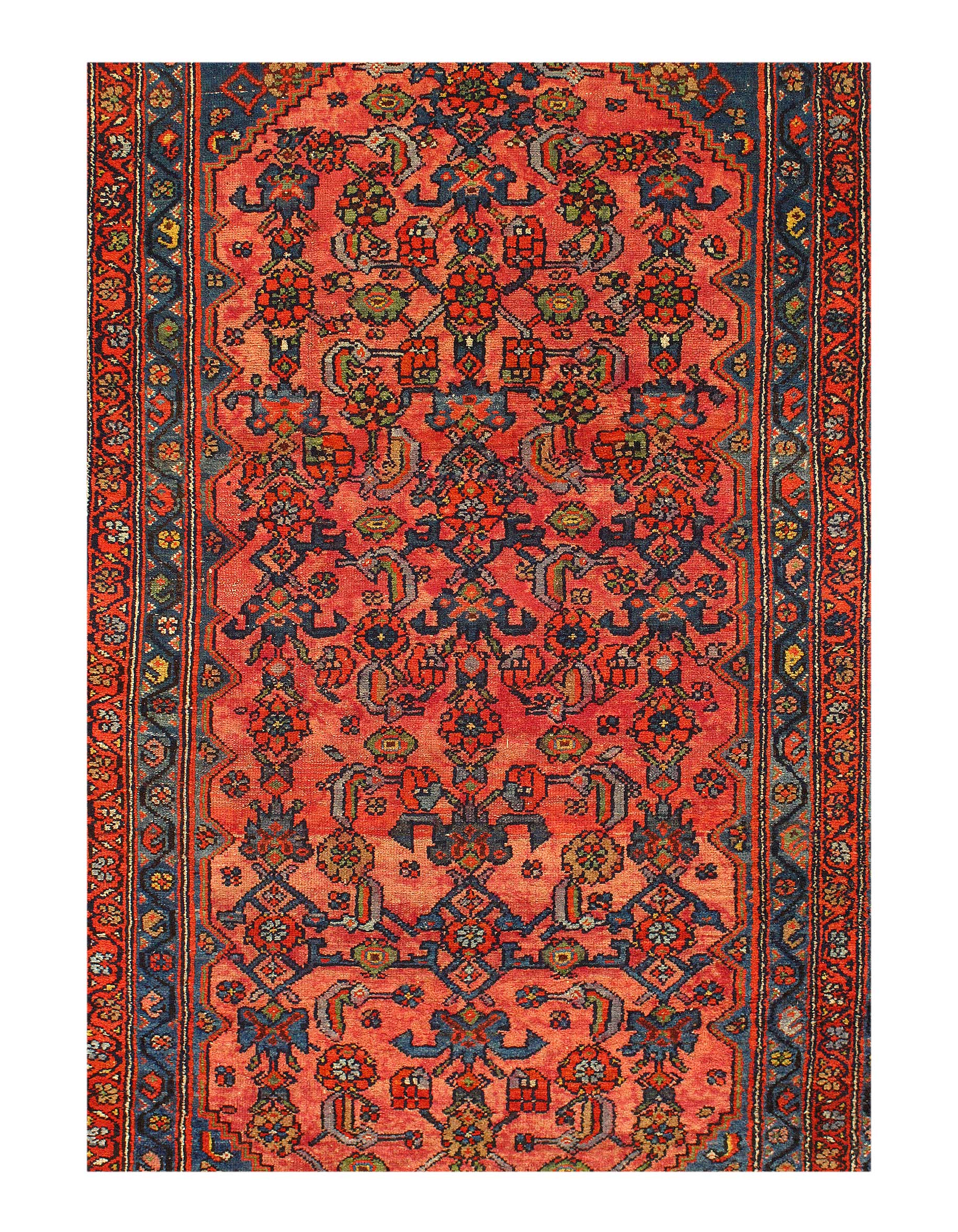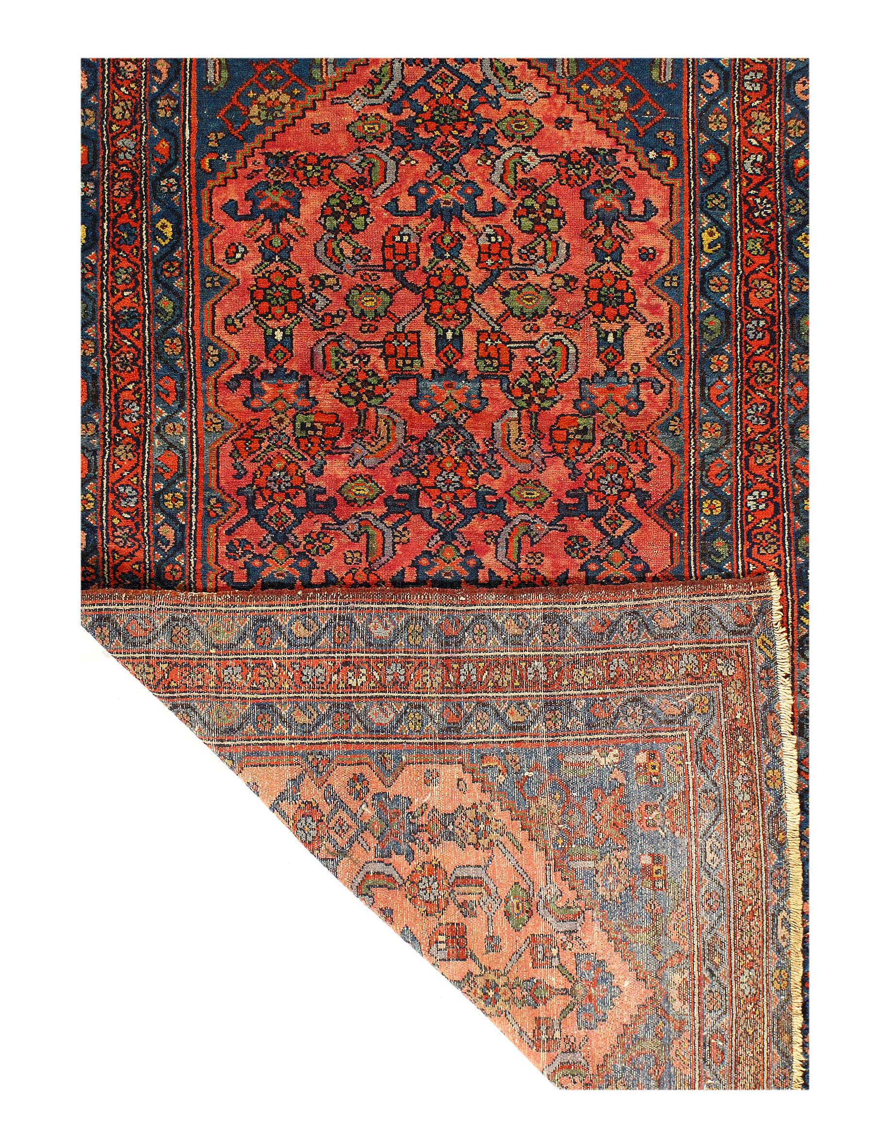 Hand knotted in a village around Hamadan, western Iran. Hamadan rugs can originate from any one of hundreds of villages across the vast region. While materials used can vary from one village to another, one uniting characteristic of this area is that virtually all Hamadan rugs are single-wefted, unlike most tribal rugs which are double-wefted. This particular Persian antique rug is in excellent condition and has superb quality wool that must be felt to be fully realized. As far as Hamadans go, this piece is outstanding.