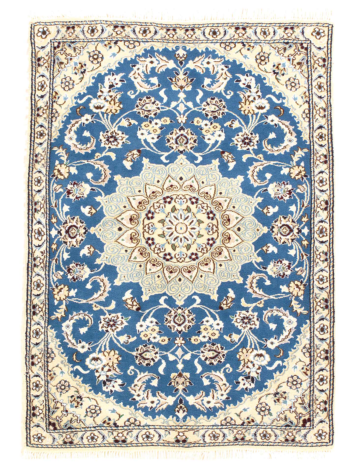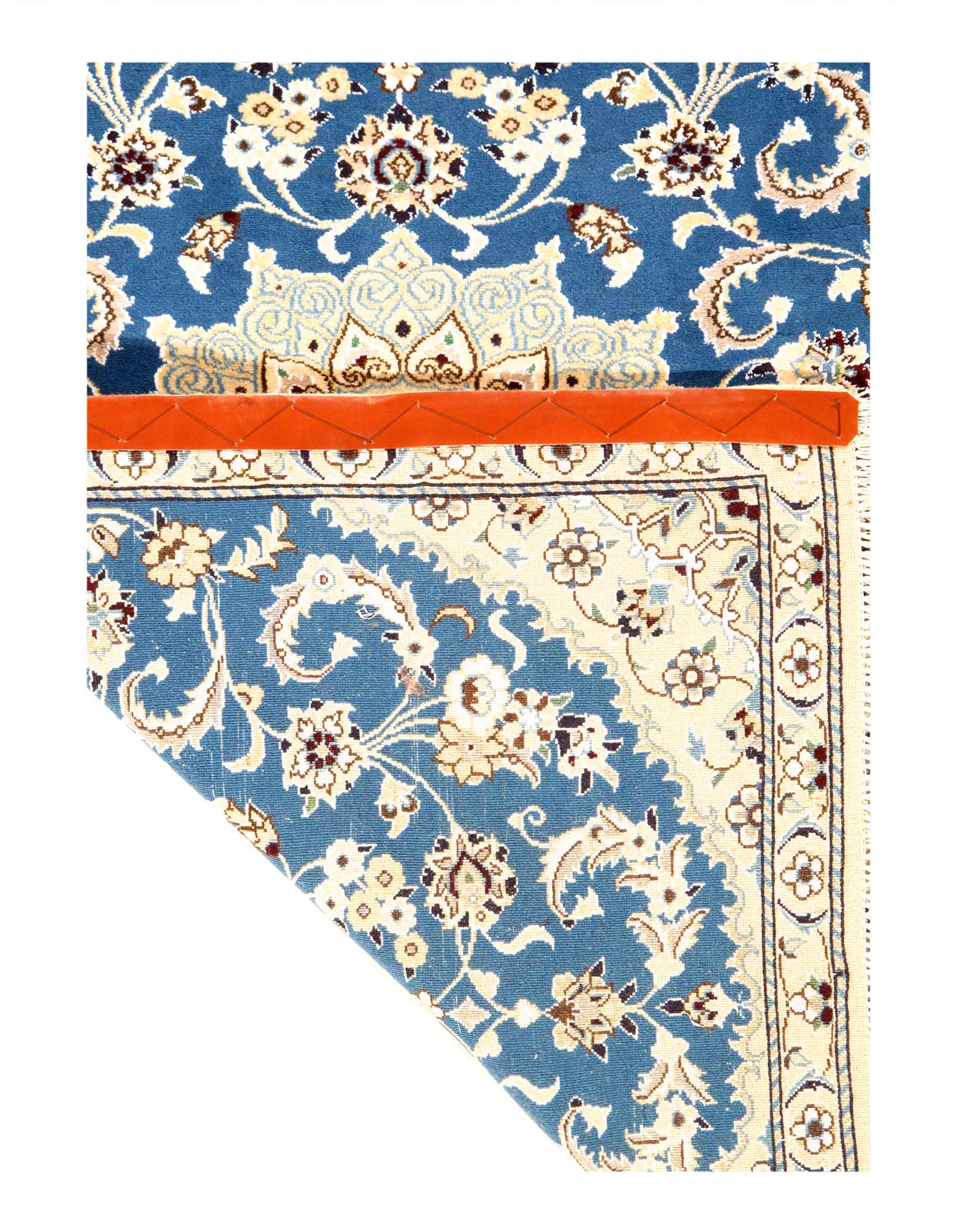 Hand knotted Nain rug ,Original Fine Persian Rug. Handmade Hand-knotted Silk & korker wool .Classical combination of colors blue ground with cream border .