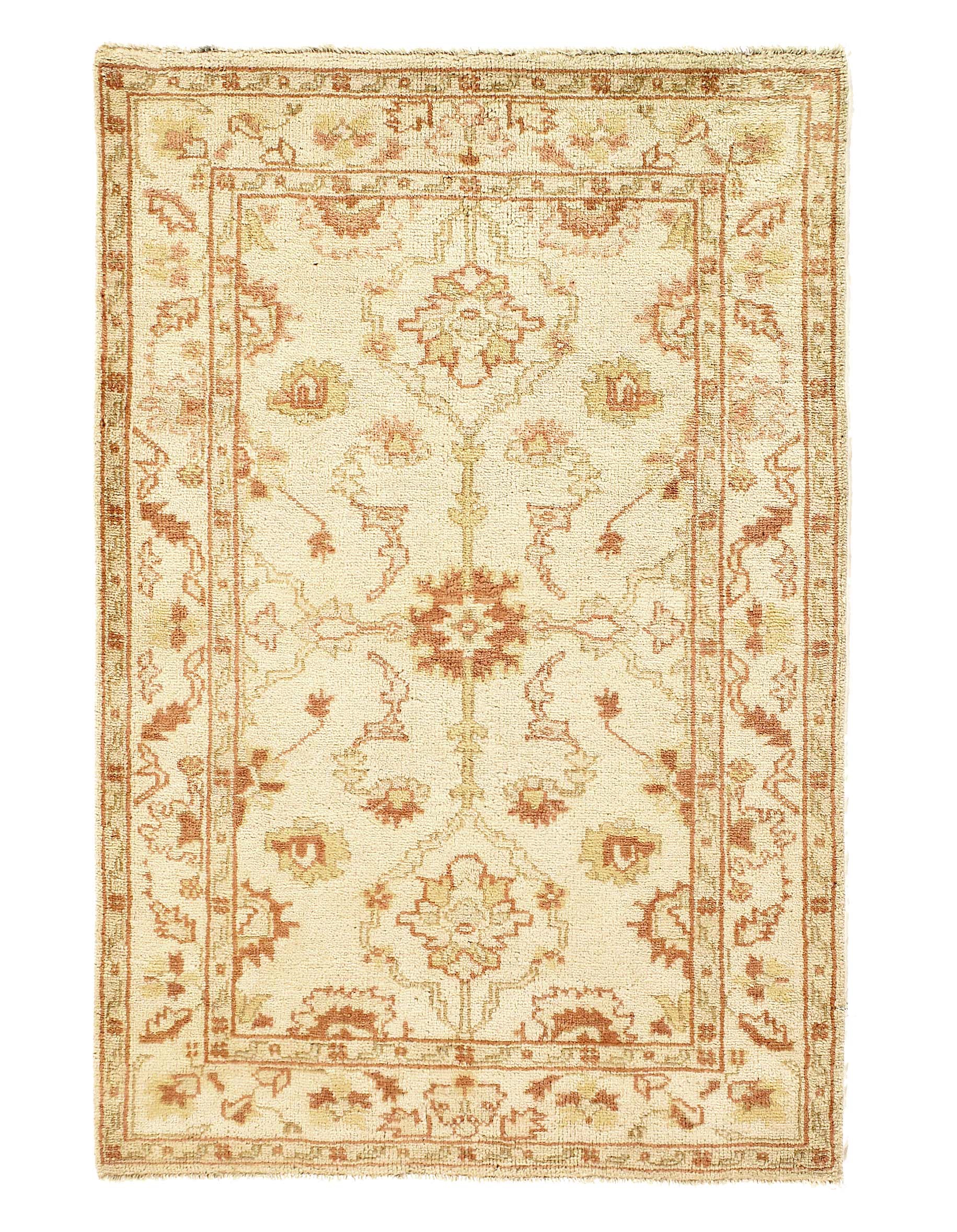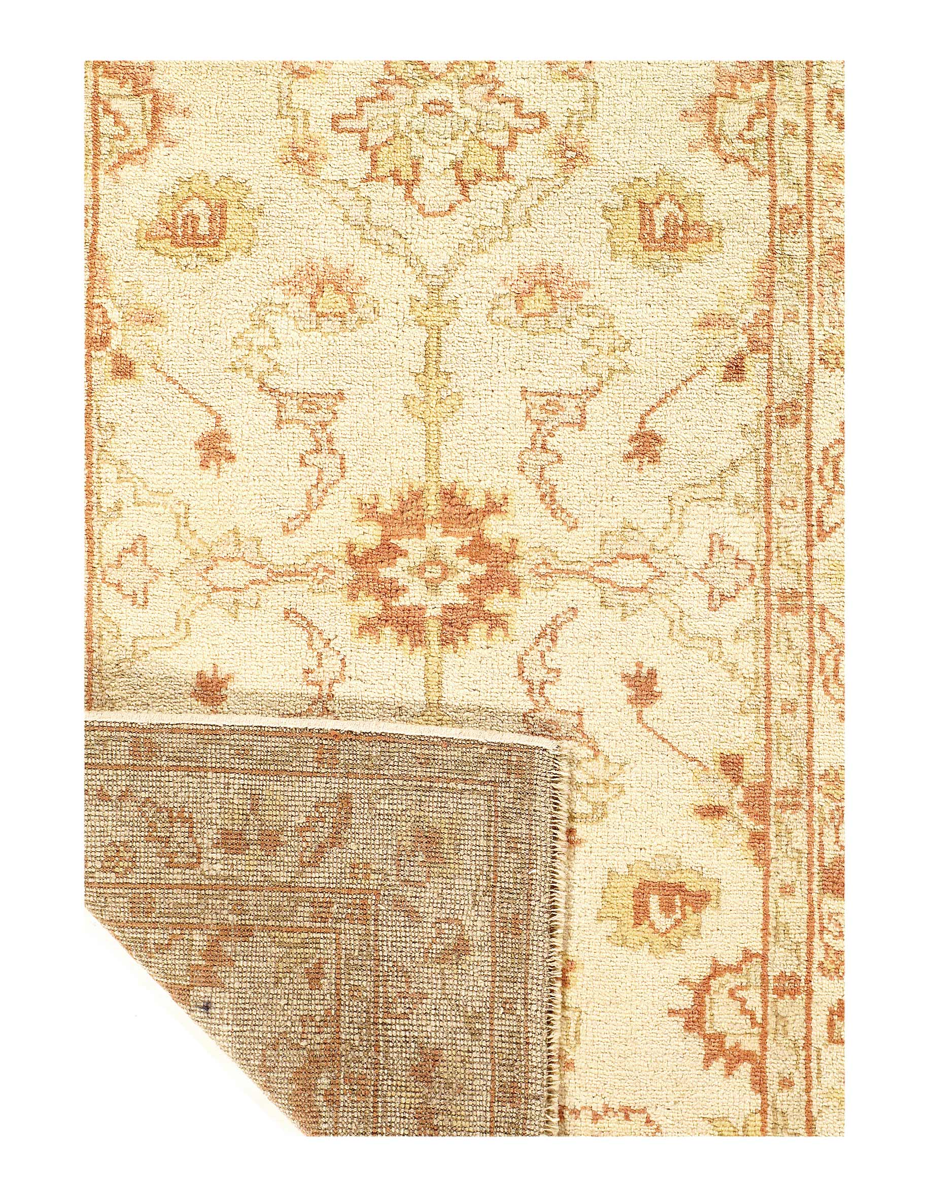 Original INDIAN OUSHAK Handmade Hand-knotted. Lamb's wool on a wool foundation. This rug has a dense, soft pile, and excellent quality, to ensure that you will enjoy the look and feel of your rug for years to come