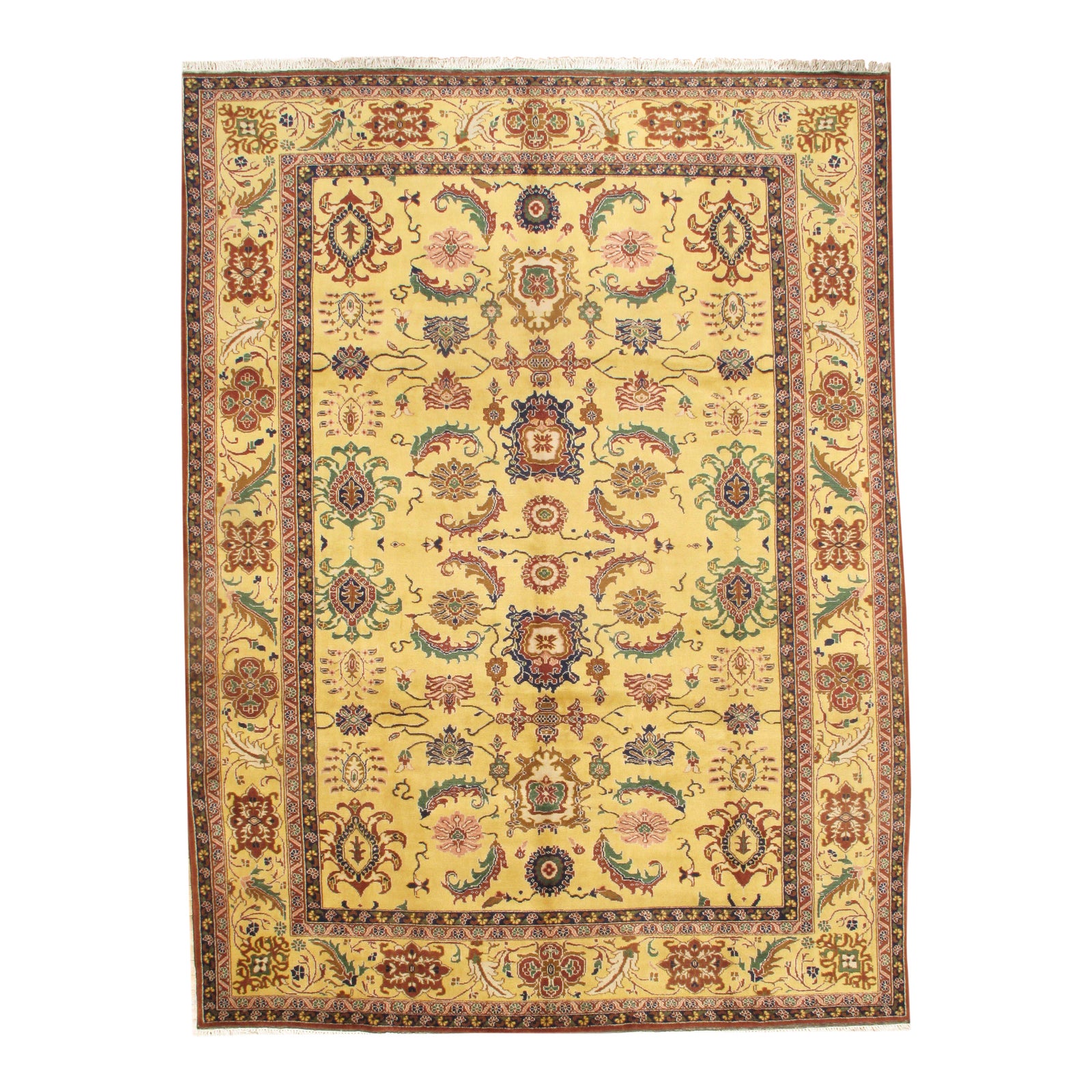 Sultanabad Design Handmade Hand-knotted Hand-Spun Lamb's Wool on a Cotton Foundation This rug is handmade from 100-percent premium, hand-spun wool, and employ ancient pot-dying techniques to give them their authentic look. From India