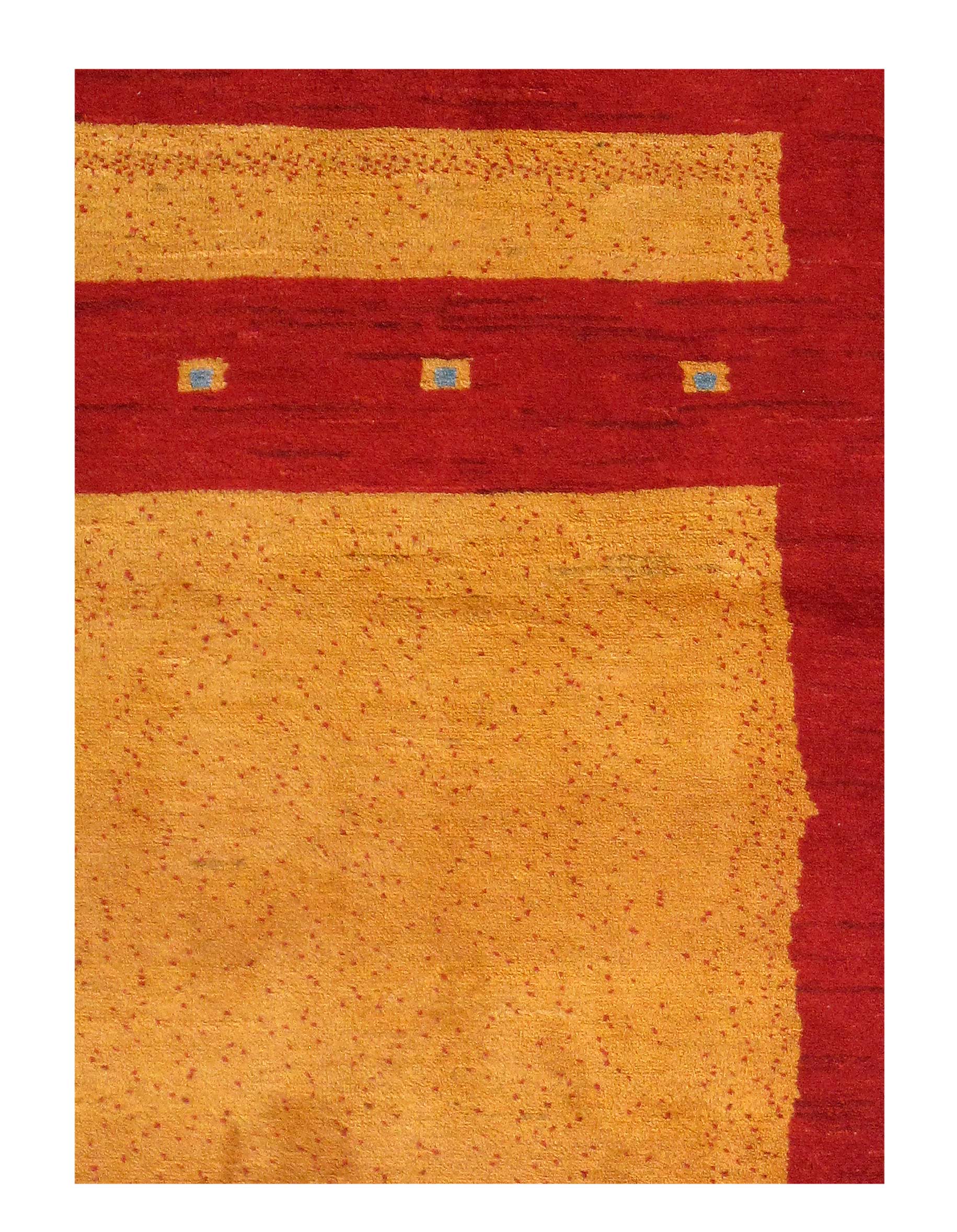 The word “Gabbeh” literally translates to “in the rough,” and it is an accurate description of this style of Persian rug. Gabbeh carpets are woven on makeshift ground looms constructed both of materials that are kept and hauled for long distances by the nomadic tribel, and also of materials that are found at each site where the tribe sets up camp. Due to the fact that part of the loom must be found at each site, a wide variety is introduced. Thus, these rugs are usually somewhat irregular in shape. But, for what they lack in perfectly uniform shape they more than make up for in character, durability and uniqueness.
