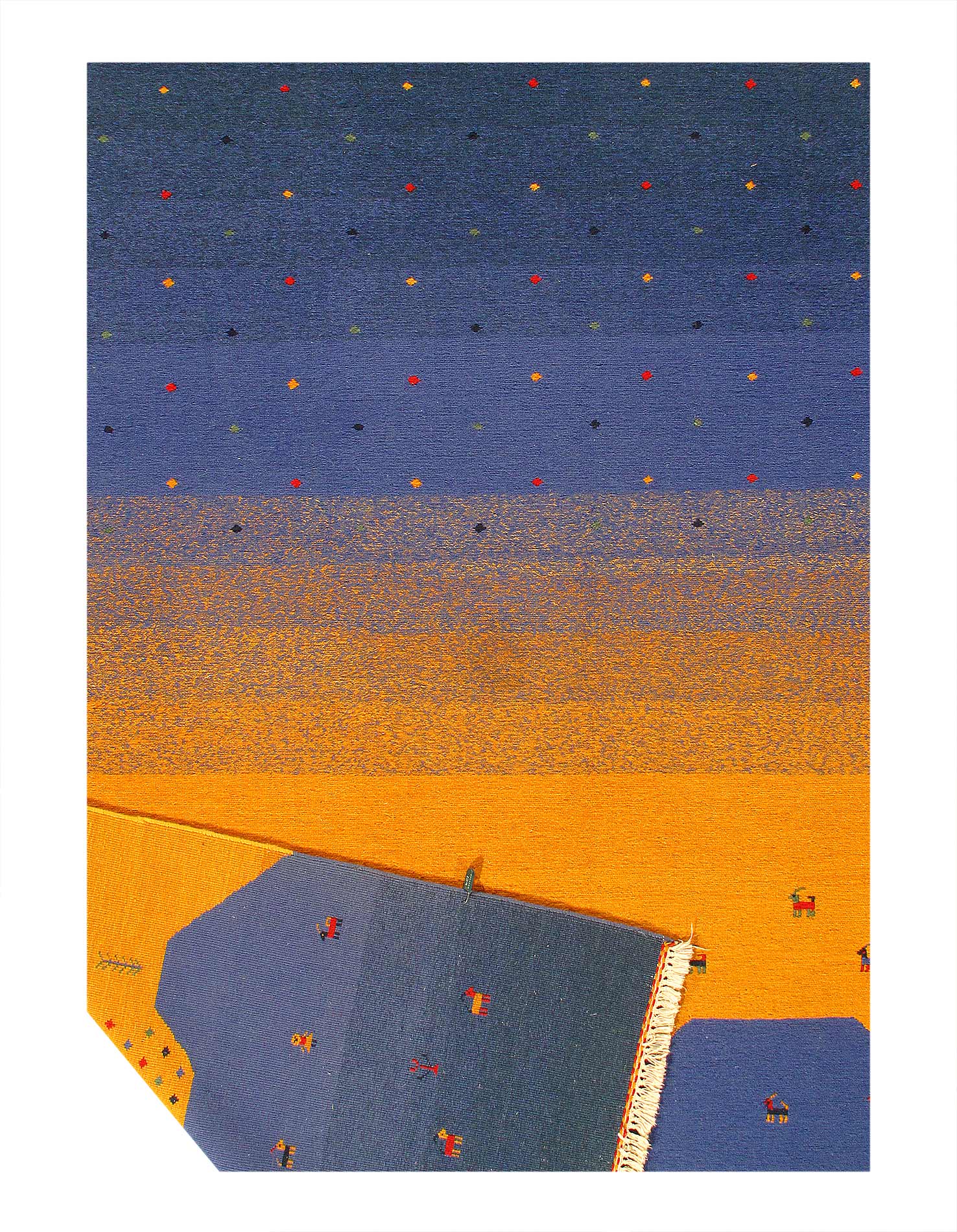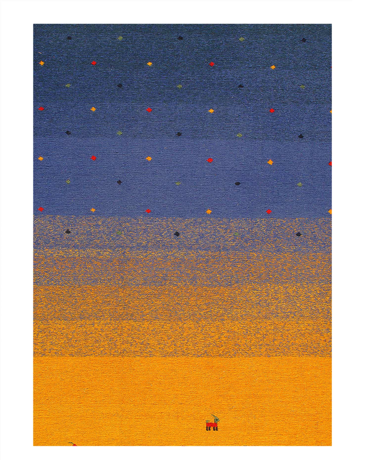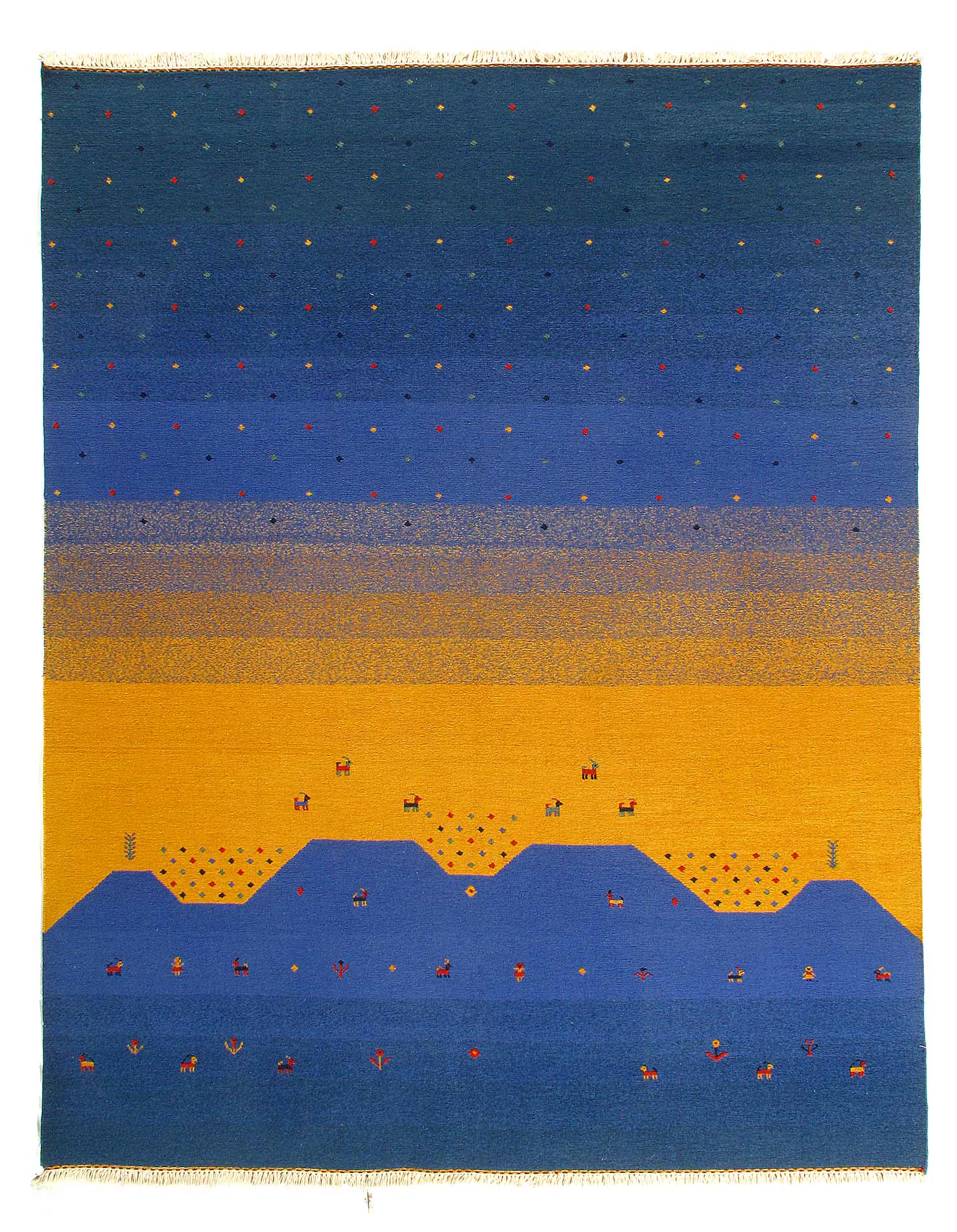This is an Indian Gabbeh sumac rug. is hand-knotted using fine lamb's wool, and it is reversible.