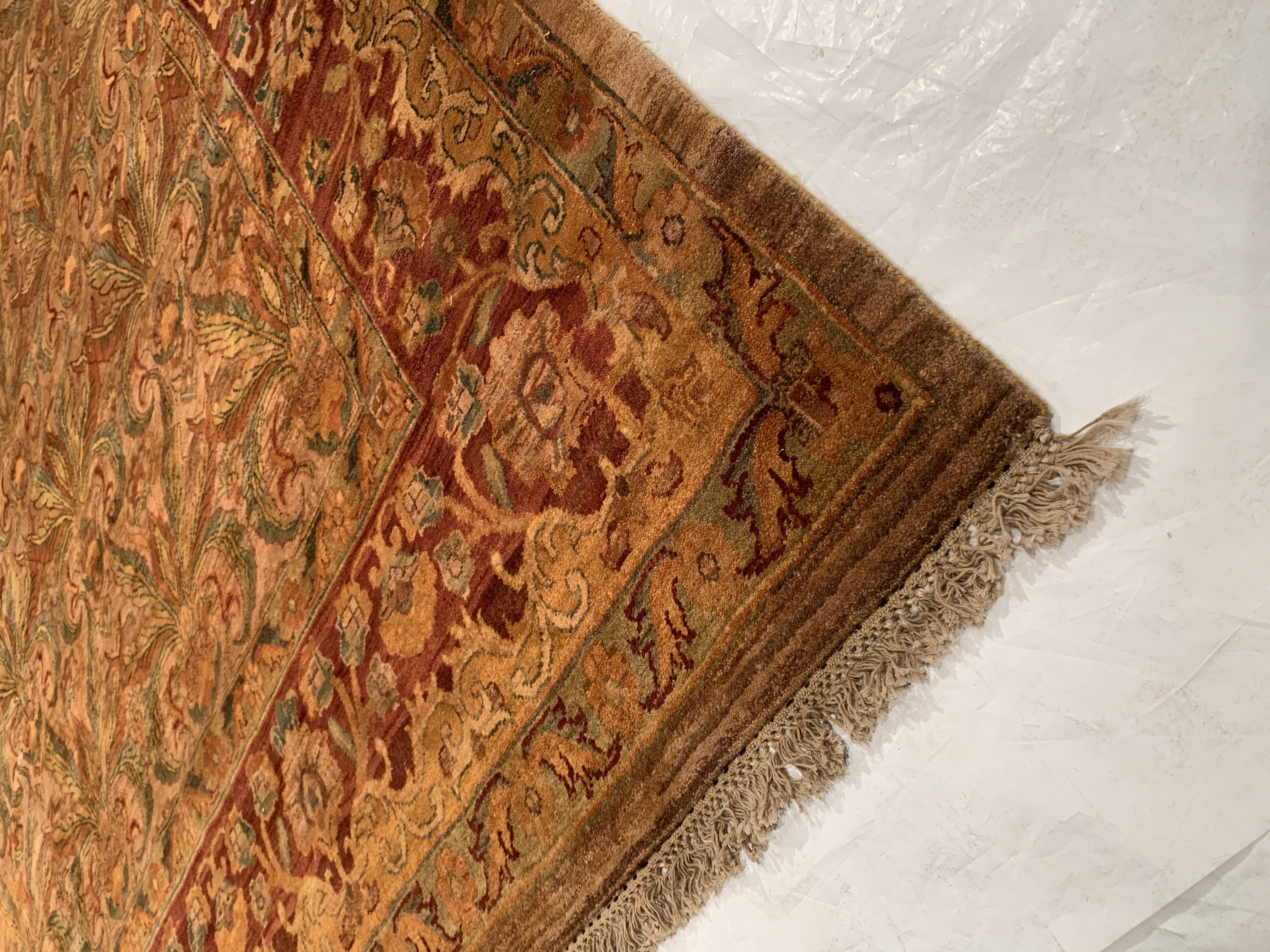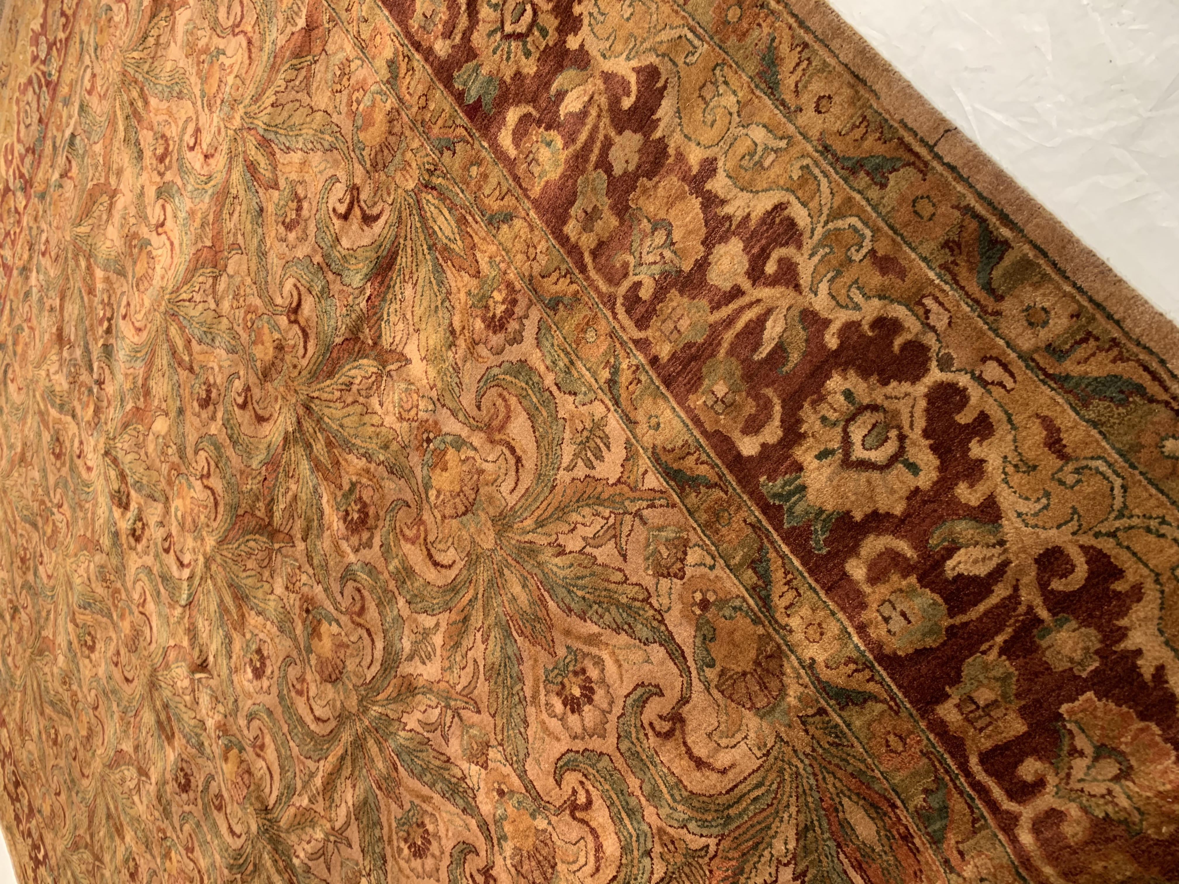 Add a fresh accent to your home with a new rug from the Agra collection. Agra collection is inspired by timeless, traditional designs. Each of these magnificent rugs is crafted using a hand-knotted construction with a softest lamb's wool pile by talented artisans of northern India and will show beautifully for years. This rug is a versatile, stylish and environmentally conscientious choice as it is made from 100% natural fibers.