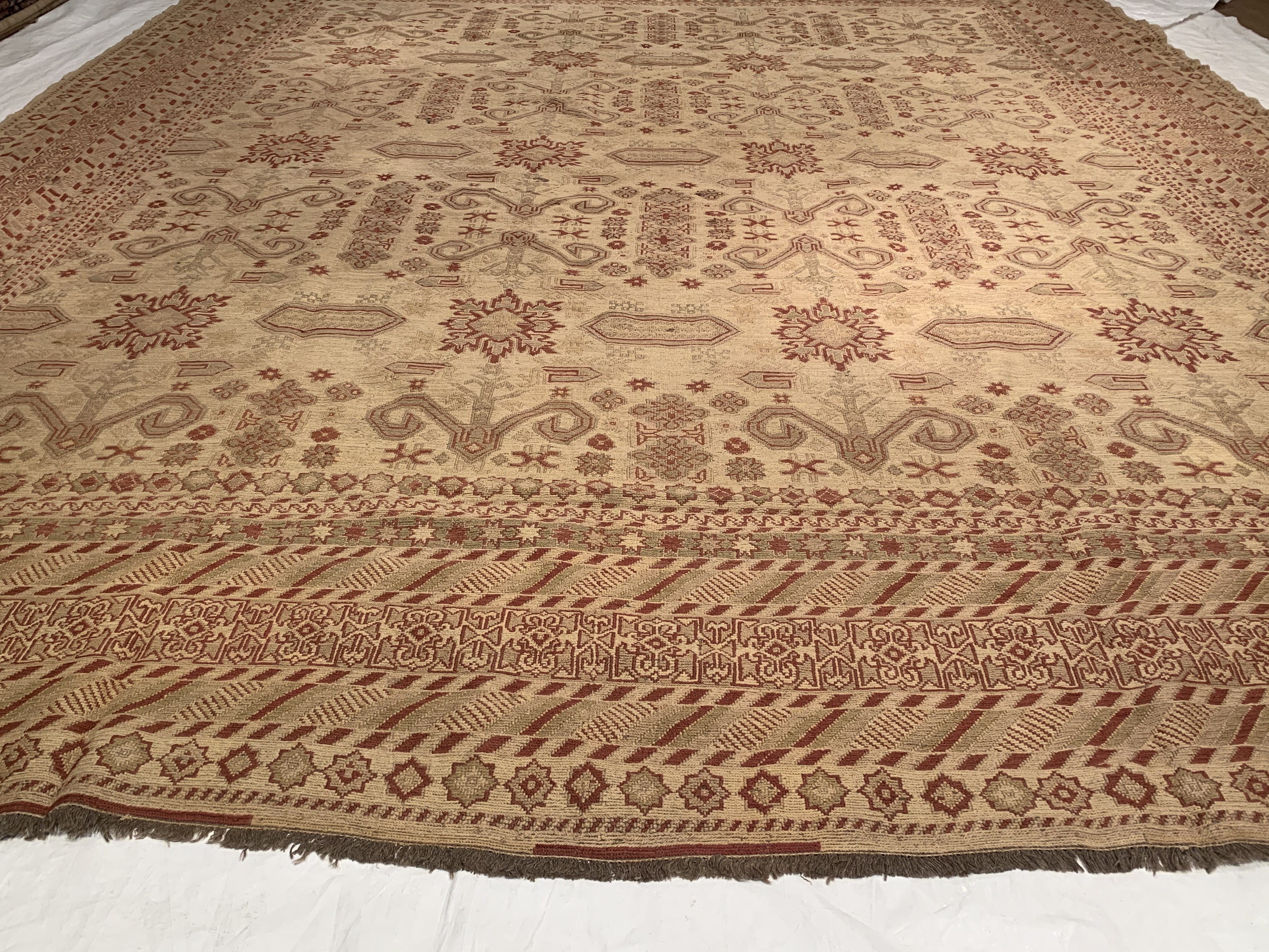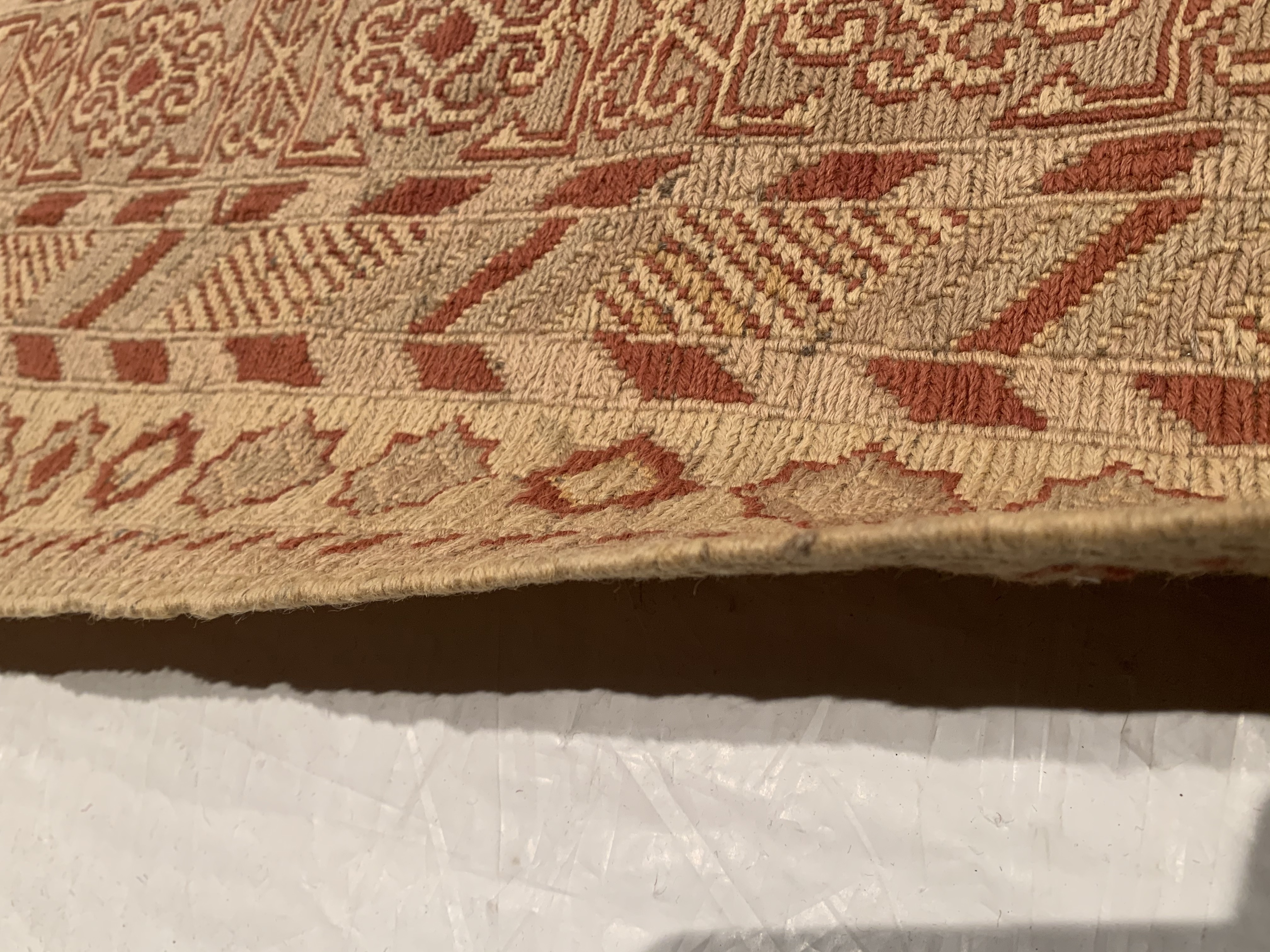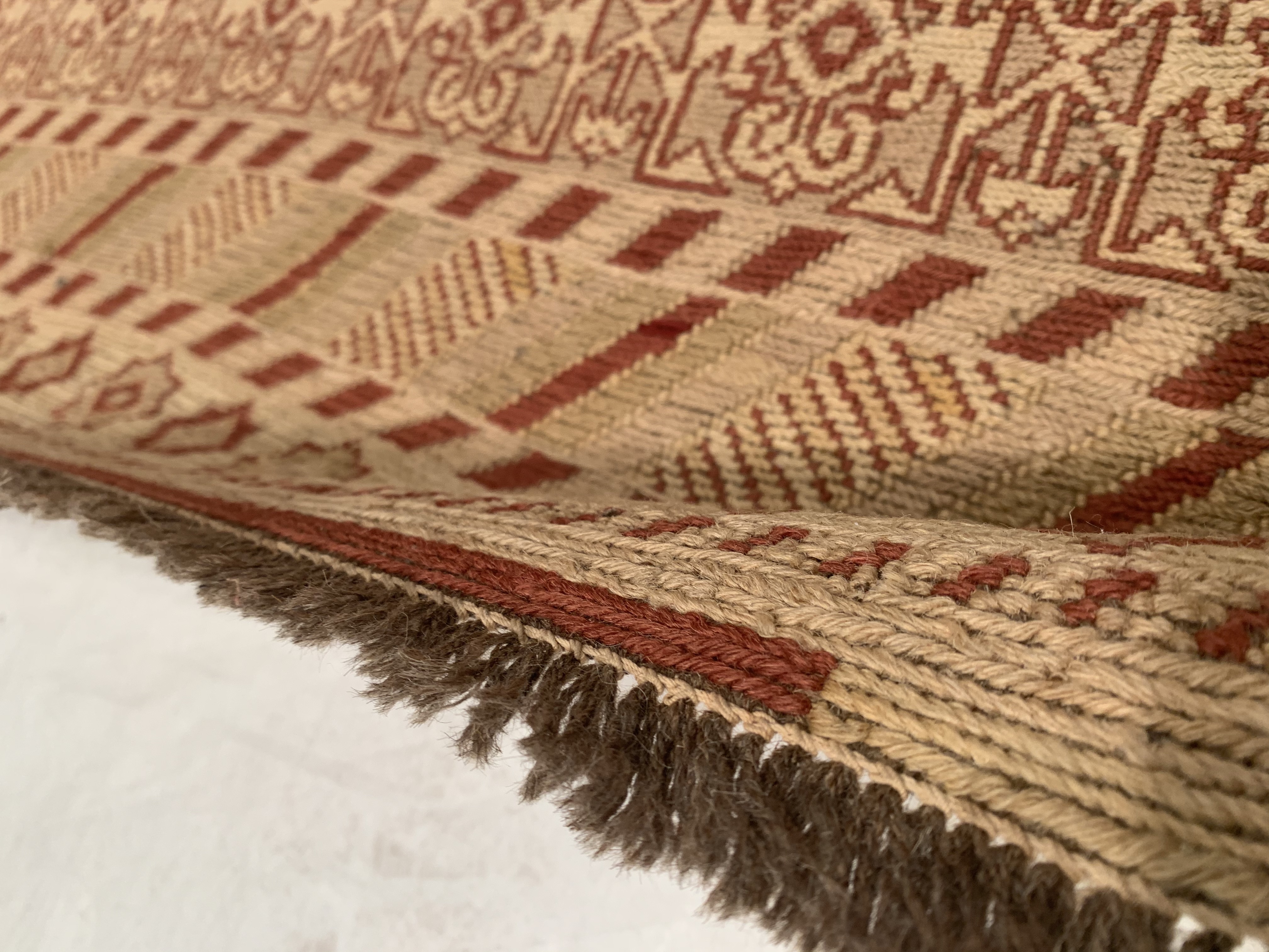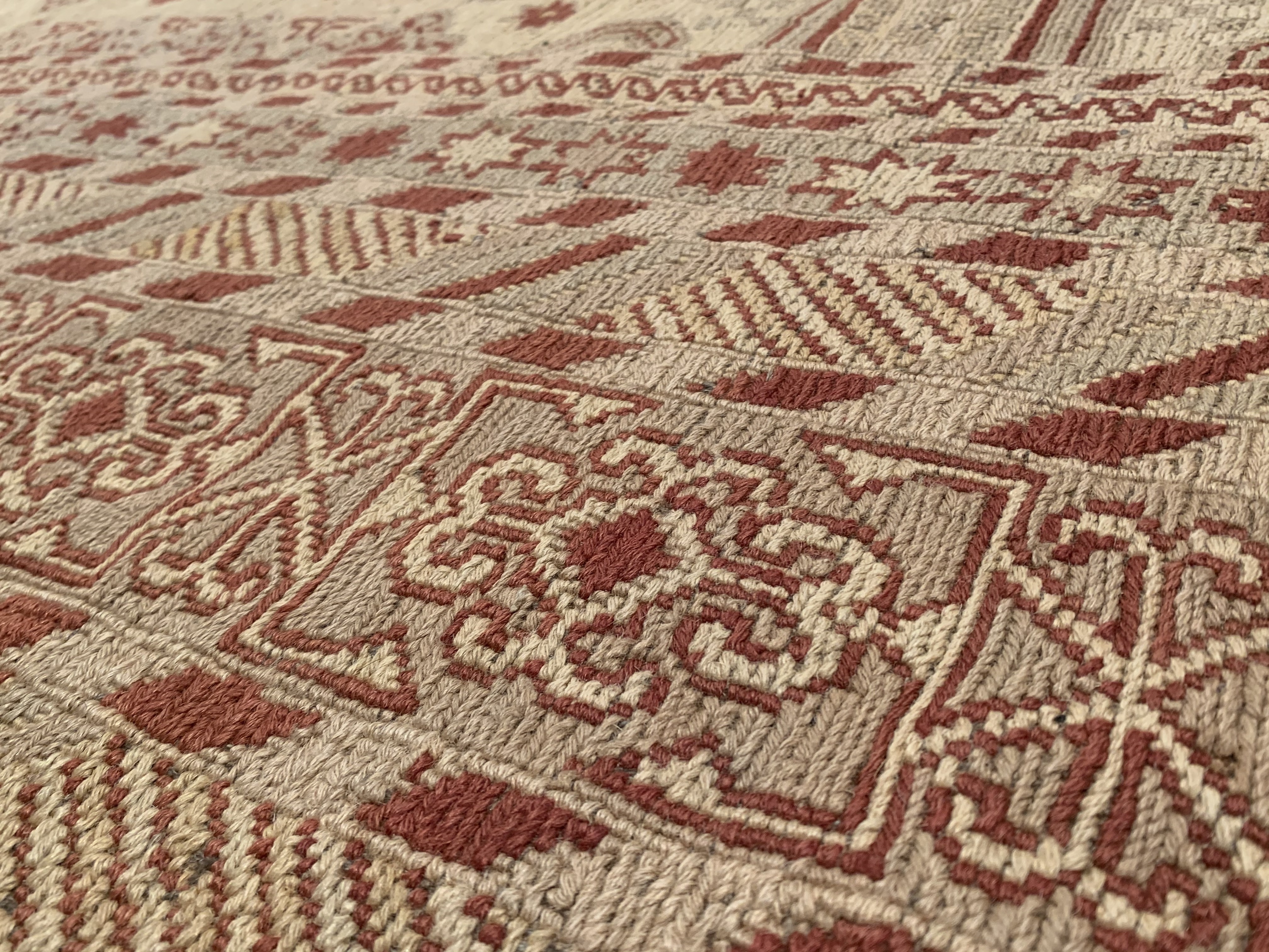 This area rug is handwoven by skillful weavers in Central Asia with wool and Cotton material. The handwoven rug is produced in a similar manner, as the hand-knotted rug but using a different kind of loom. Handwoven rug is known for their amazing beauty and lastingness but requires a lot of time and skill. Here the weaver uses the loom to weave the rug fibers into the warp. The weaving technique allows the use of many colors and weave-variations, producing an almost unlimited variety of patterns and colors to pick from. Due to the precise construction techniques, a handwoven rug will provide you with years of consolation and satisfaction.