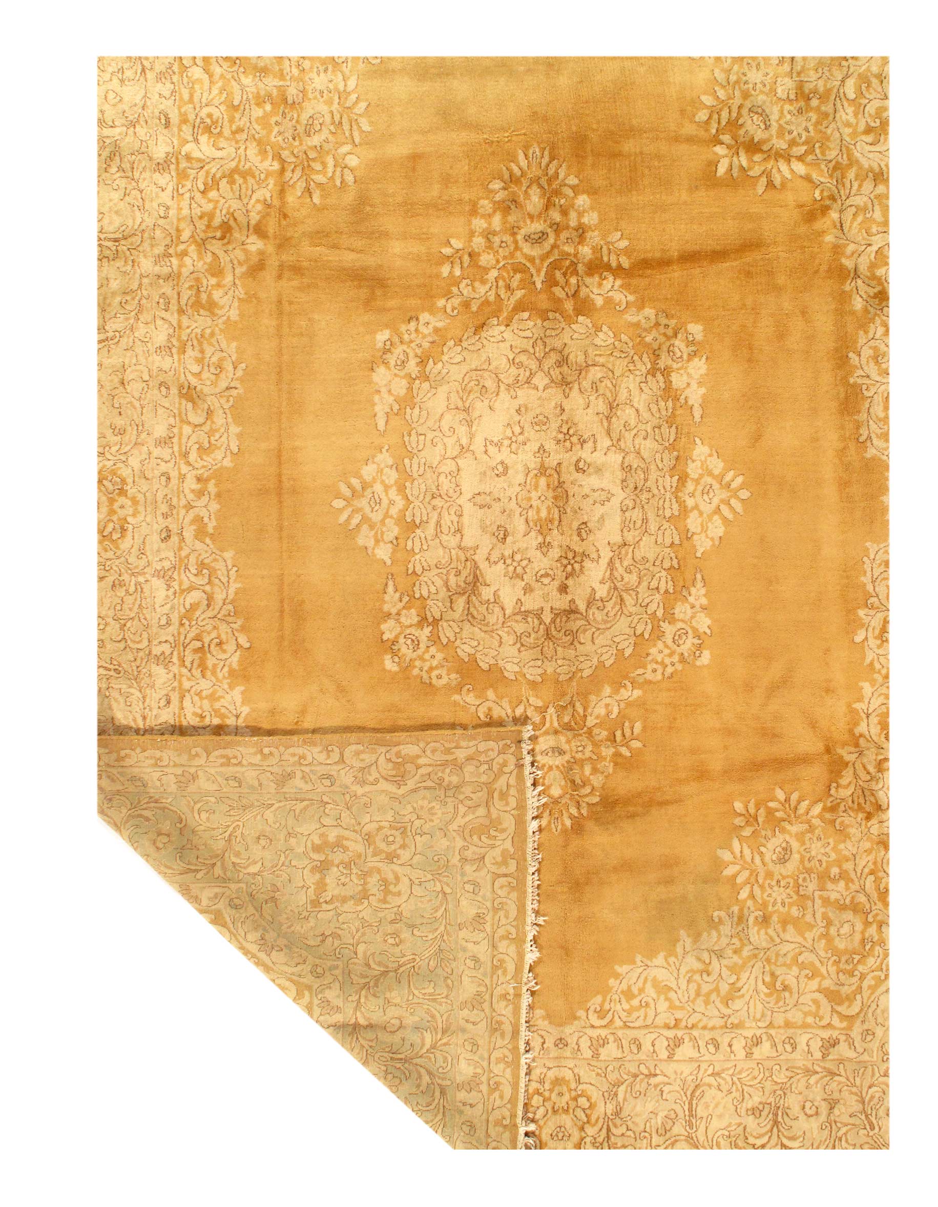 Kerman is an ancient city, with an incredible history going back over a thousand years. Marco Polo was one of the first westerners to view Kerman rugs. The city is located in the central south-eastern section of Iran, in the province that bears its name. Kerman rugs and carpets are perhaps one of the most recognizable within the antique Persian rug category. A typical pattern for Kerman rugs and carpets is a floral or architectural theme in the main border with a central medallion in the field. Other patterns include the finer Kerman Lavar style with garden, tree-of-life, vase, and all-over mille fleur designs, or the many pictorials which tell the story of a significant figure or event in history. The vase design carpets originated during the Safavieh dynasty, and are among the greatest masterpieces of Persian weaving.