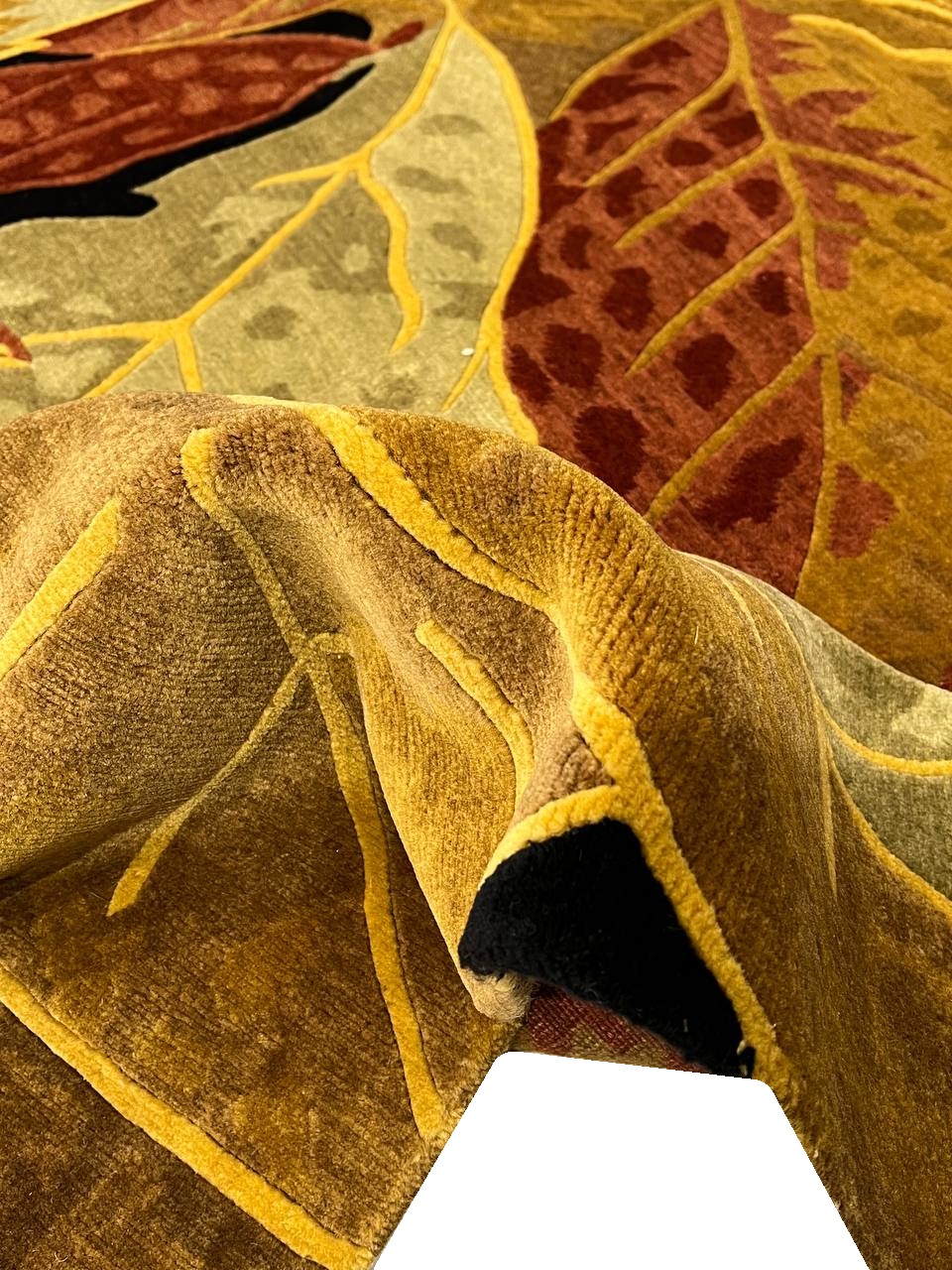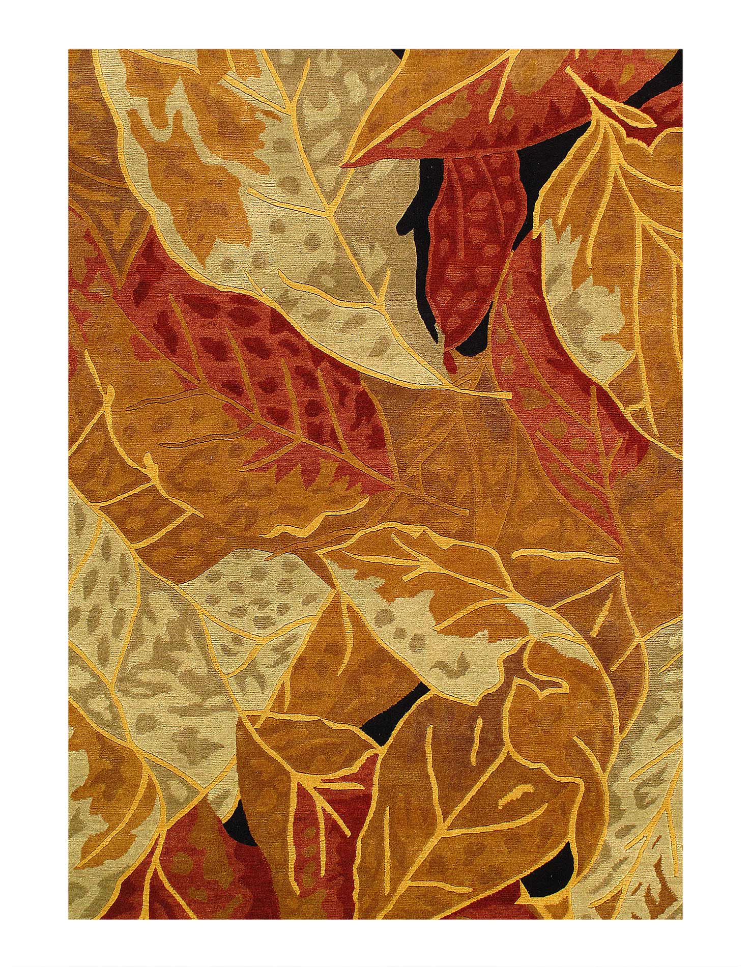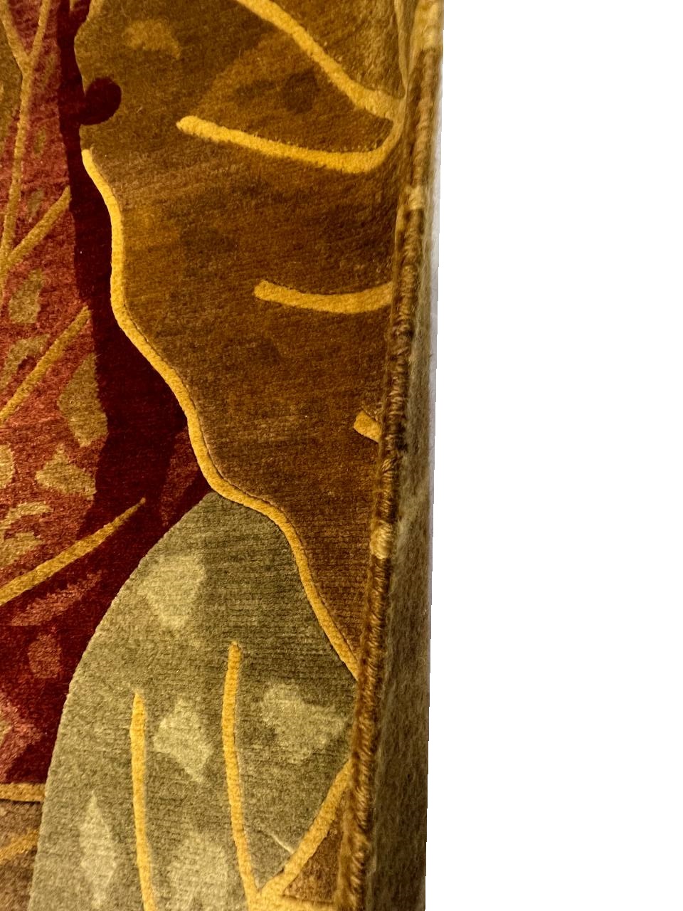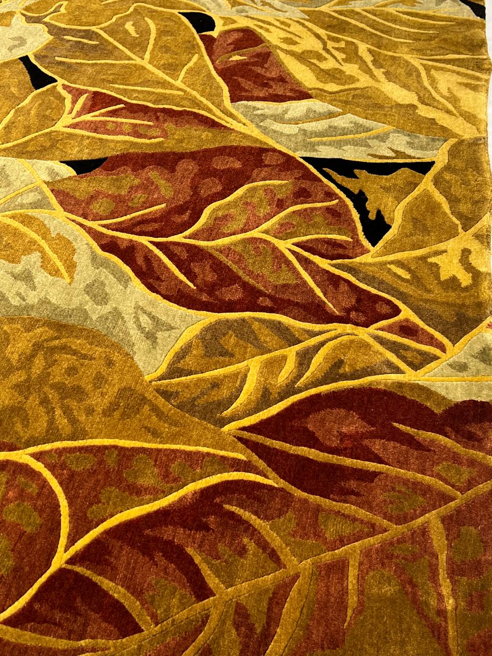 Abstracted oversized flowers create an impressionistic effect in this transitional hand-knotted Tibetan rug by Pasargad . High mountain wool yarns in tones of Rust and Gold are combined for a lustrous work of art that will perk up traditional and contemporary rooms with a touch of glamour.