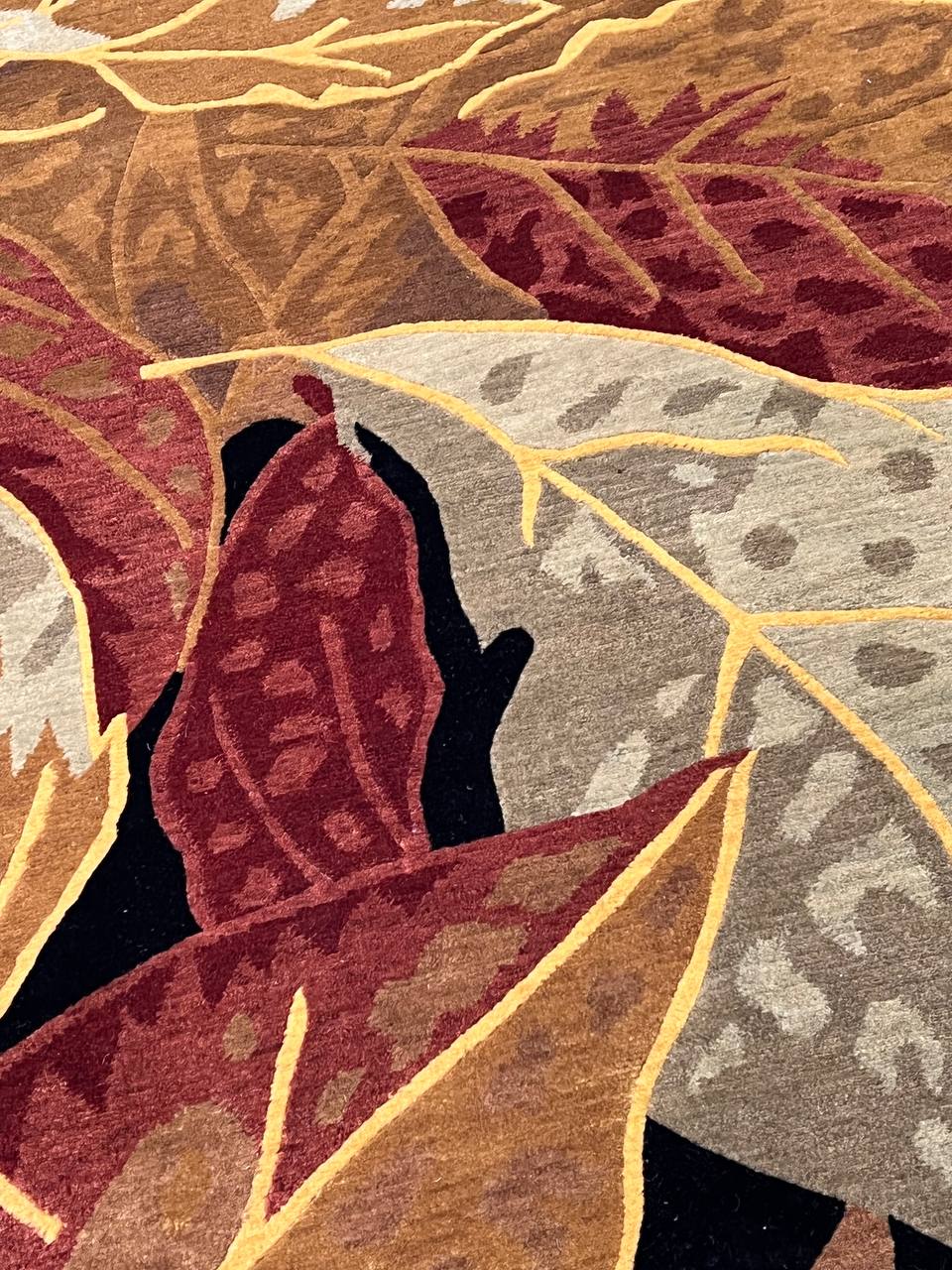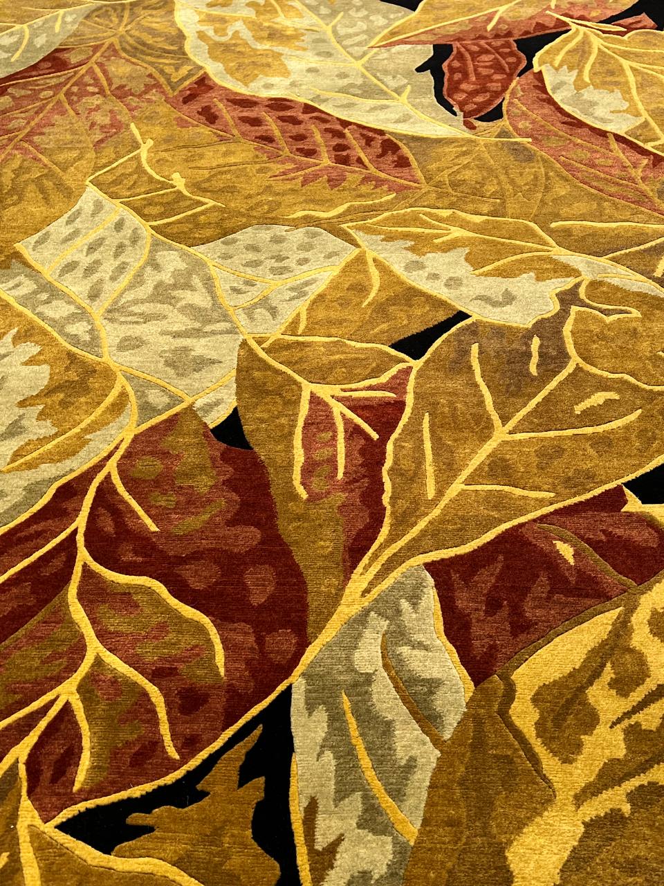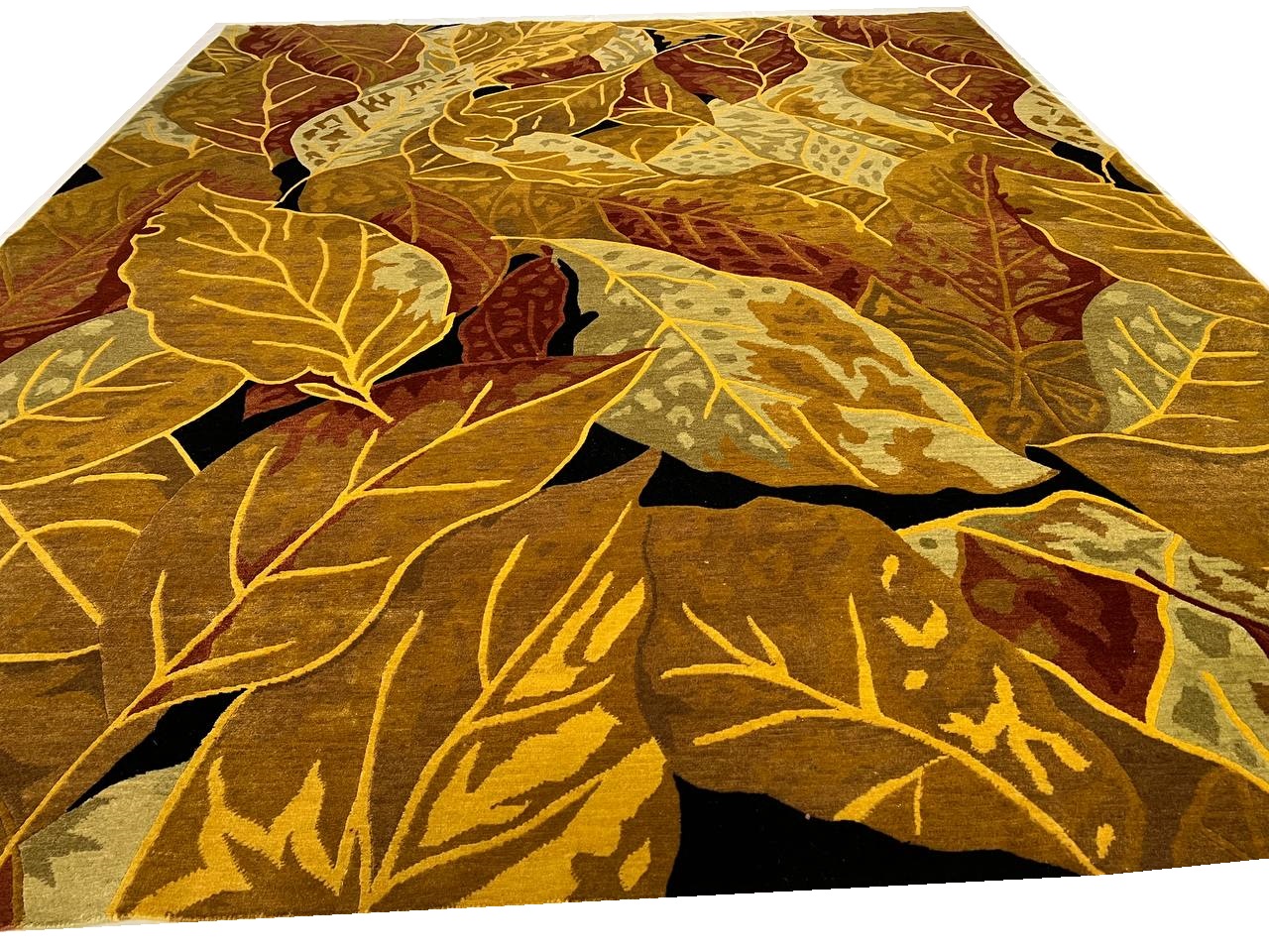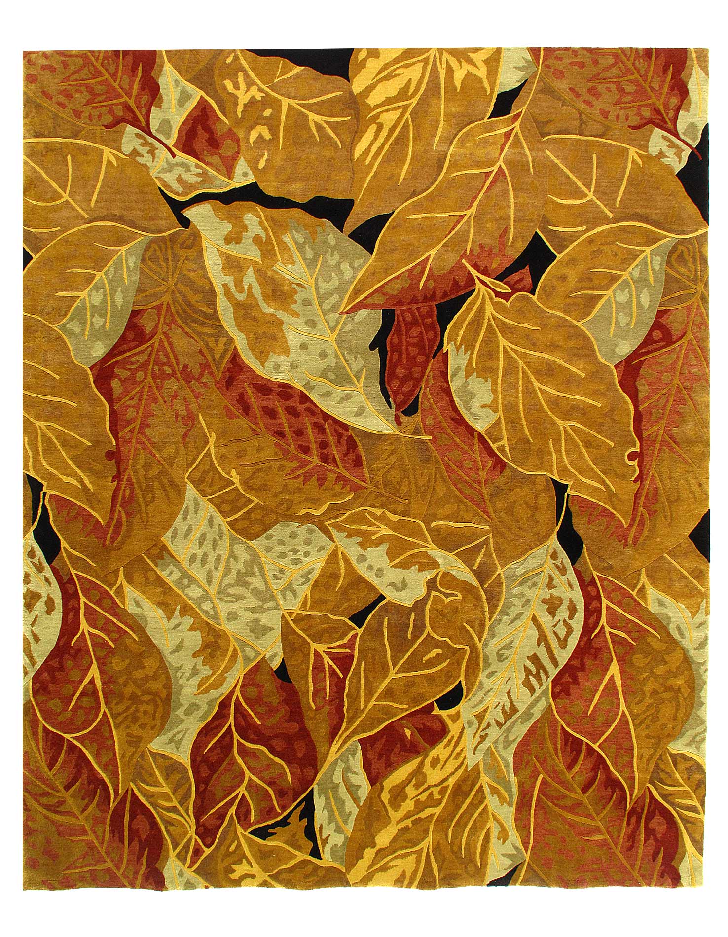 Abstracted oversized flowers create an impressionistic effect in this transitional hand-knotted Tibetan rug by Pasargad . High mountain wool yarns in tones of Rust and Gold are combined for a lustrous work of art that will perk up traditional and contemporary rooms with a touch of glamour.