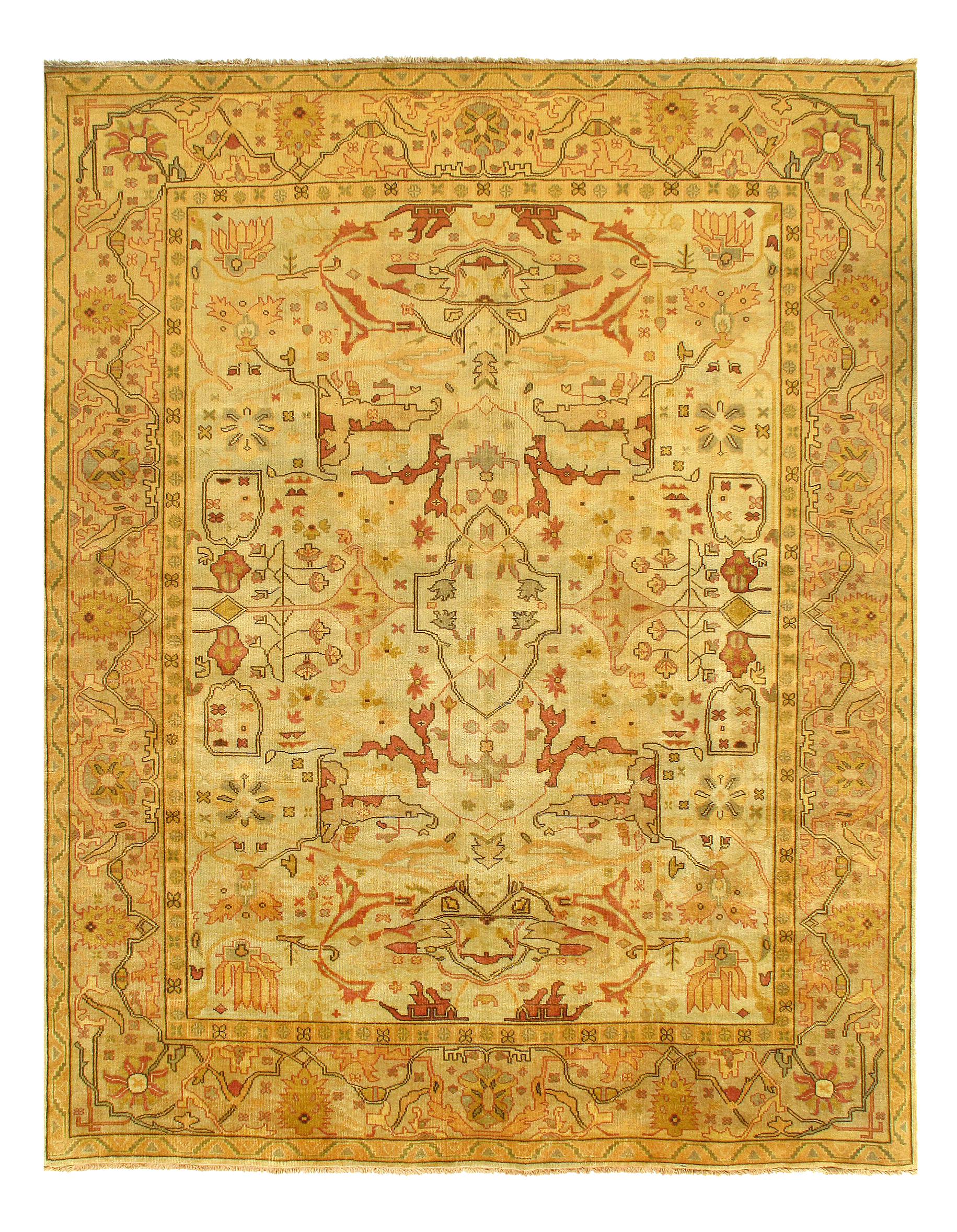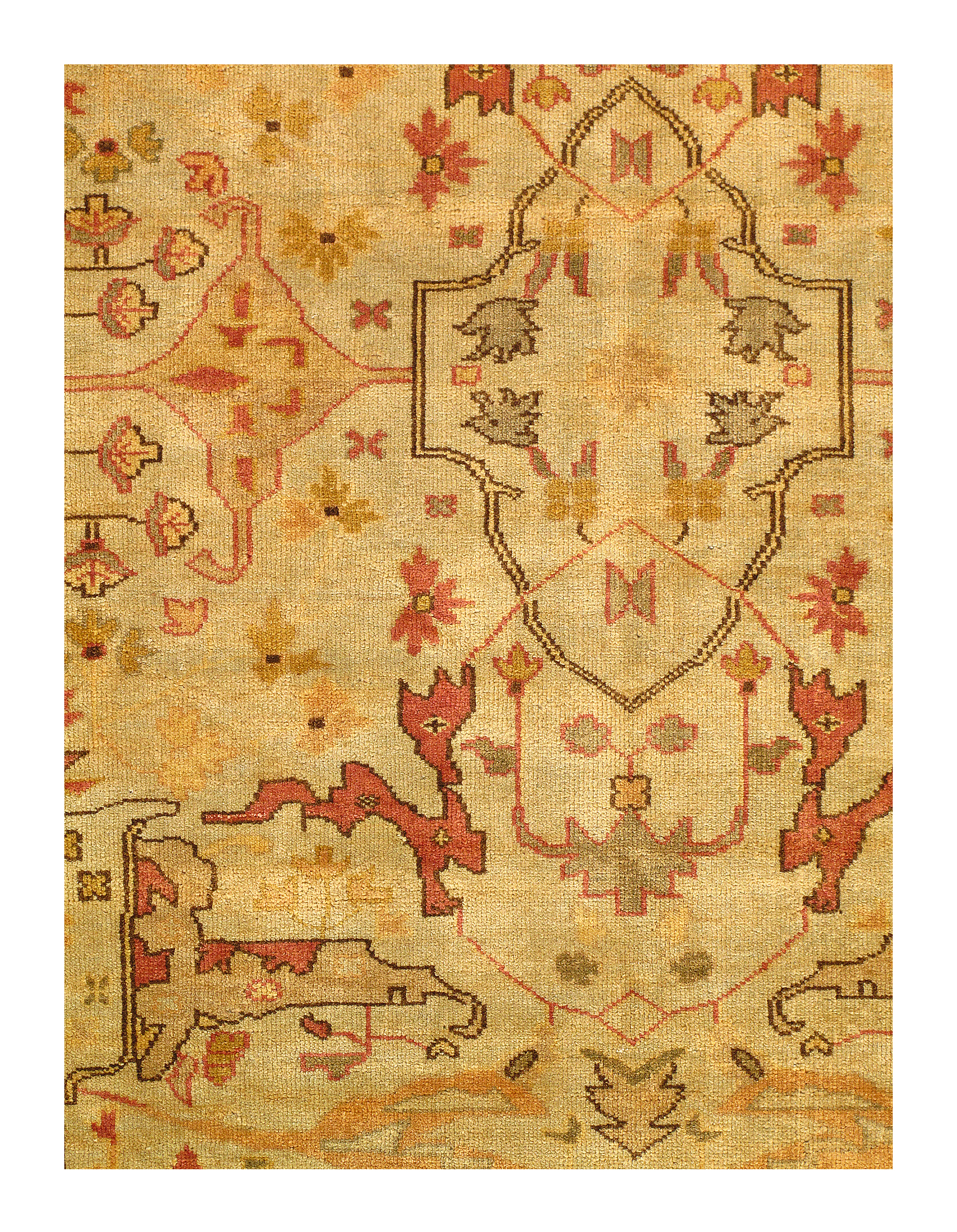Oushak features the subtle elegance of classic Anatolian designs in tradition and styling of the finest Turkish carpets. These rugs provide a union of pattern, color, and the finest yarns and finishing. Each rug is finished with an antique wash that gives these rugs an authentic Oushak look. These rugs are hand knotted using the finest 100% New Zealand wool. The beauty of these rugs will enhance any interior decor.