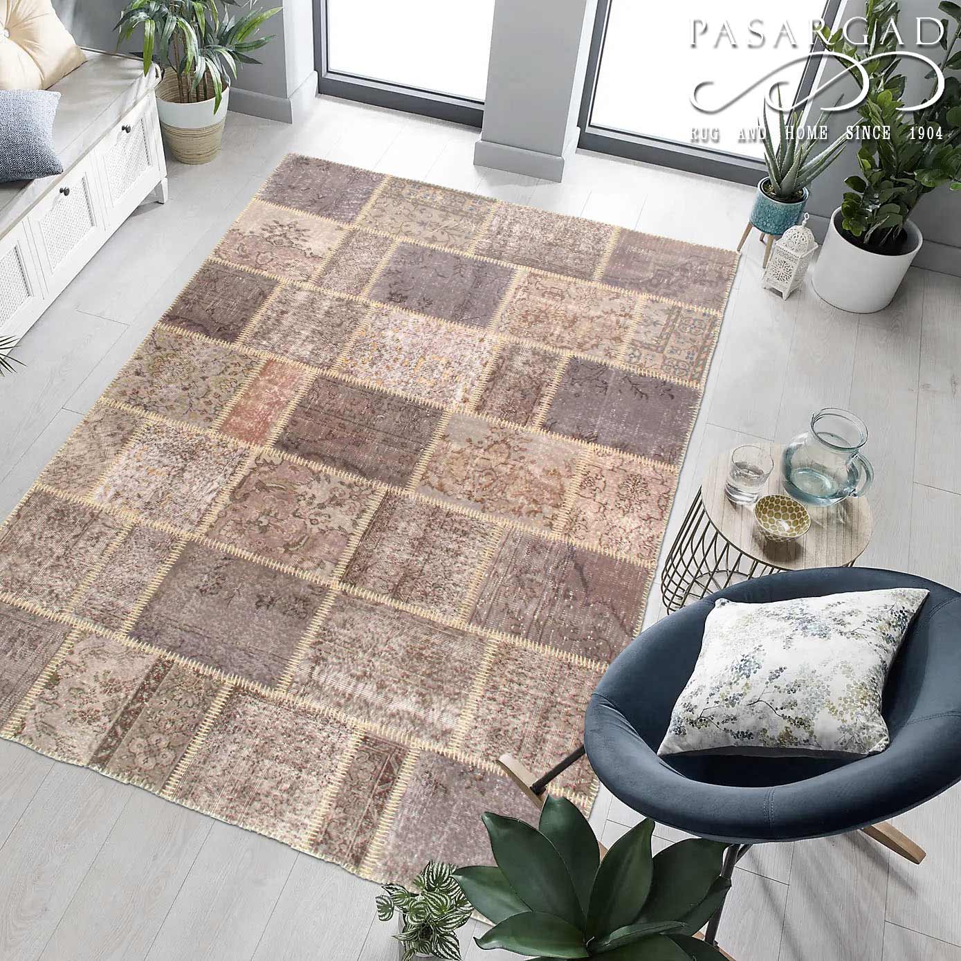 Our beautiful Patchwork Boho Rug is a one-of-a-kind design that will instantly add character to any space in your home. Its mixed-floral patchwork motif includes an array of rich and vibrant hues of Gray, silver ,beige. Whether as an area rug or runner, this head-turning piece will add drama to any modern, bohemian, or shabby chic interior.