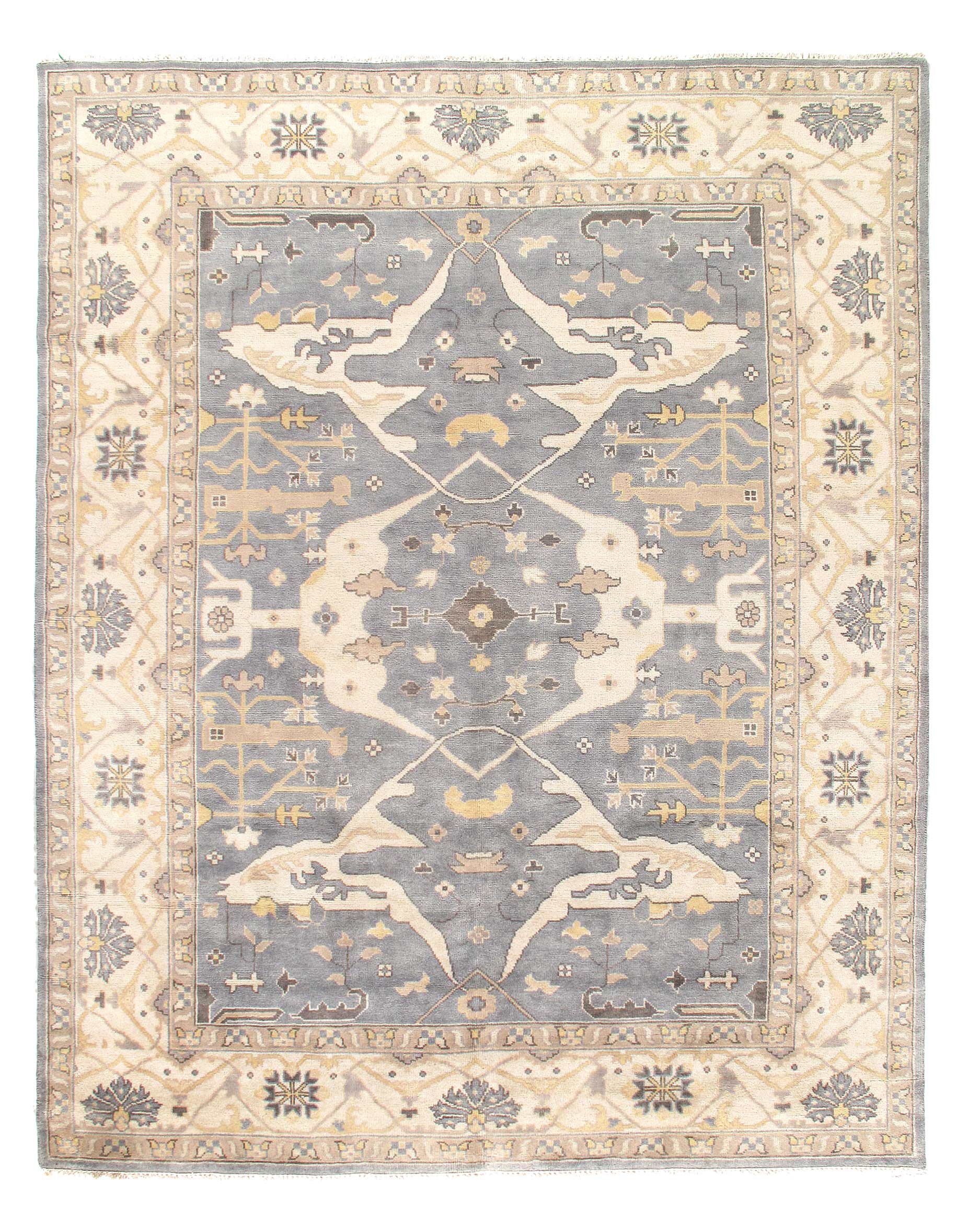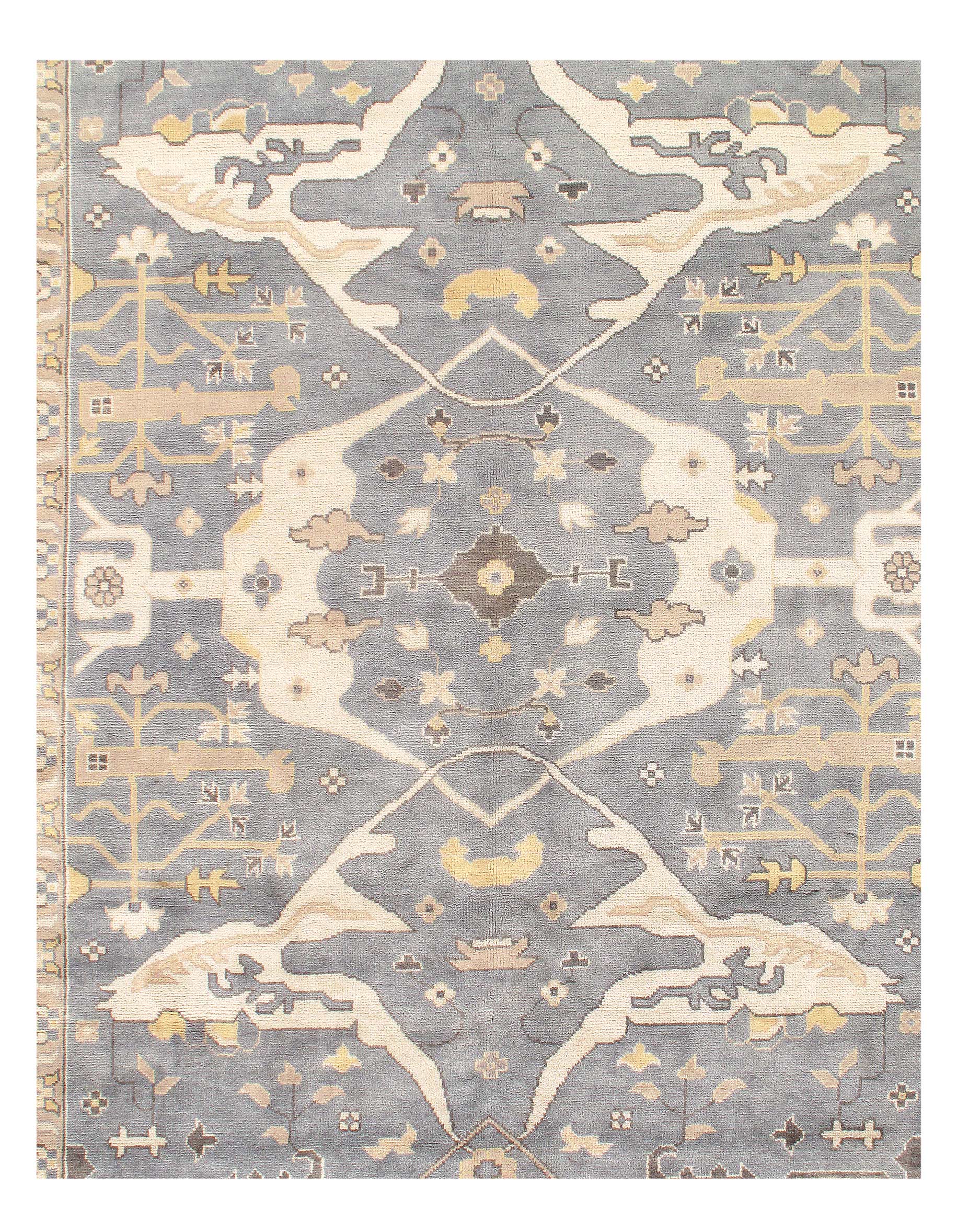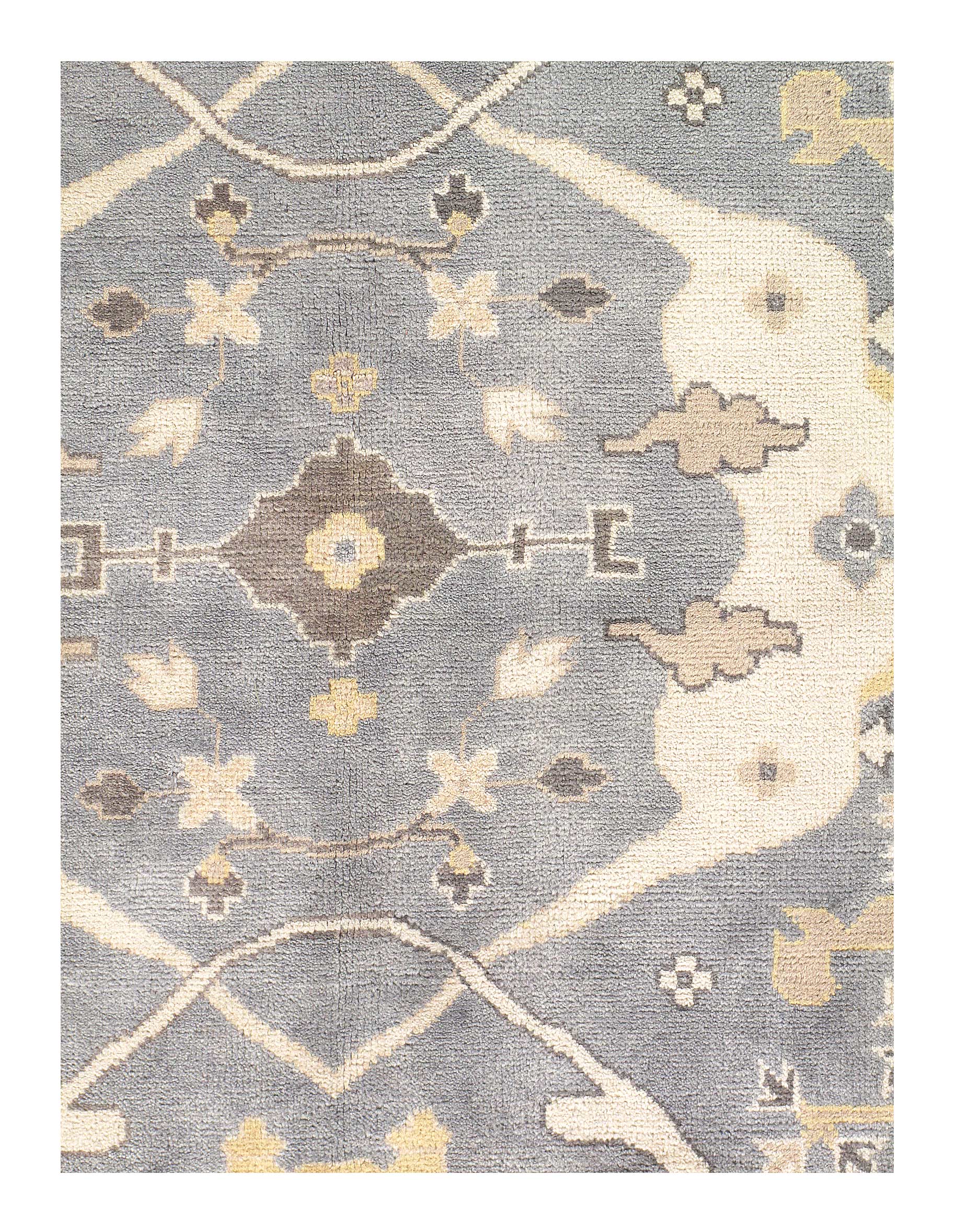 Oushak features the subtle elegance of classic Anatolian designs in tradition and styling of the finest Turkish carpets. These rugs provide a union of pattern, color, and the finest yarns and finishing. Each rug is finished with an antique wash that gives these rugs an authentic Oushak look. These rugs are hand knotted using the finest 100% New Zealand wool. The beauty of these rugs will enhance any interior decor.