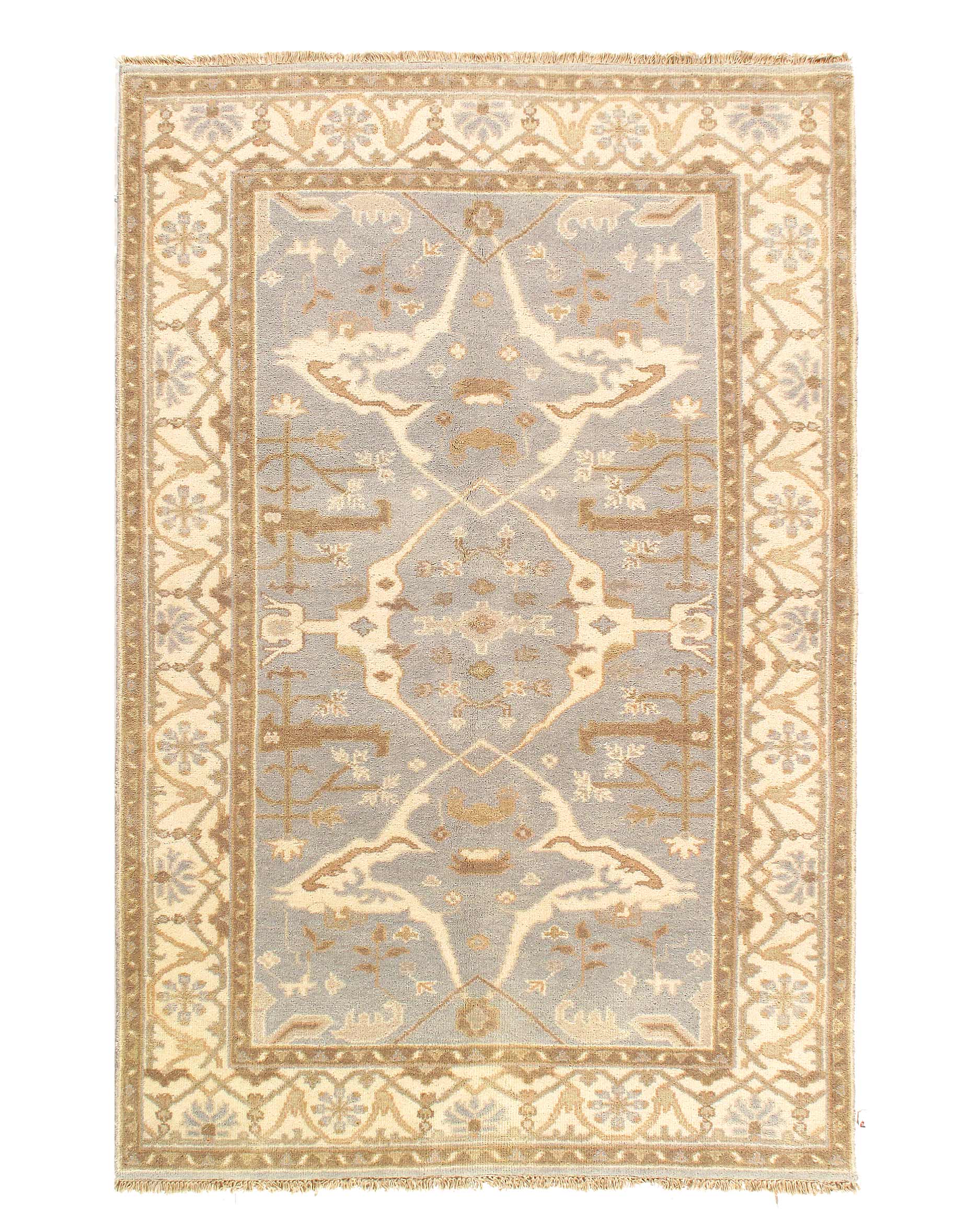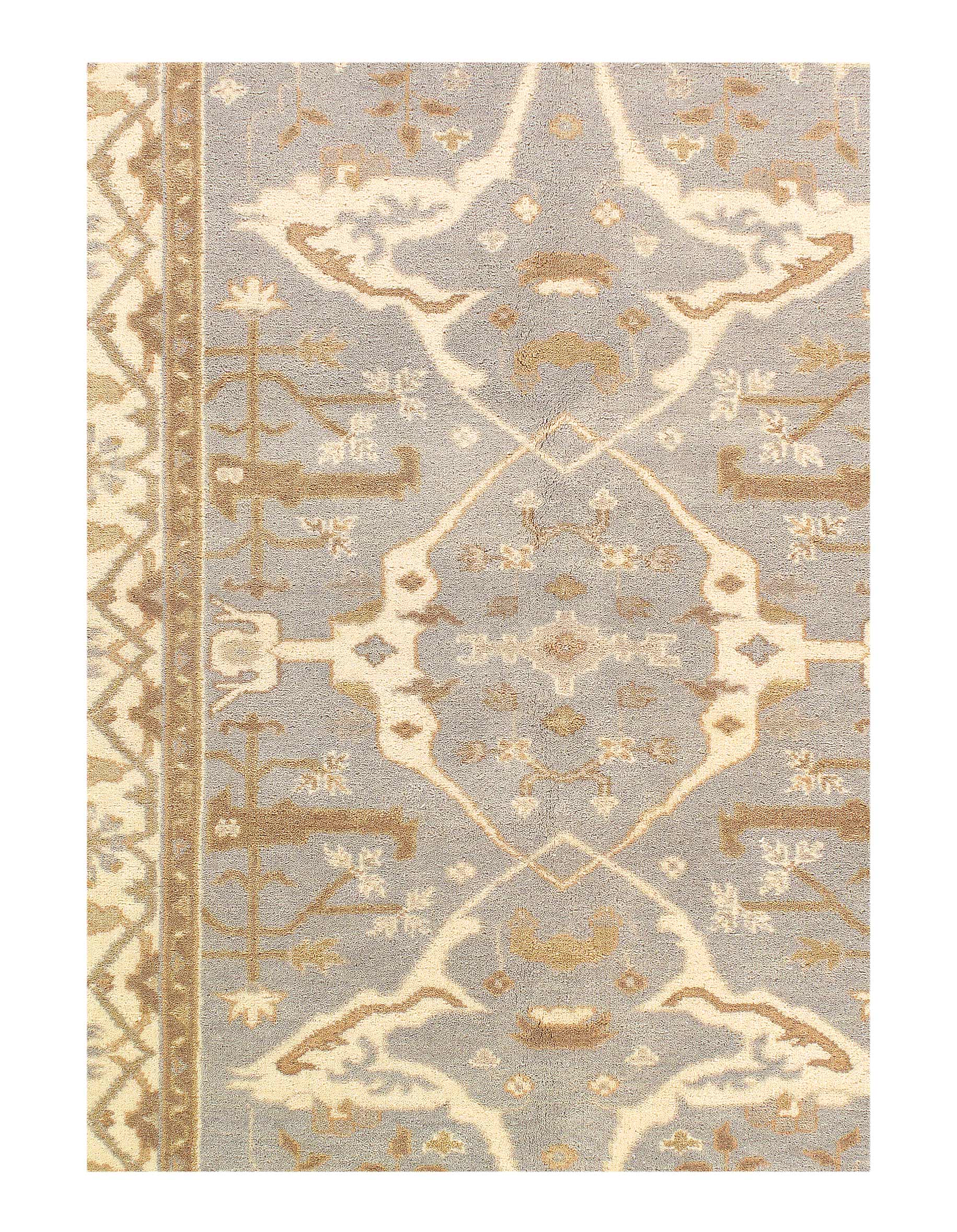Oushak features the subtle elegance of classic Anatolian designs in tradition and styling of the finest Turkish carpets. These rugs provide a union of pattern, color, and the finest yarns and finishing. Each rug is finished with an antique wash that gives these rugs an authentic Oushak look. These rugs are hand knotted using the finest 100% New Zealand wool. The beauty of these rugs will enhance any interior decor.