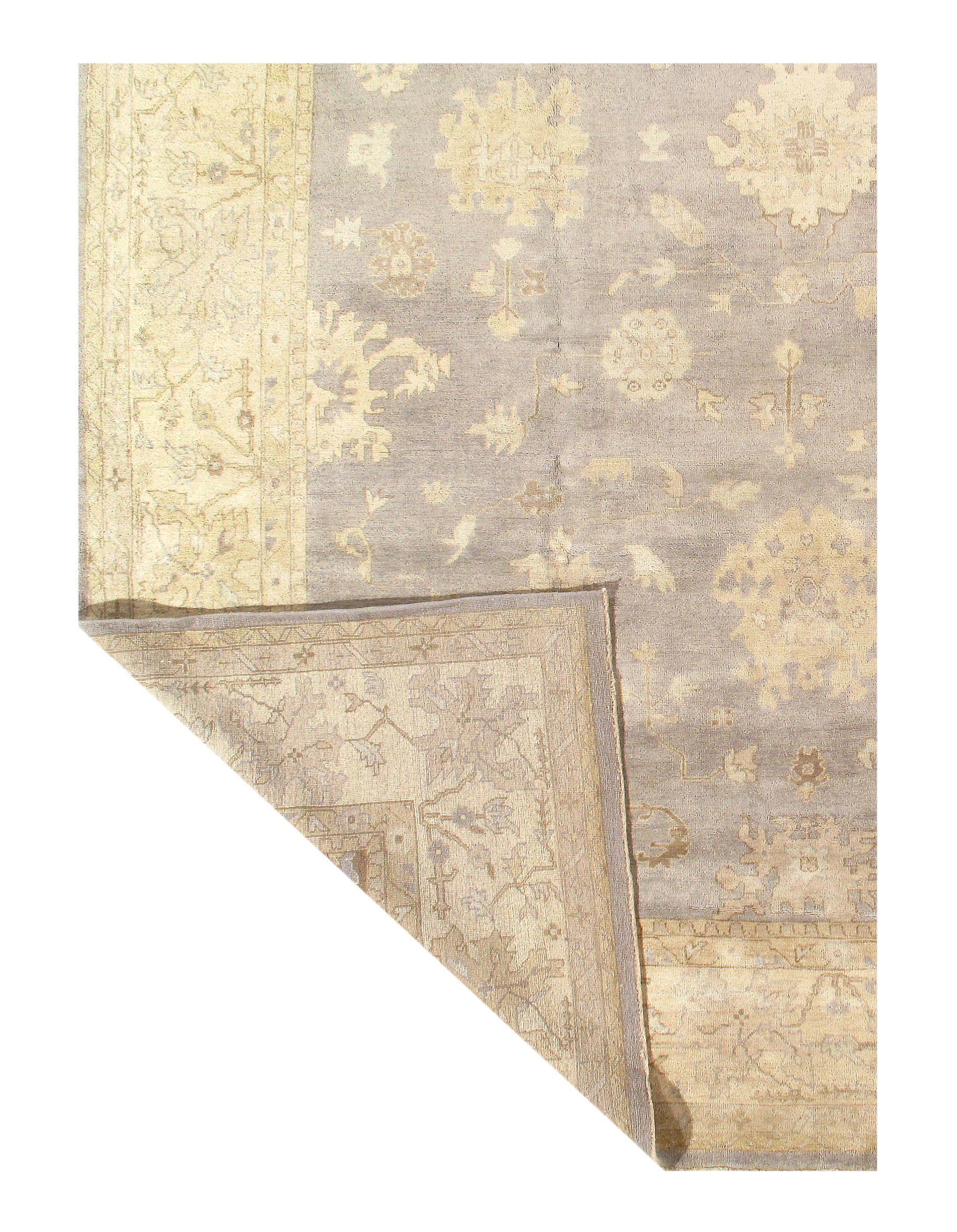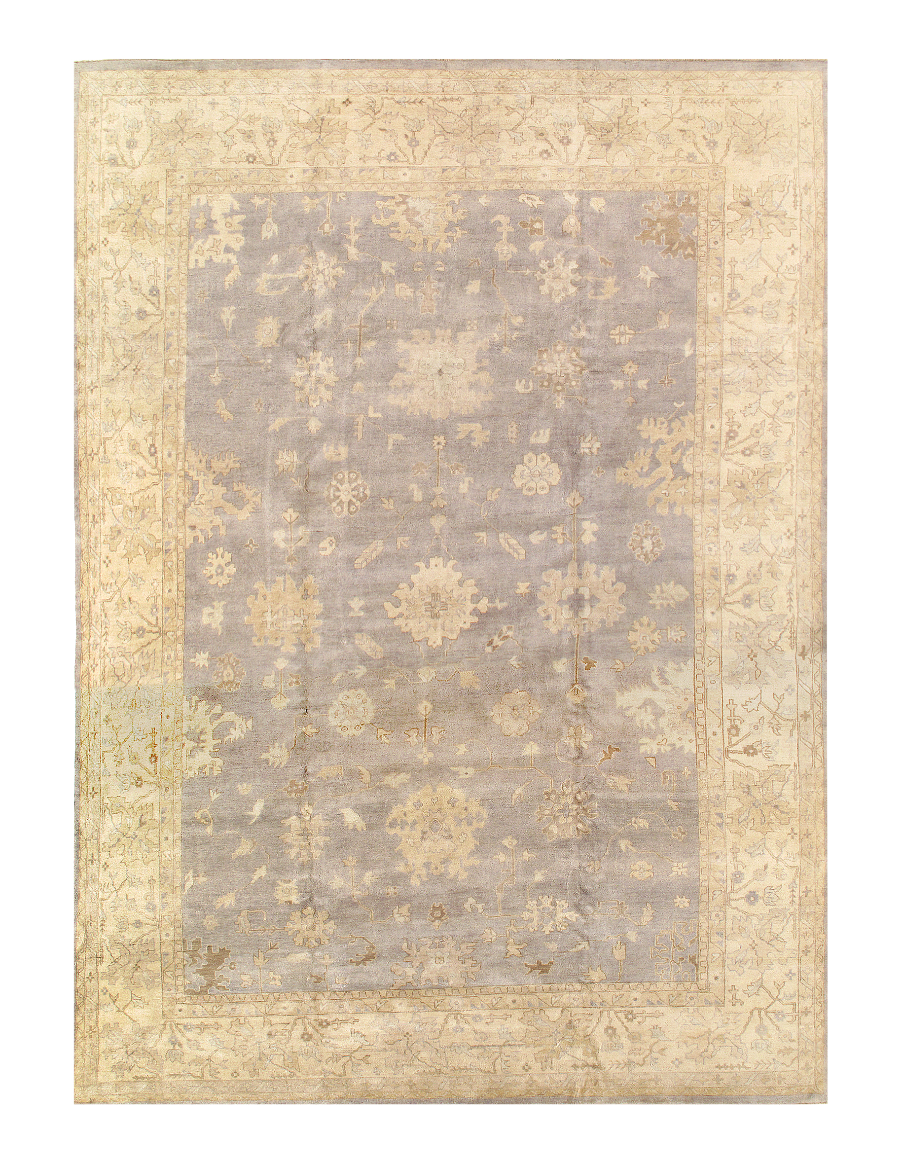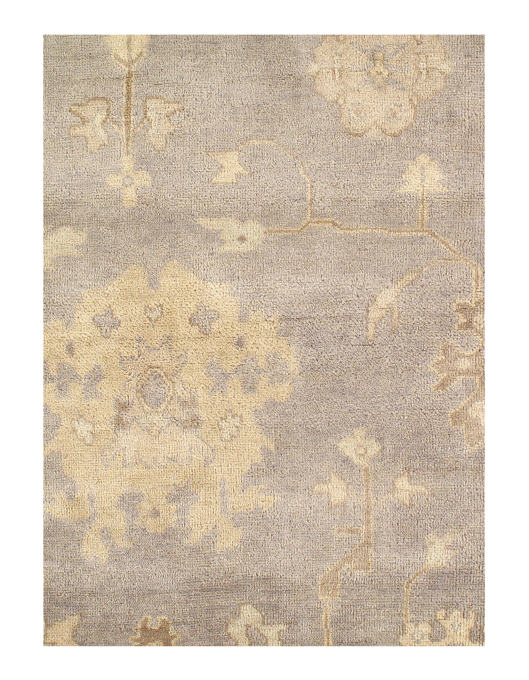 Oushak Rugs are distinctive in both pattern and color palette. Most have a blue, green, dark ivory, or gold & their designs are typically based on geometric motifs and vine / leave motifs. All colors are created with natural vegetable dyes, and the hushed tones are enhanced by the soft, lustrous wool texture. The foundation of an Oushak is cotton while the pile is wool. Oushak rugs are also double-knotted for durability.