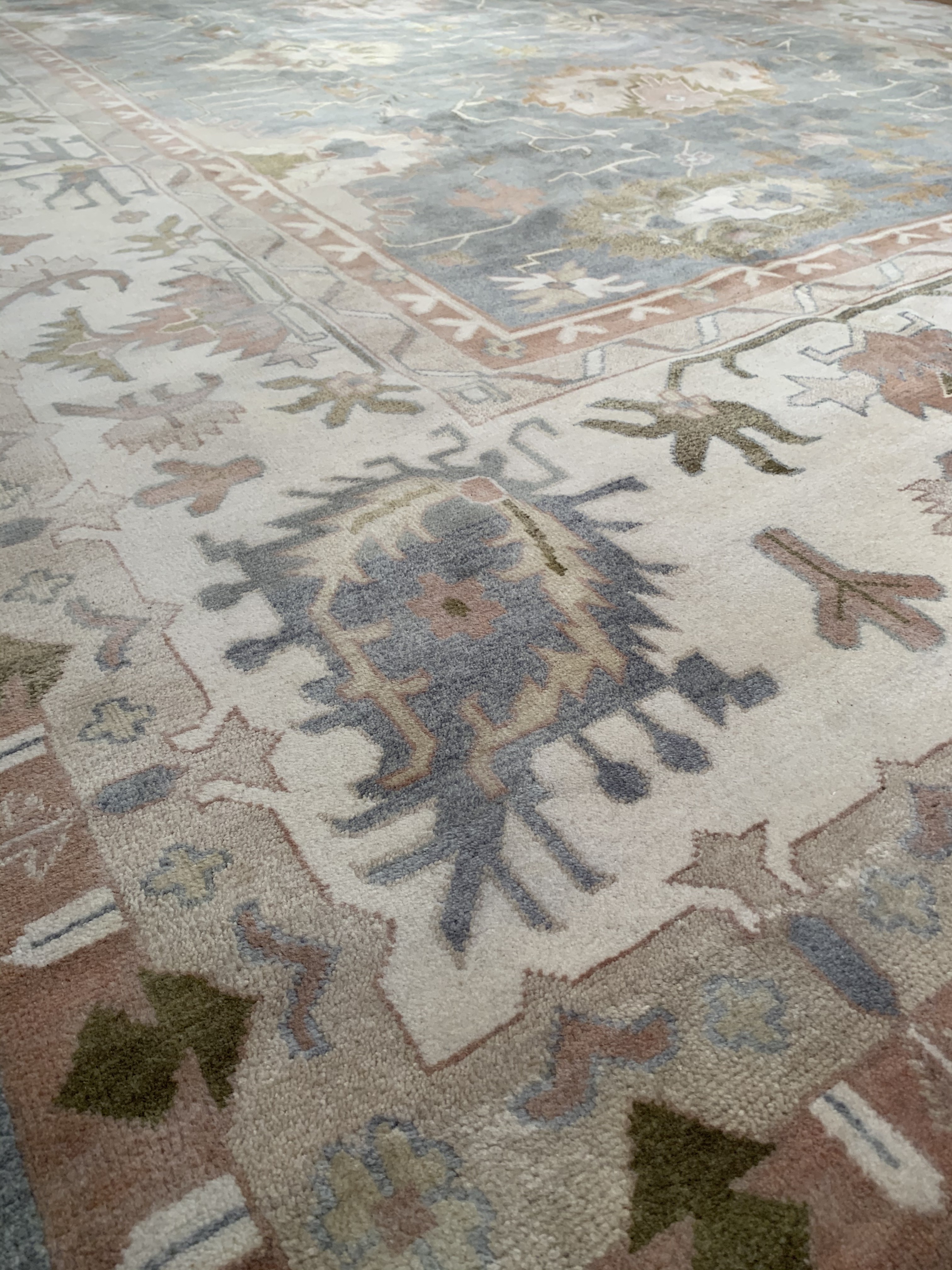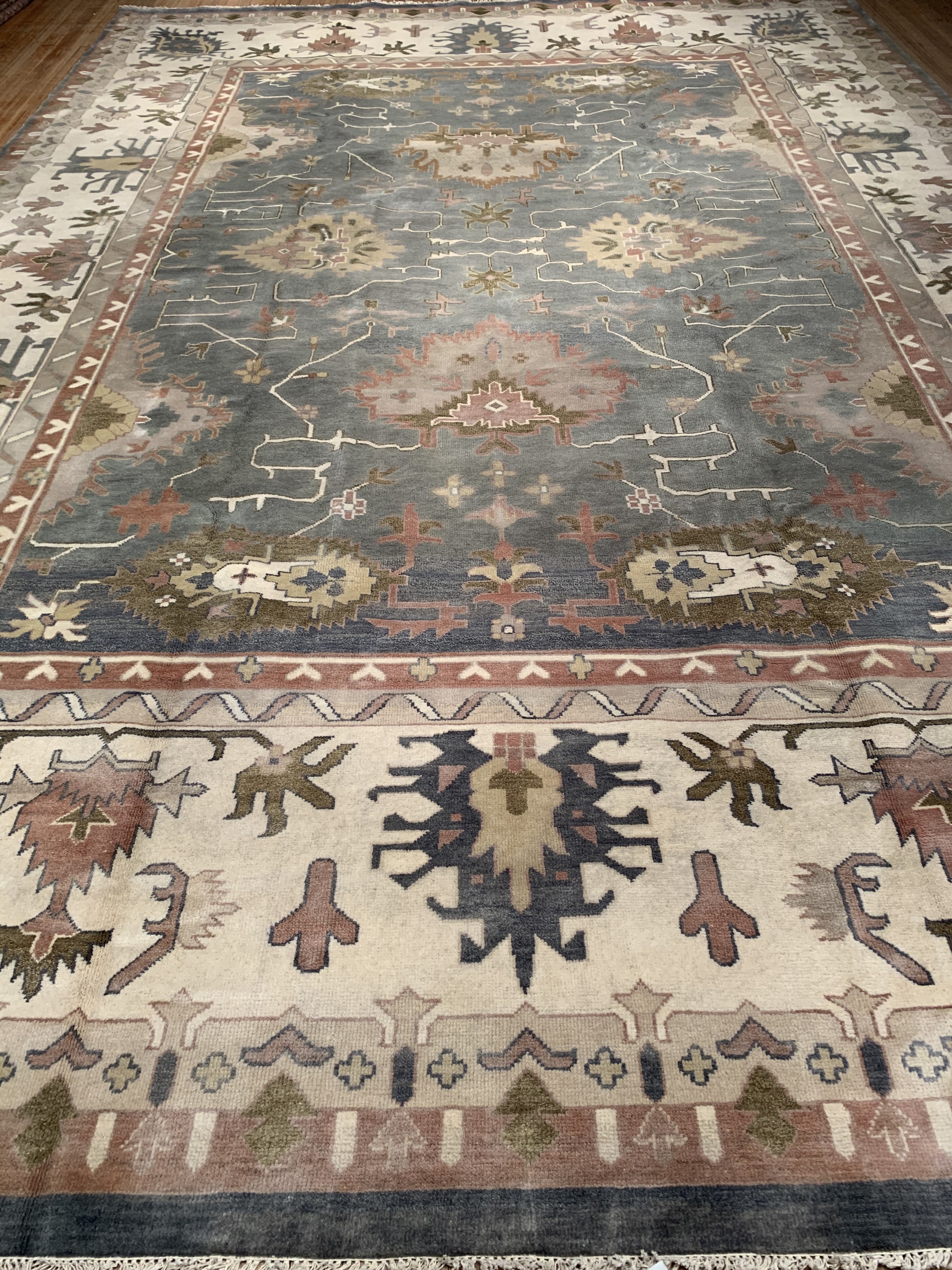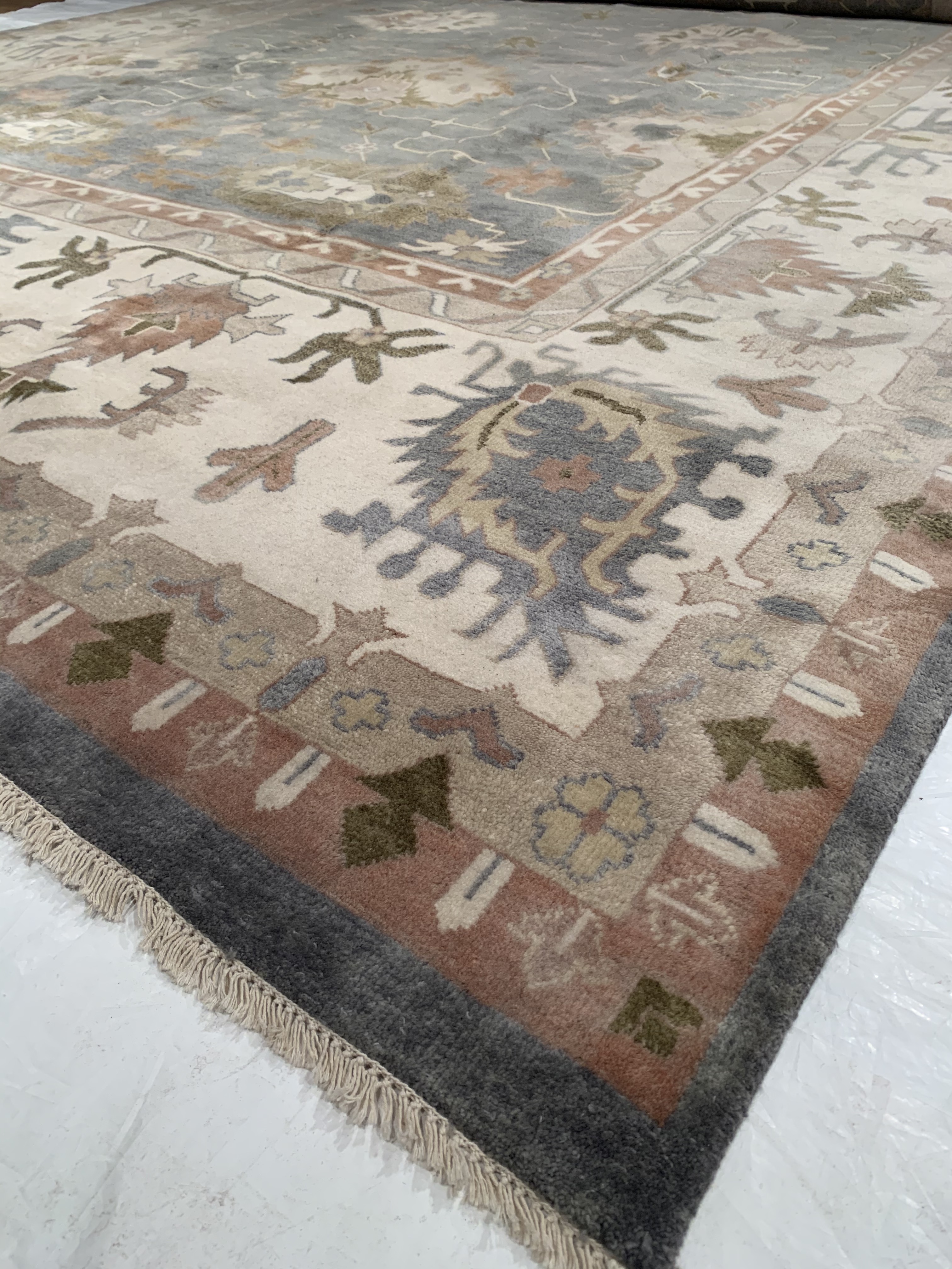 Oushak features the subtle elegance of classic Anatolian designs in tradition and styling of the finest Turkish carpets. These rugs provide a union of pattern, color, and the finest yarns and finishing. Each rug is finished with an antique wash that gives these rugs an authentic Oushak look. These rugs are hand knotted using the finest 100% New Zealand wool. The beauty of these rugs will enhance any interior decor.