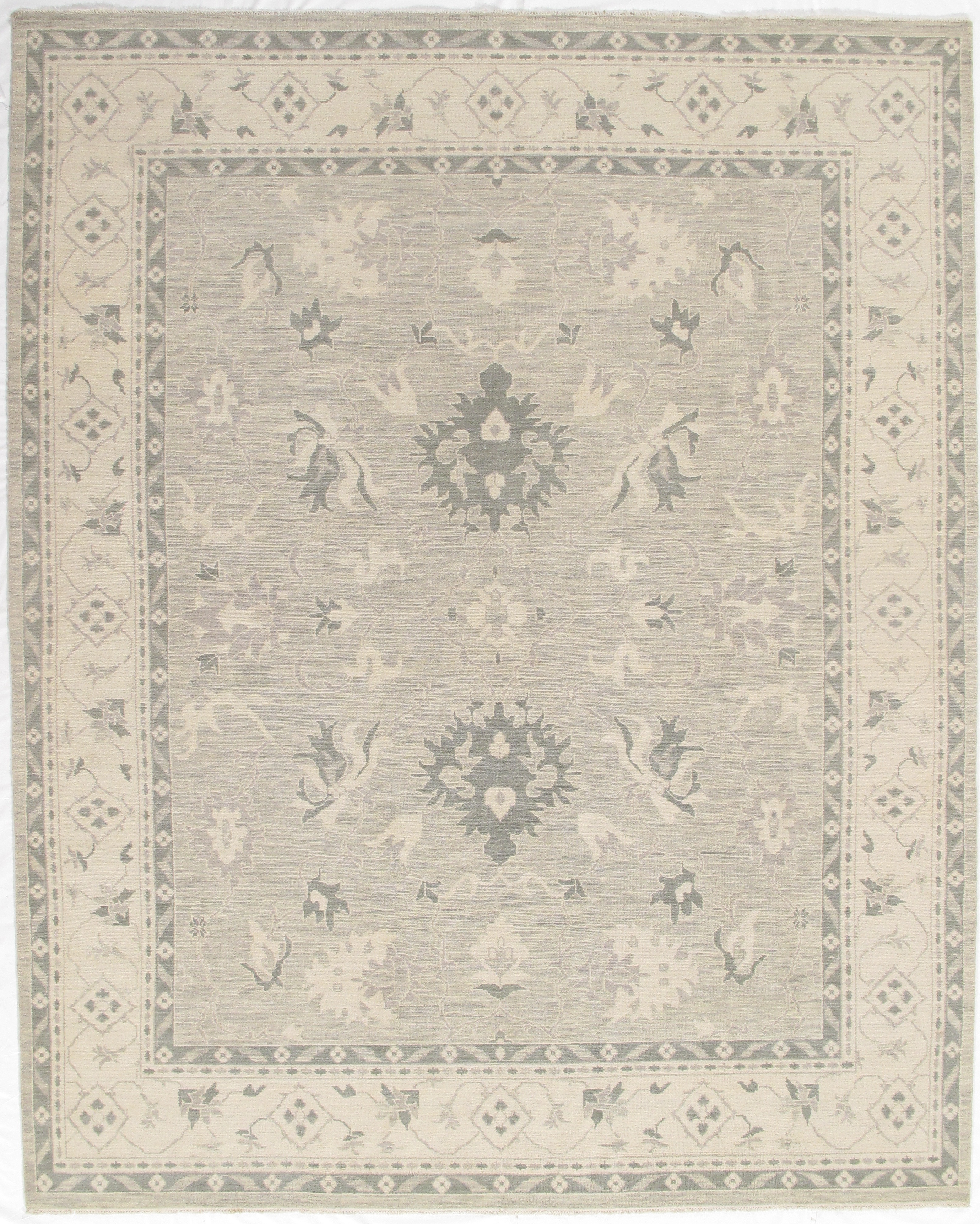 This collection of antique weave Oushaks is inspired by the original Turkish versions. The most skilled master Indian weavers hand knot each piece, giving special attention to skillfully hand finishing the final product to draw out the subtleties in the vegetable dyes and the hand-spun New Zealand wool. Each rug has authentic silky texture and muted, layered colors that delight.