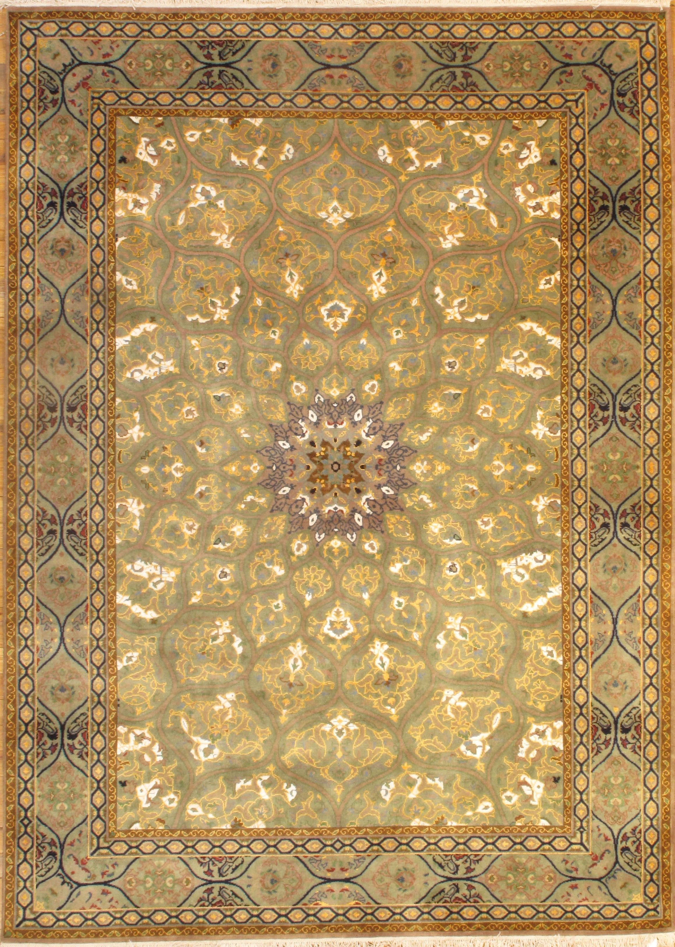 The Gonbad design was first popularized in Persian rugs by the weavers in Tabriz and as a result, Even though the design is now being copied by many other weavers and is now also found in Indian and Chinese rugs, the most classic example of the geometric design is found in high quality Tabriz rugs. Due to the difficulty in weaving geometric designs like the Gonbad design, only a small percentage of weavers have the skills to make rugs with this design and it is common to find this design in only high quality Persian rugs.