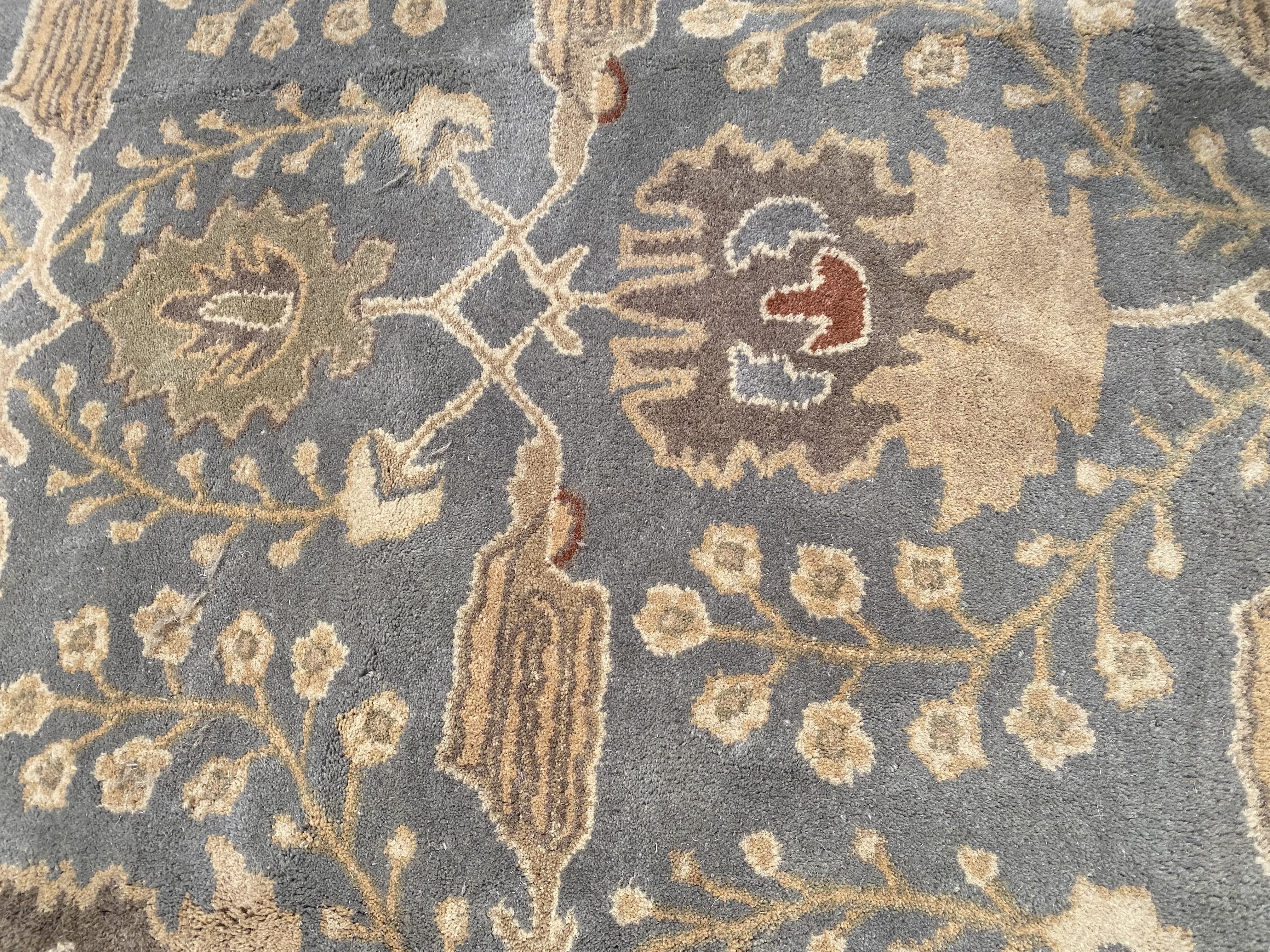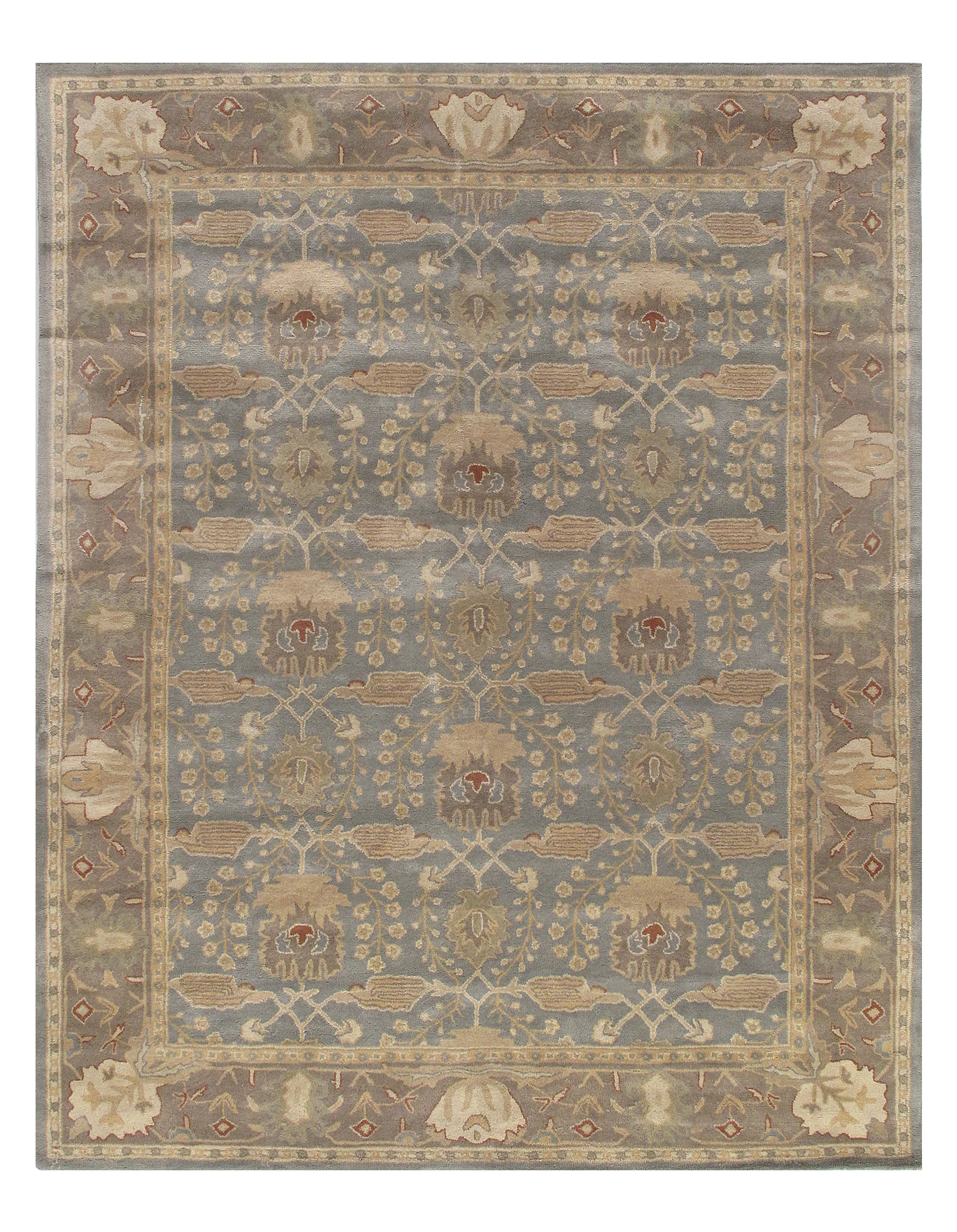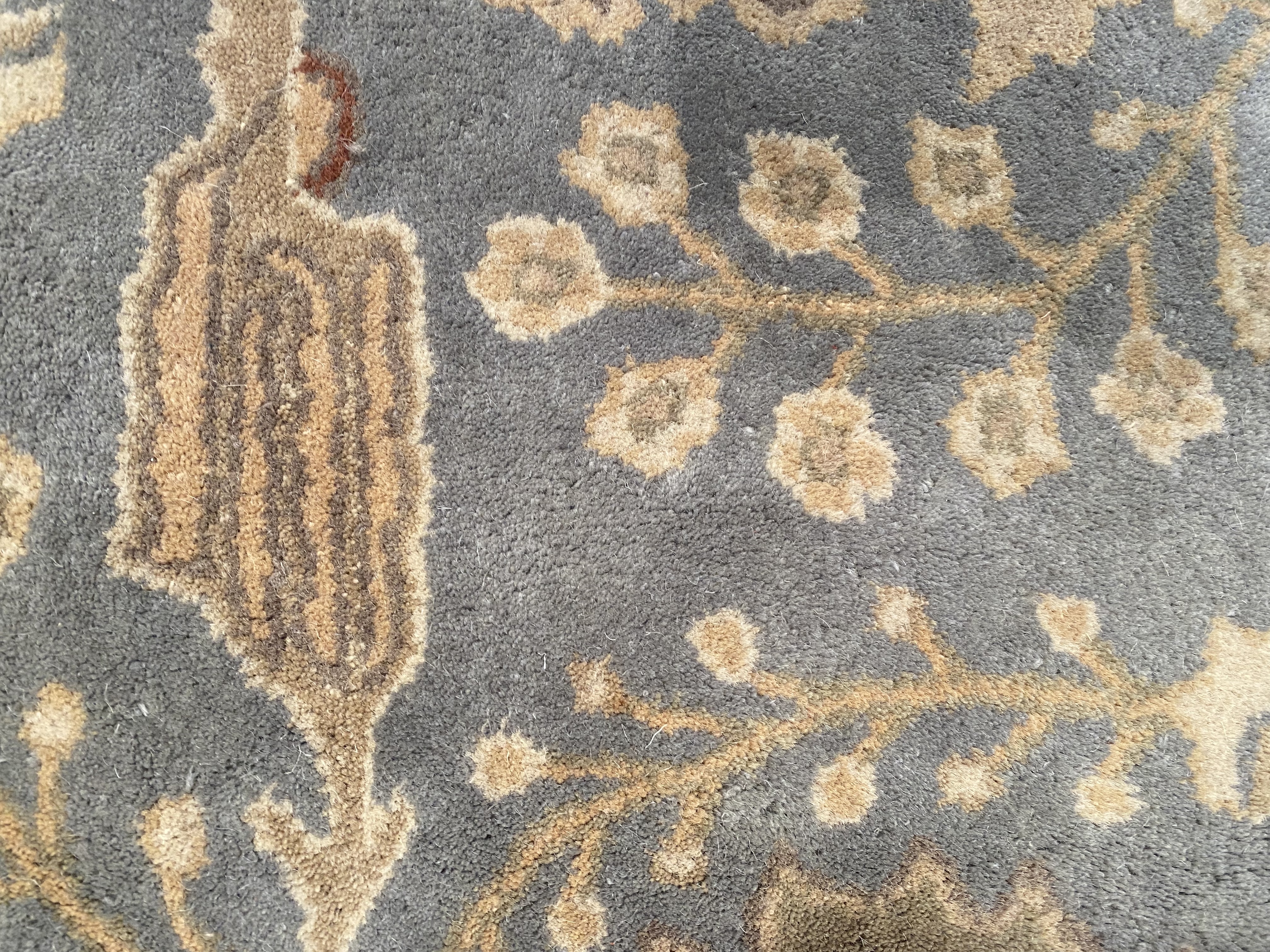 The Arts and Crafts designs made popular by English textile designer William Morris and Scotlands Donegal Carpets often included gingko leaves, thistles, flowers and willow trees. The palettes of these 19th and early 20th century rugs ran from mossy greens to bright jewel tones.