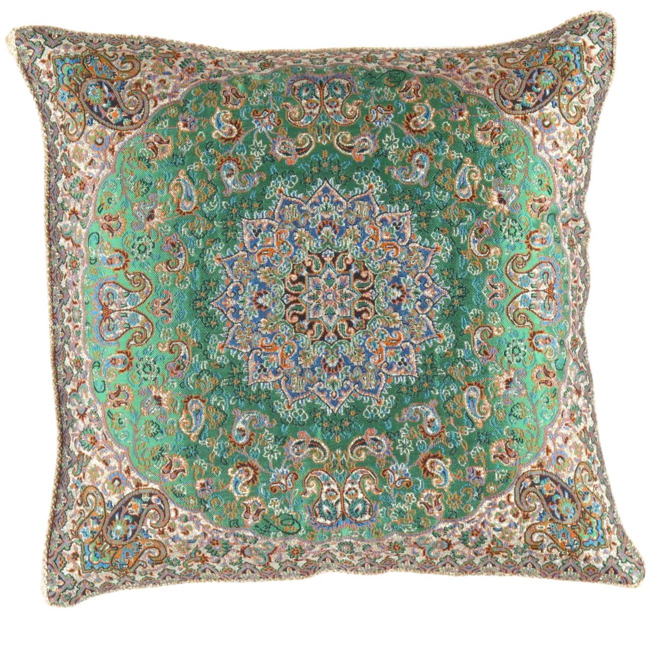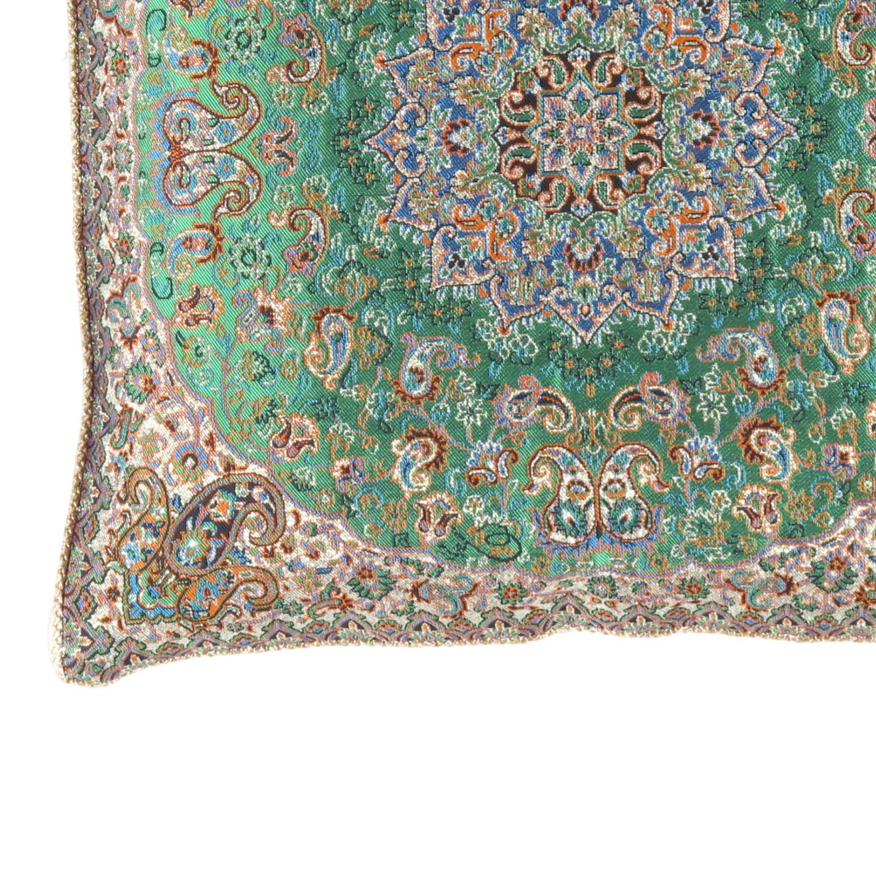 Beautiful reproduce Very Rare Termeh ( Silk Made Material With Design ) With hand made . 700 hundred years old Persian Zoroastrian art only produced in the city of Yazd and demonstrates the glorious ancient Persian empire bright culture, These truly peaces of arts represents the special designs workmanship on silk waving materials and exquisite handwork on placing green and silver threads, A fine Decorative objects to be placed on tables, Furniture or Framed as art decor for your walls or a FANTASTIC GIFT SIZE: 16'' X 16''