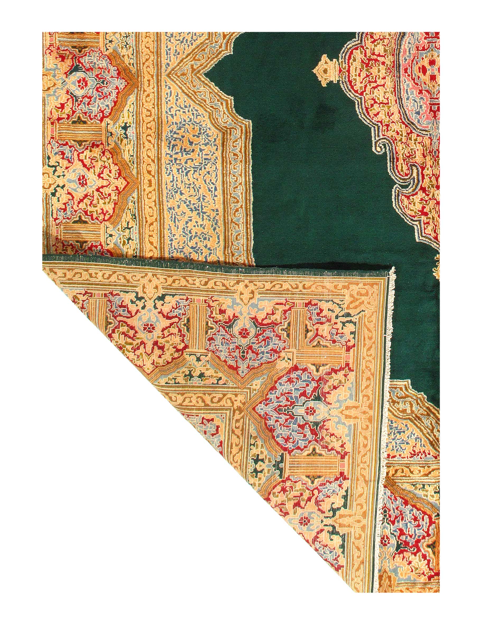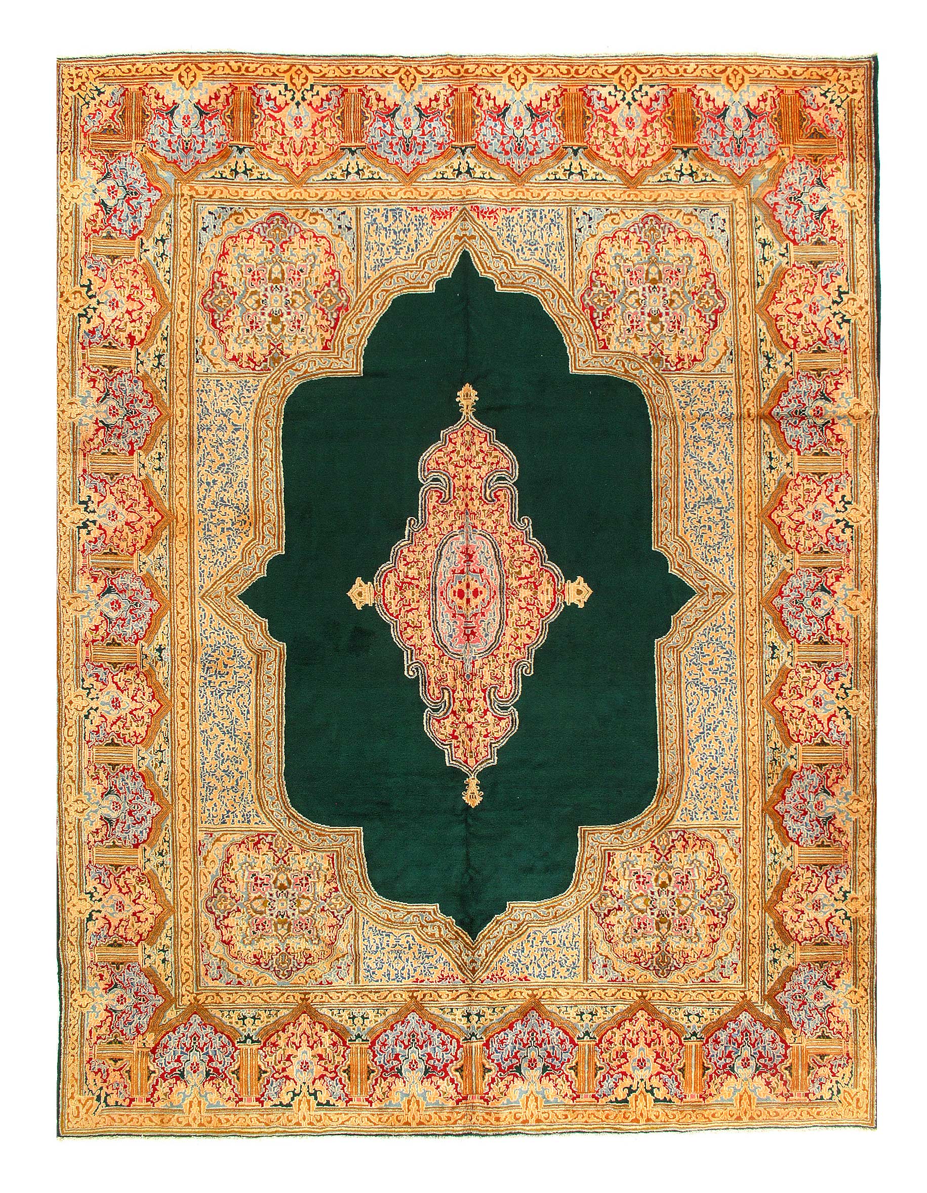 Hand knotted and meticulously crafted by Persian artisans, this stunning Kerman L Green Hand Knotted 12'8'' X 17'1''Area Rug #1005 will invite quality and beauty into your home, office or outdoor space. Pasargad takes pride in offering unique sizes and designs for living room area rugs, Kerman rugs have a rich history, and a link to a very famous explorer. Crafted in Kerman, an Iranian city in the southeastern portion of the country, the first Kerman rugs were constructed over a thousand years ago. Kerman rugs were made popular all around the world when Marco Polo noticed their incredible craftsmanship and distinct designs. Kerman rugs typically feature flowers in their design; they often have a floral or architectural theme in the border with a medallion in the center on the rug. Would you like to see more traditional Persian rugs