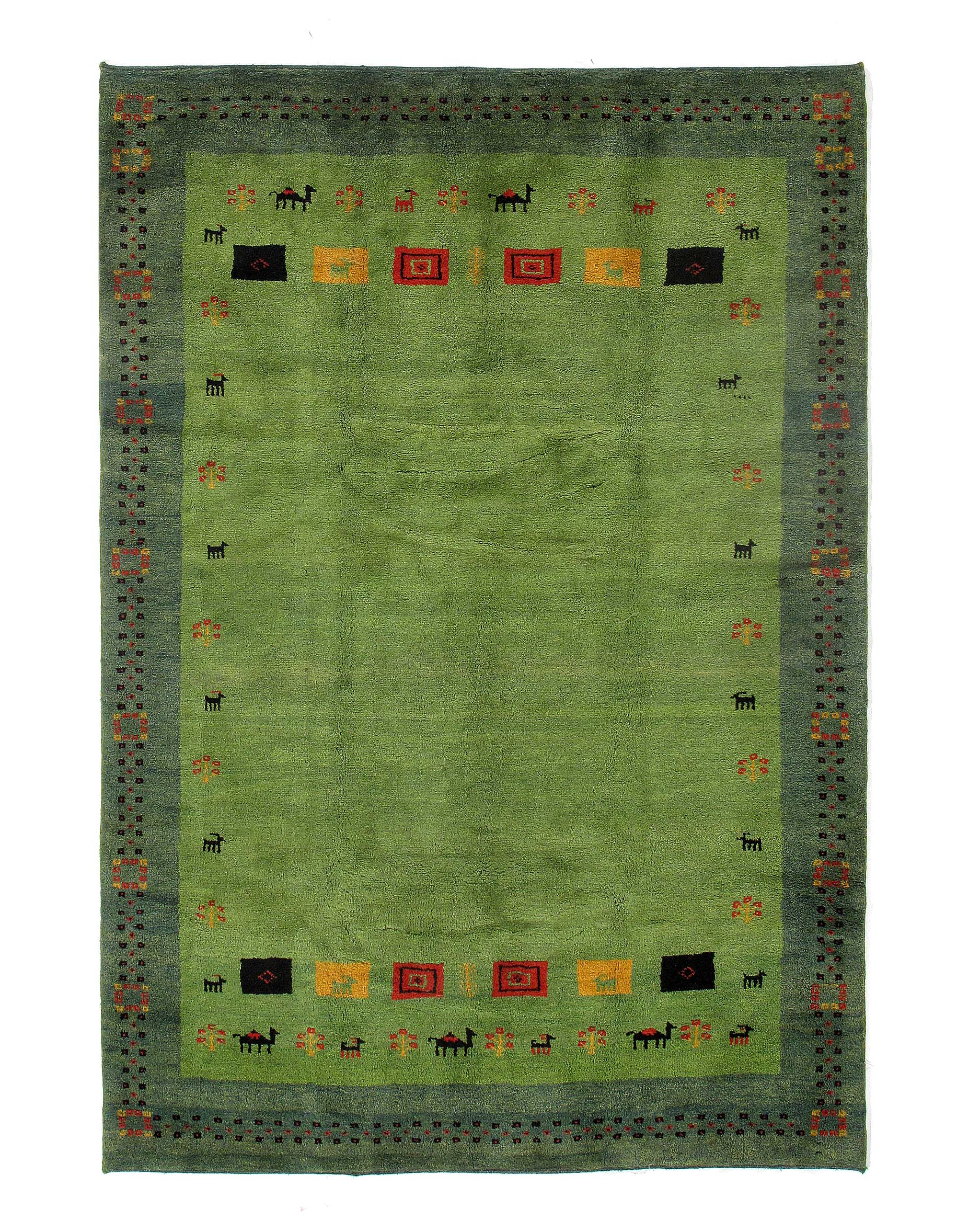 This is a gorgeous Persian Gabbeh rug. It's been hand-knotted using hand-spun lamb's wool. The rug has a dense, soft pile, and excellent quality, to ensure that you will enjoy the look and feel of your rug for years to come.