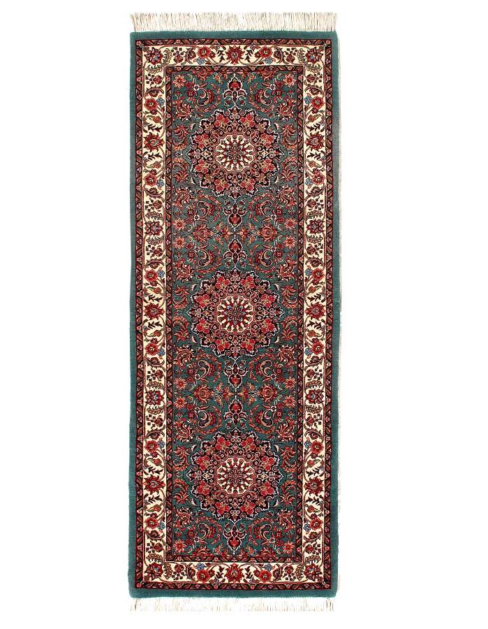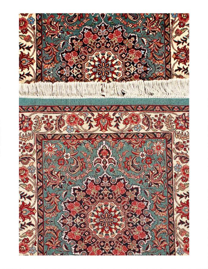 Bidjar is a town in Persian Kurdistan located in north-west Persia. The Bidjar name is also used to describe the antique rugs that were produced in the many villages in the surrounding vicinity. The Bidjar is noted as being the stiffest carpet made; they are very heavy in relation to their size, and very thick and durable. All of the knots are symmetrical and the rows are beaten down during the weaving process producing a dense compact fabric. Given their thickness and construction Bidjar rugs can be difficult to fold. The many designs depict the Kurdish influence of the area and often floral and classical geometric motifs are employed as well as the use of large, whimsical medallion designs. The color palate is rich and jewel toned making the Bidjar a highly desirable rug sought after by designers.
