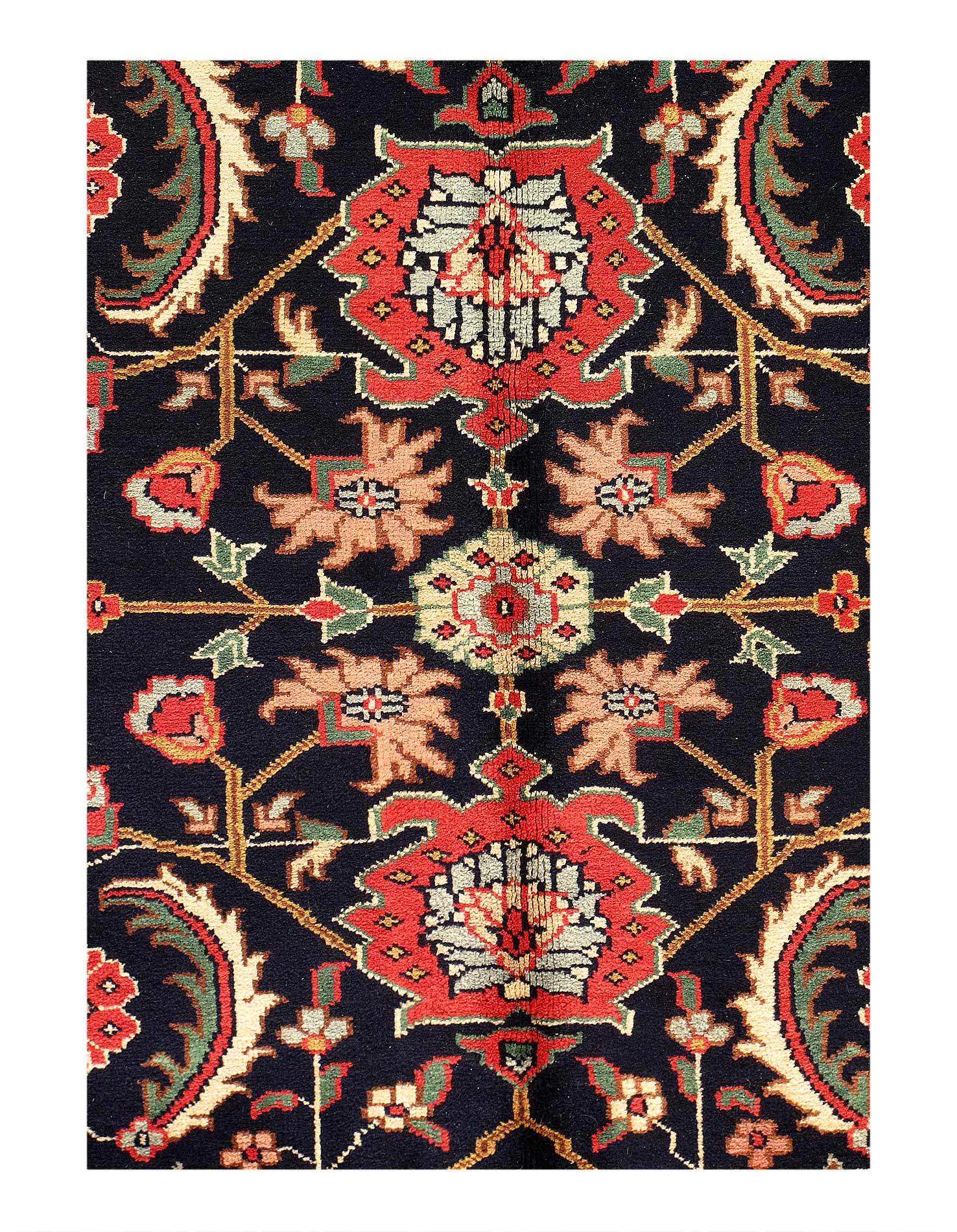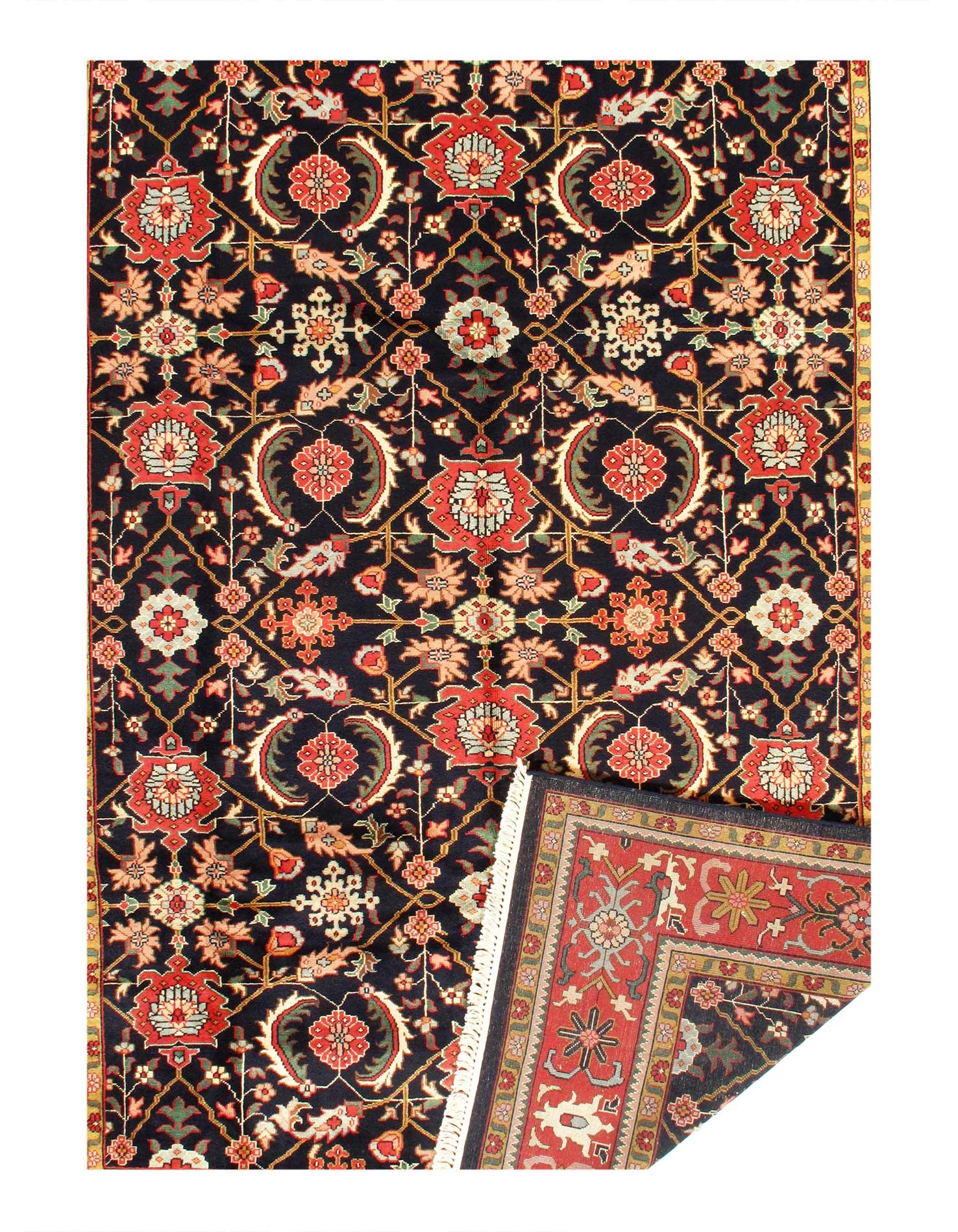 Augra rugs are distinguished by their excellent weave, they have the most diverse display of designs which often reflect scenes of falconry, and ferocious lions. Some of the most well know Augra rugs were inspired by hand painted covers of Ancient books. The dominant colors for these rugs tend to be, cream, red, navy blue, and many more. Their material is often woven with wool or silk. Augra rugs are not only one of the finest groups of Indian rugs but also the most decorative as well.