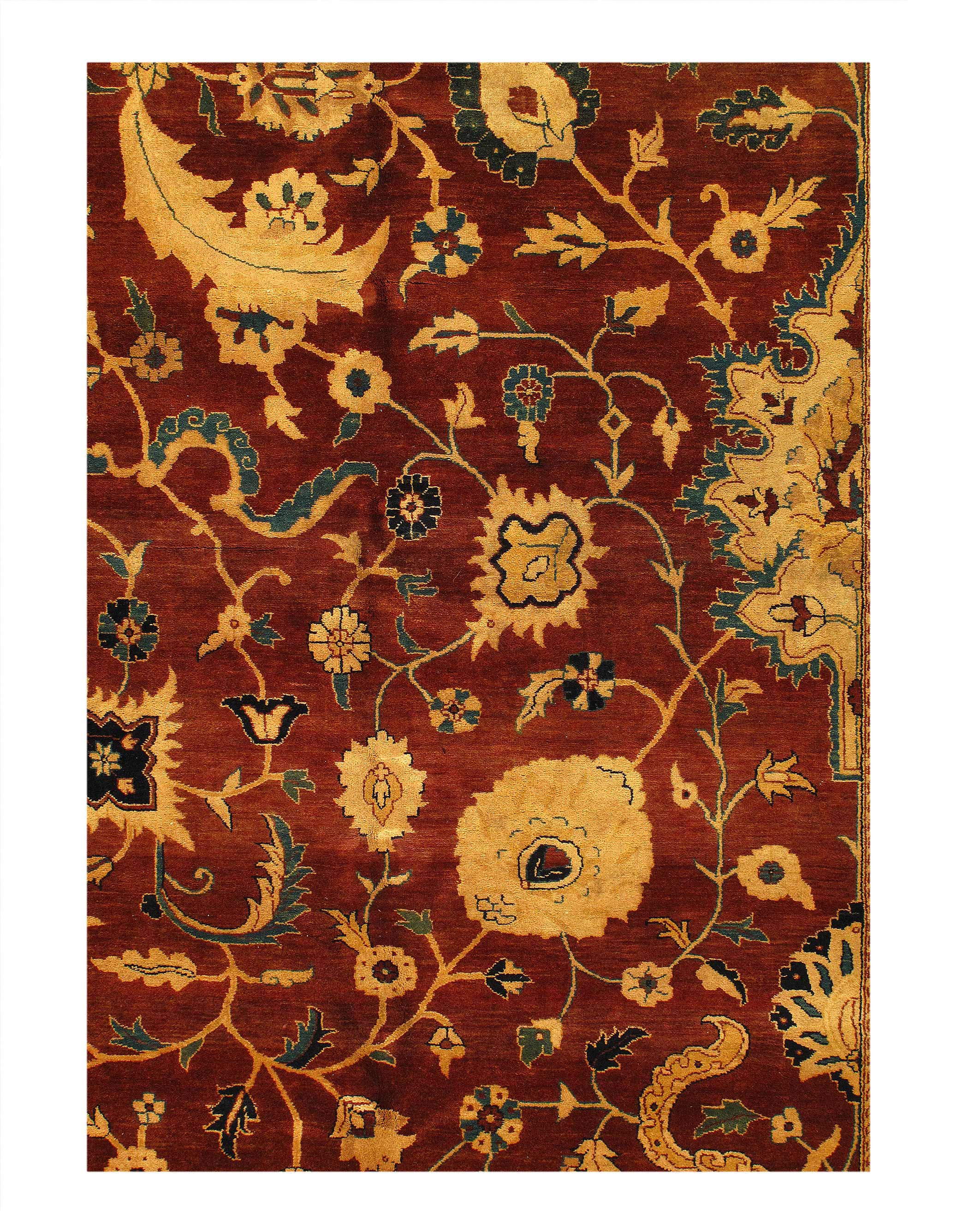 This rug is a versatile, stylish and environmentally conscientious choice as it is made from 100% natural fibers.Hand-knotted Indian Agra rug. Made from naturally dyed New Zealand wool. Fine weave. This rug has a dense, soft pile, and excellent quality, to ensure that you will enjoy the look and feel of your rug for years to come.
