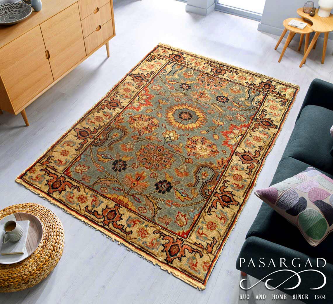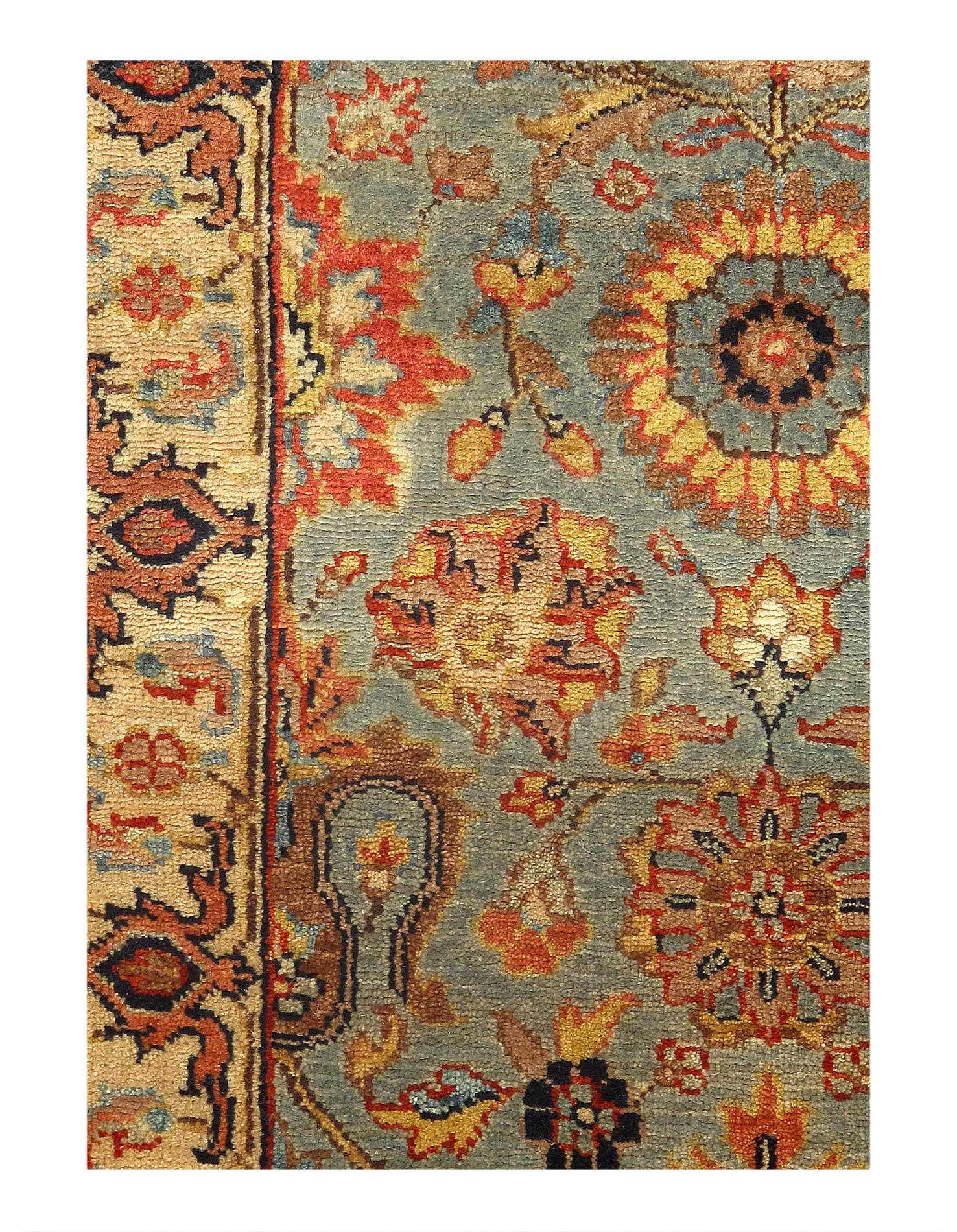 This magnificent Ziegler Sultanabad Design rug above is one of the finest examples of its kind. copy-ed from a room of Sigmund Freud’s home, 20 Maresfield Gardens, in Hampstead, London. In 1938, the renowned father of psychoanalysis arrived with his family in London as refugees from the Nazis in Vienna. They brought with them all of their possessions, including carpets and rugs, furniture, and a collection of his prized antiquities. Here his son Ernest and housekeeper Paula Fichtl recreated for him the same working environment that he had in Vienna. Freud bought most of his rug collection from dealers like his brother-in-law, Moritz Freud, 1857-1920 (same surname), who lived in Berlin. The field of this carpet has a stunning design of palmettes and tendrils strewn across a brilliant ivory ground that is elegantly complemented by the gold ground border. The various green and terracotta tones appear especially lovely against this foil of ivory and gold.