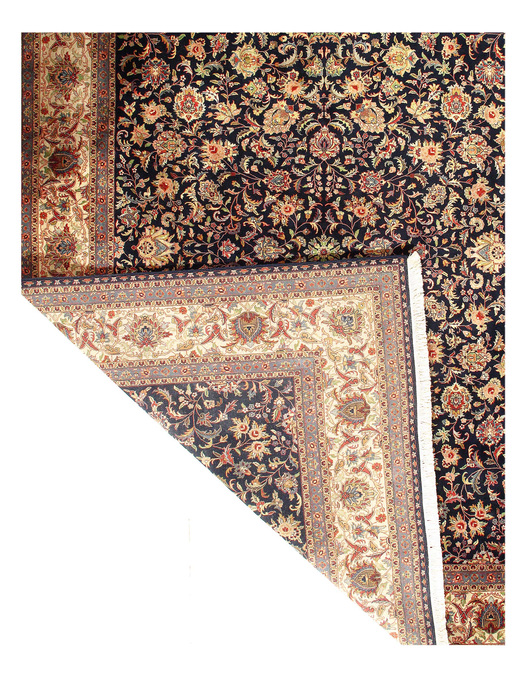 INDO Kashan designed hand-spun wool rug. Lamb's Wool on a Cotton Foundation very fine lamb's wool very good for high traffic Made of a fine wool in India.