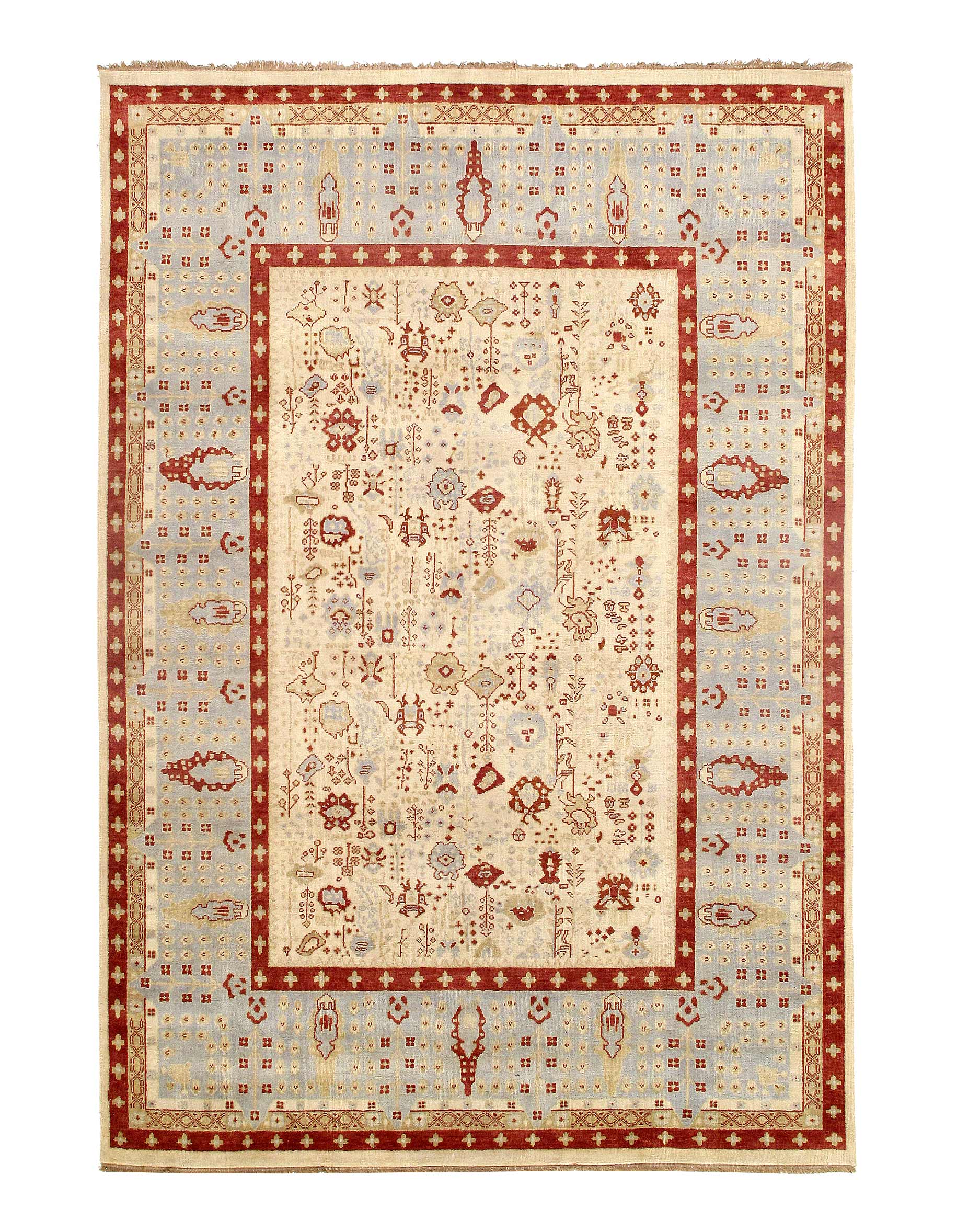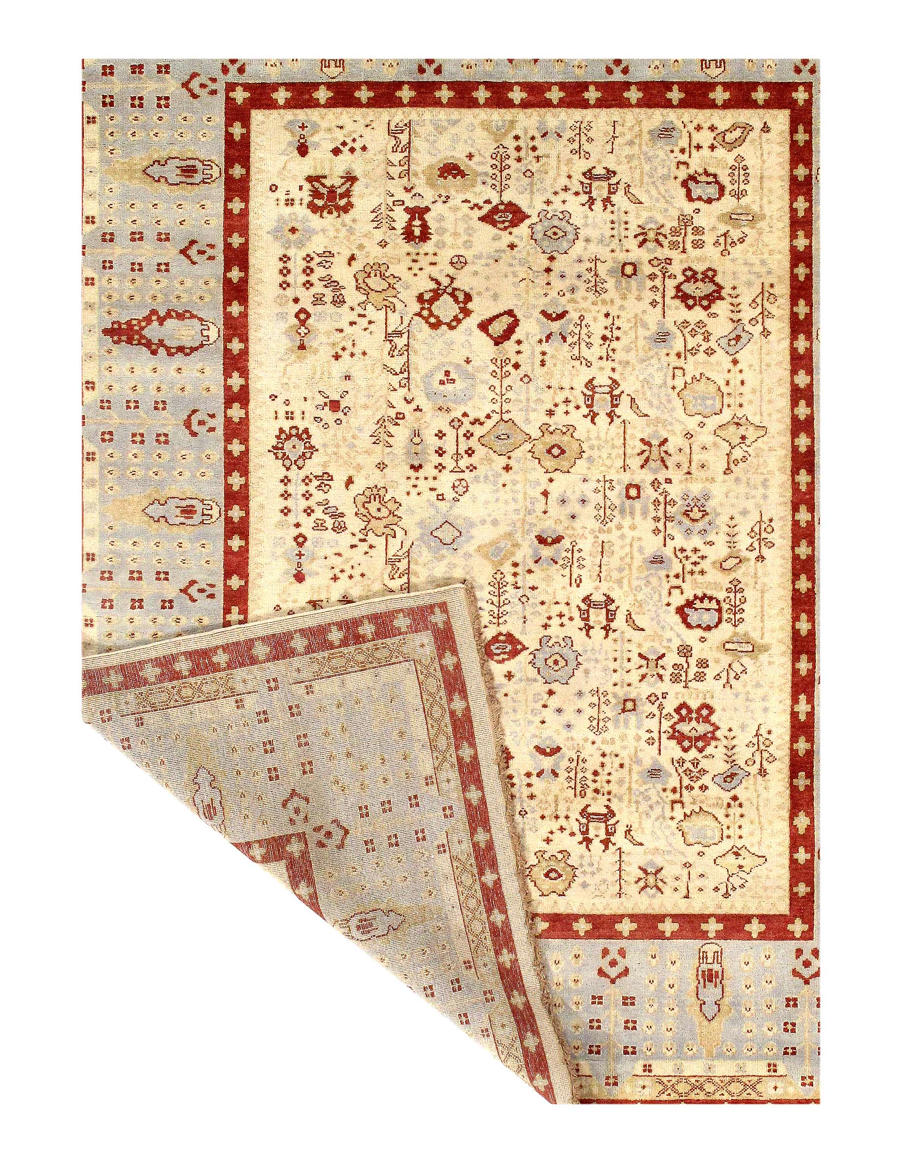 Oushak features the subtle elegance of classic Anatolian designs in tradition and styling of the finest Turkish carpets. These rugs provide a union of pattern, color, and the finest yarns and finishing. Each rug is finished with an antique wash that gives these rugs an authentic Oushak look. These rugs are hand knotted using the finest 100% New Zealand wool. The beauty of these rugs will enhance any interior decor.