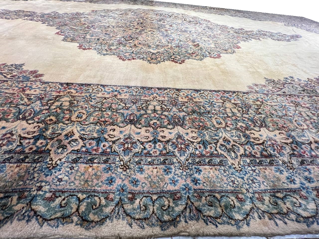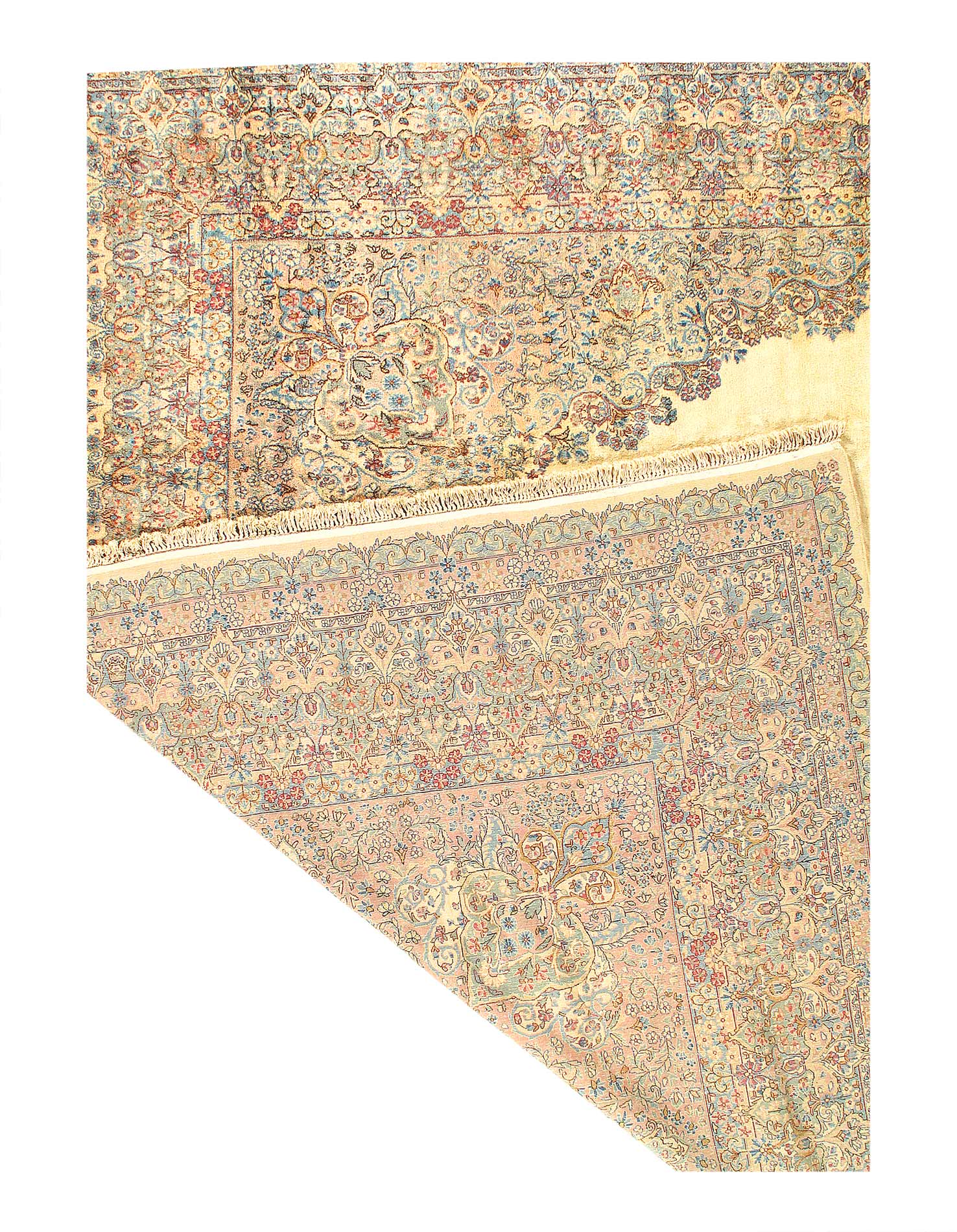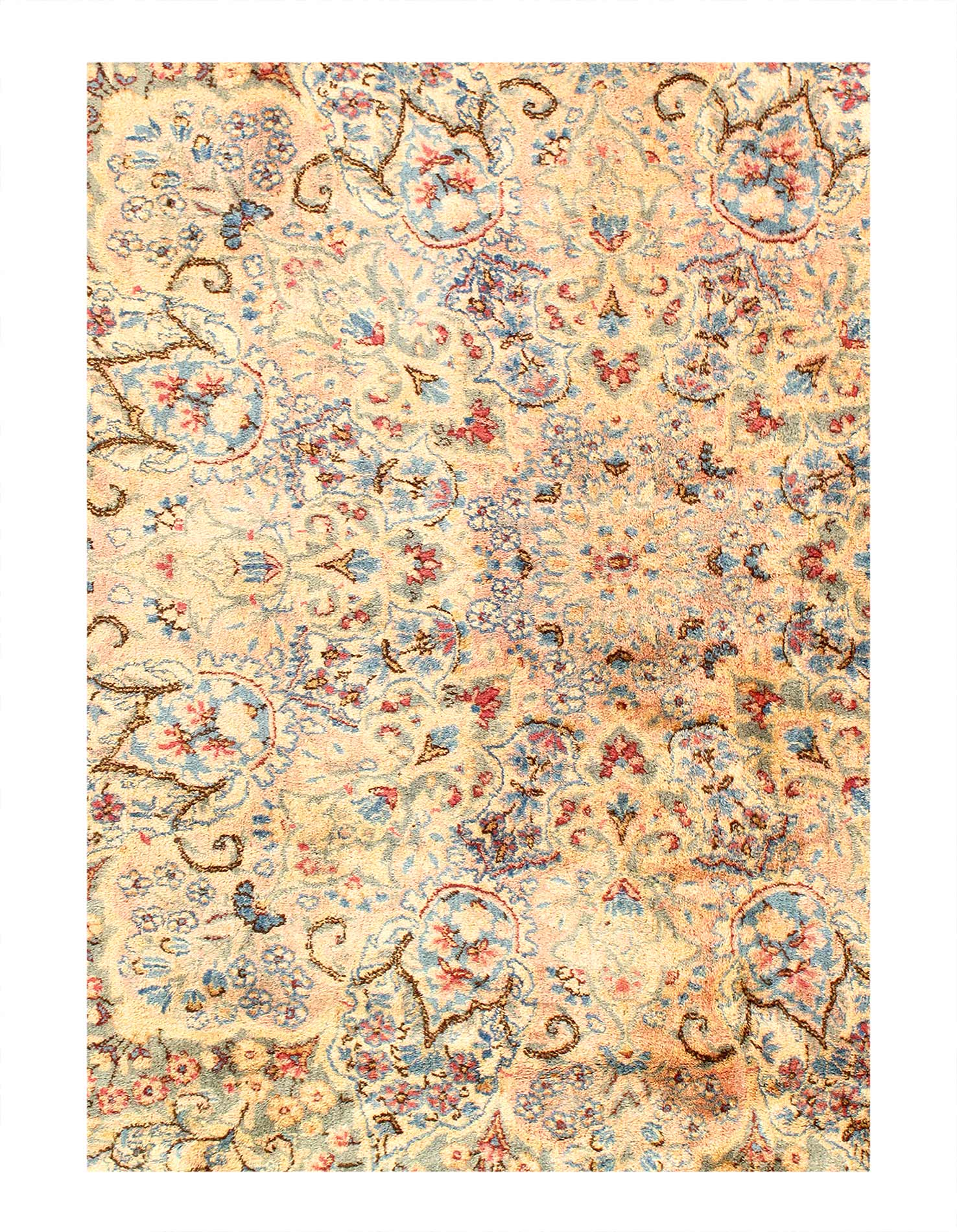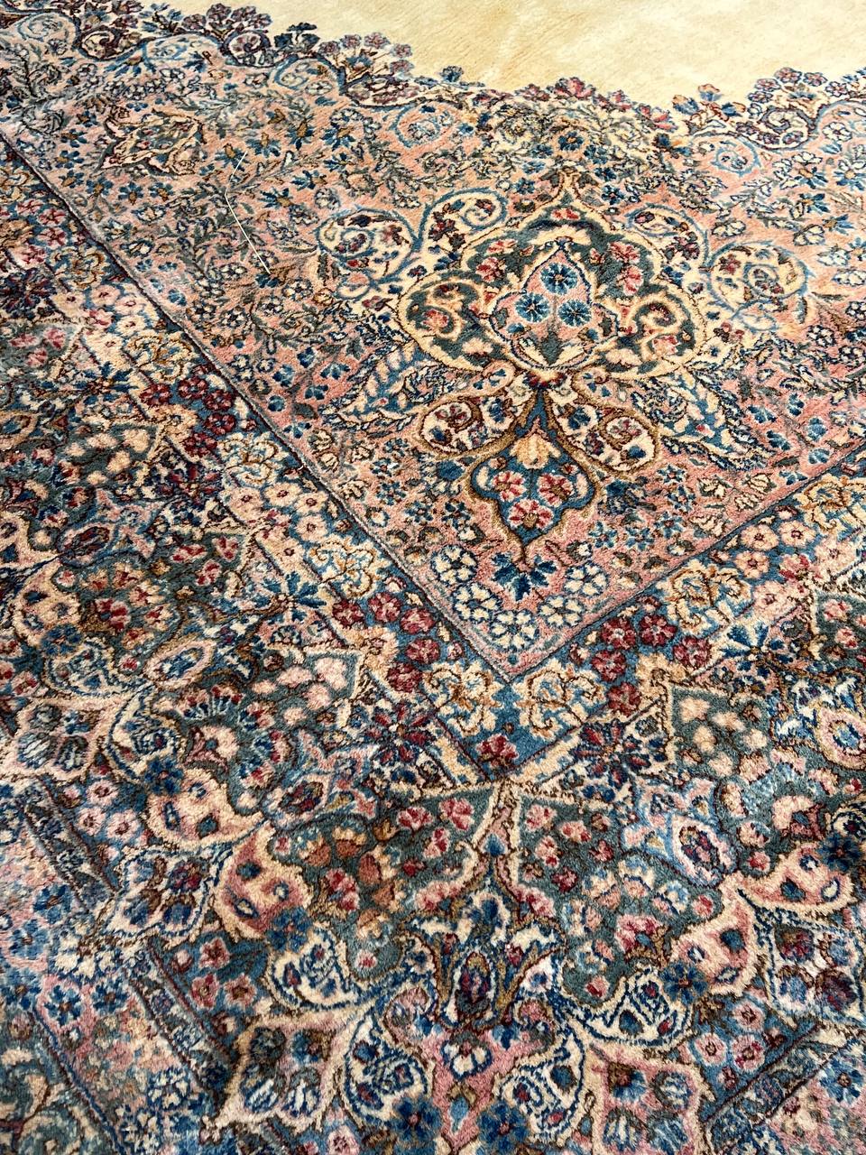 Kerman is an ancient city, with an incredible history going back over a thousand years. Marco Polo was one of the first westerners to view Kerman rugs. The city is located in the central south-eastern section of Iran, in the province that bears its name. Kerman rugs and carpets are perhaps one of the most recognizable within the antique Persian rug category. A typical pattern for Kerman rugs and carpets is a floral or architectural theme in the main border with a central medallion in the field. Other patterns include the finer Kerman Lavar style with garden, tree-of-life, vase, and all-over mille fleur designs, or the many pictorials which tell the story of a significant figure or event in history. The vase design carpets originated during the Safavid dynasty, and are among the greatest masterpieces of Persian weaving.