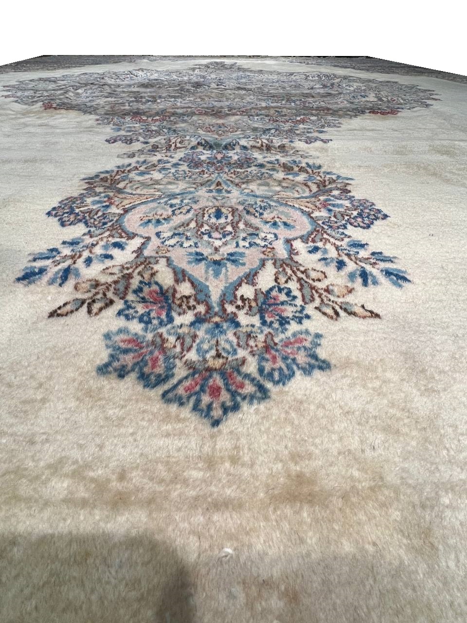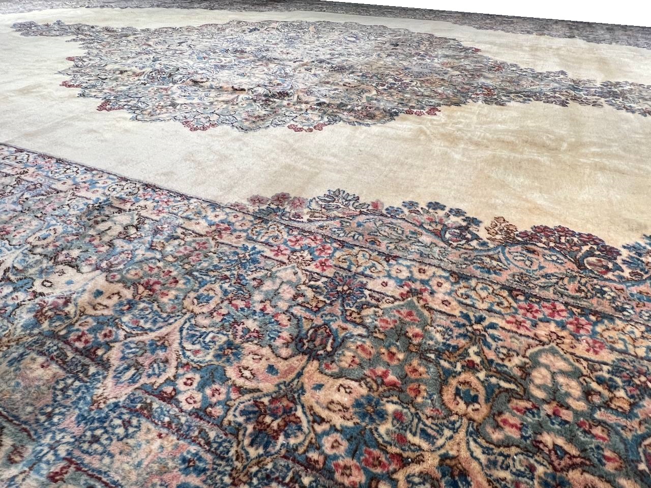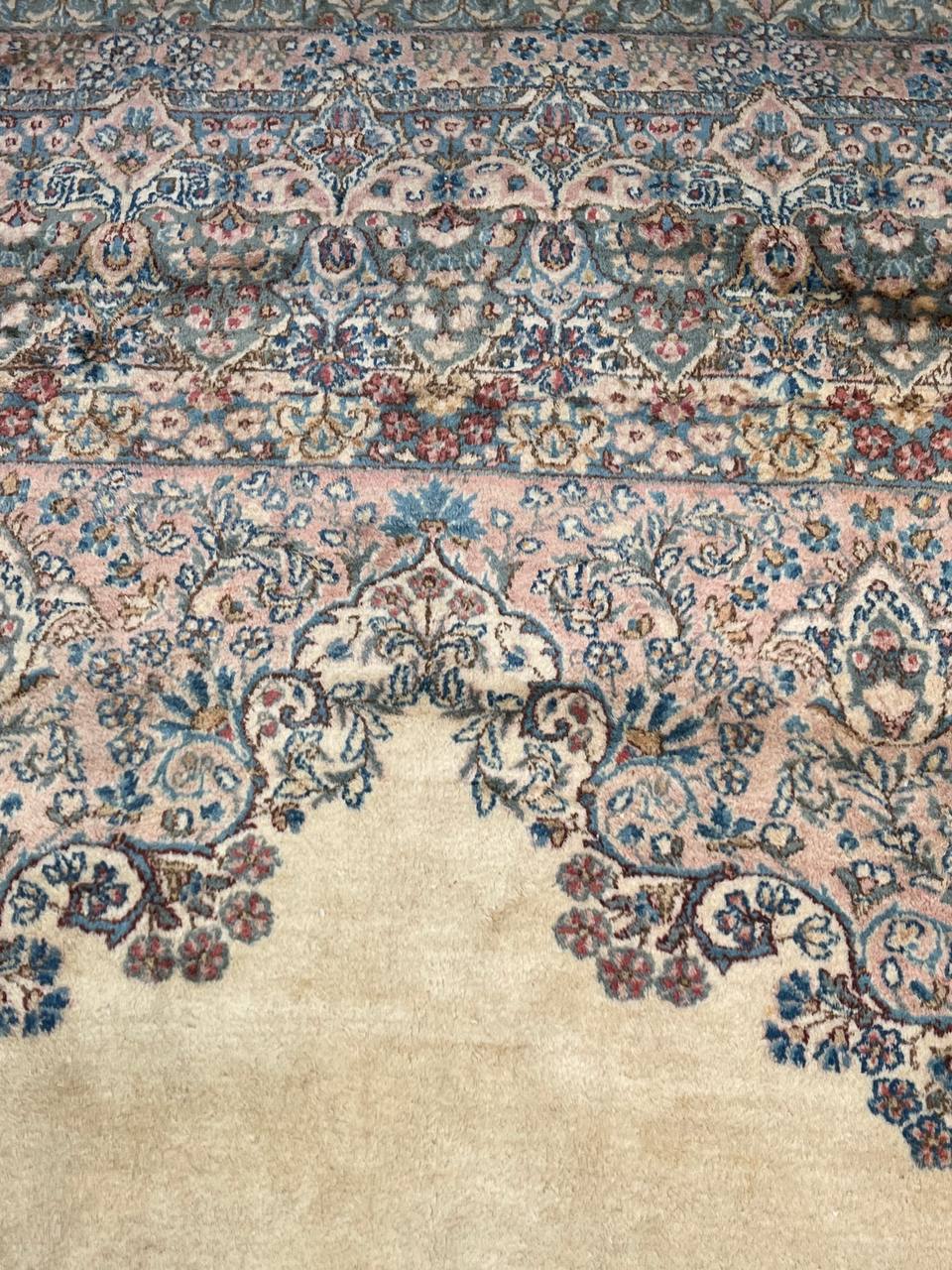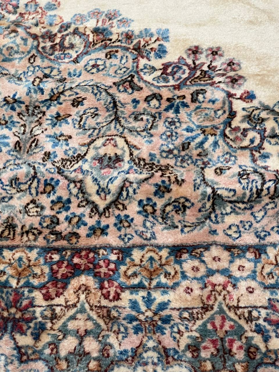 Kerman is an ancient city, with an incredible history going back over a thousand years. Marco Polo was one of the first westerners to view Kerman rugs. The city is located in the central south-eastern section of Iran, in the province that bears its name. Kerman rugs and carpets are perhaps one of the most recognizable within the antique Persian rug category. A typical pattern for Kerman rugs and carpets is a floral or architectural theme in the main border with a central medallion in the field. Other patterns include the finer Kerman Lavar style with garden, tree-of-life, vase, and all-over mille fleur designs, or the many pictorials which tell the story of a significant figure or event in history. The vase design carpets originated during the Safavid dynasty, and are among the greatest masterpieces of Persian weaving.