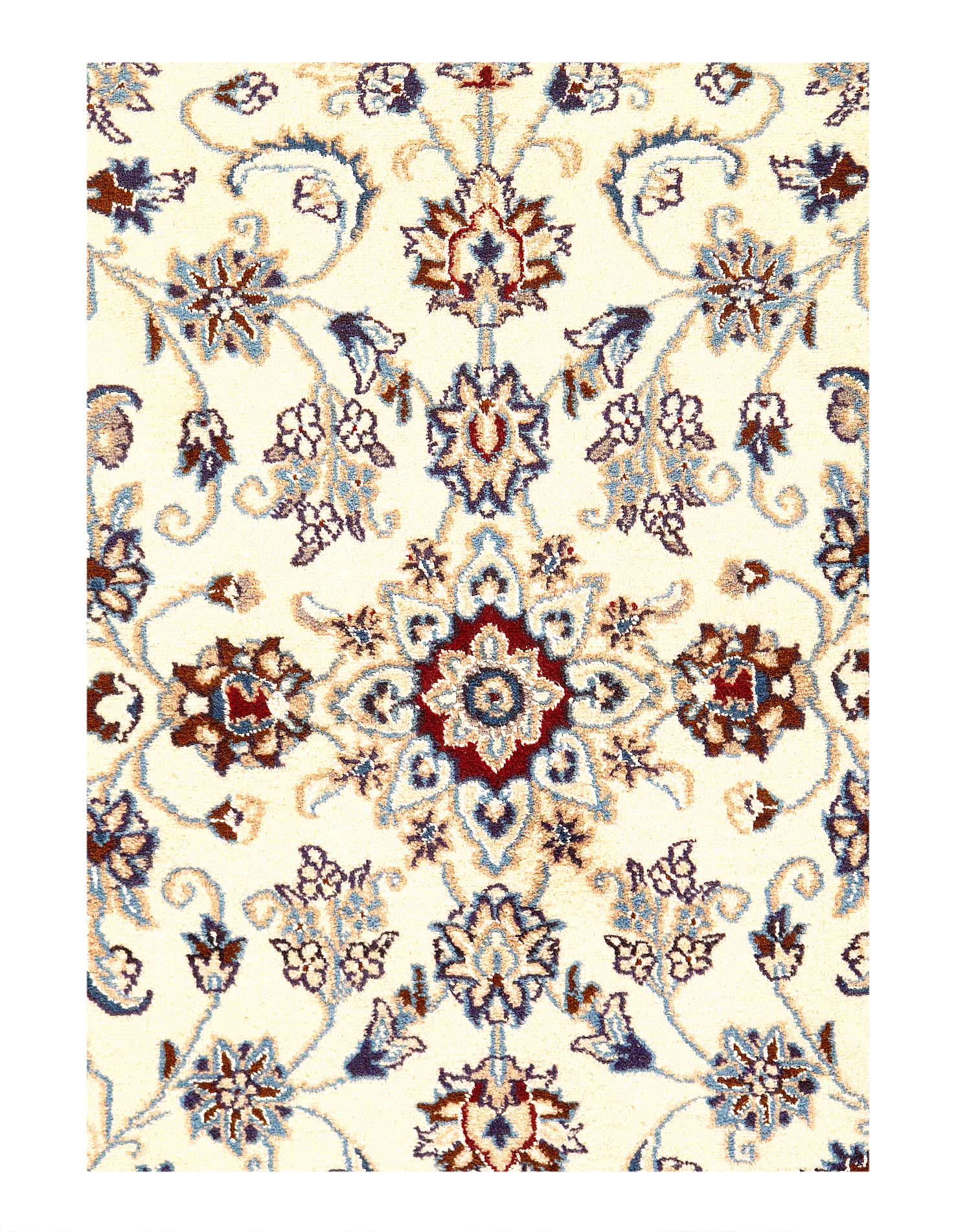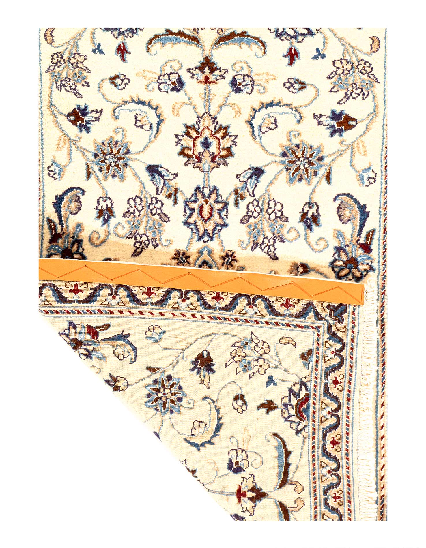 Hand knotted Nain rug ,Original Fine Persian Rug. Handmade Hand-knotted Silk & wool on a Silk .Classical combination of colors, cream ground .