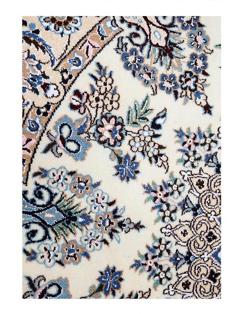 Persian Nain rugs are renowned for their detail and fine use of outlining along the central motifs. Breaking from the classical style of many vintage rugs produced around central Iran, Persian Nain rugs became renowned for their modern appeal and personal style, establishing the classical motifs of many other regional rugs, only through a more precise lens. In this striking piece, the precision is particularly visible along the heart of the vintage Persian rug, where the attention to detail allows each individual color to stand out as a unique part of the whole. The surrounding borders help ground the masterpiece and add horizontal intrigue to the natural elements within, which are arranged vertically to establish a cascading effect.