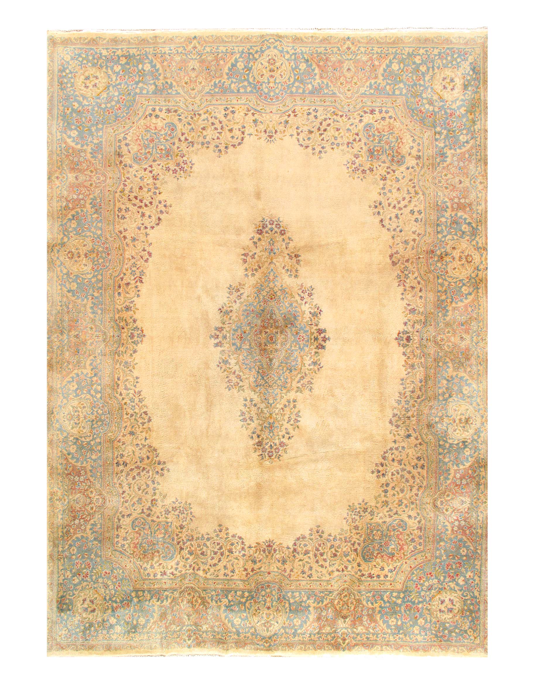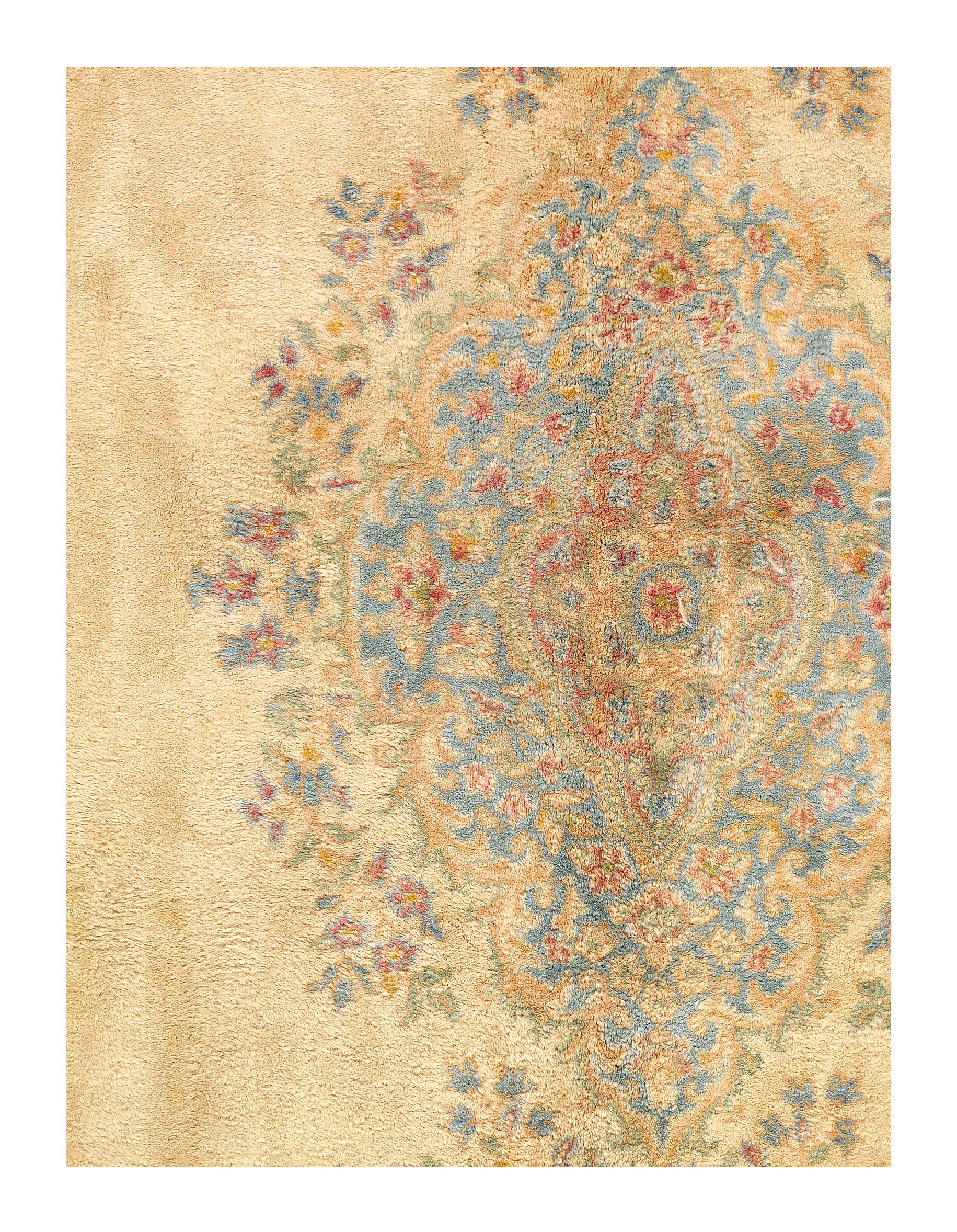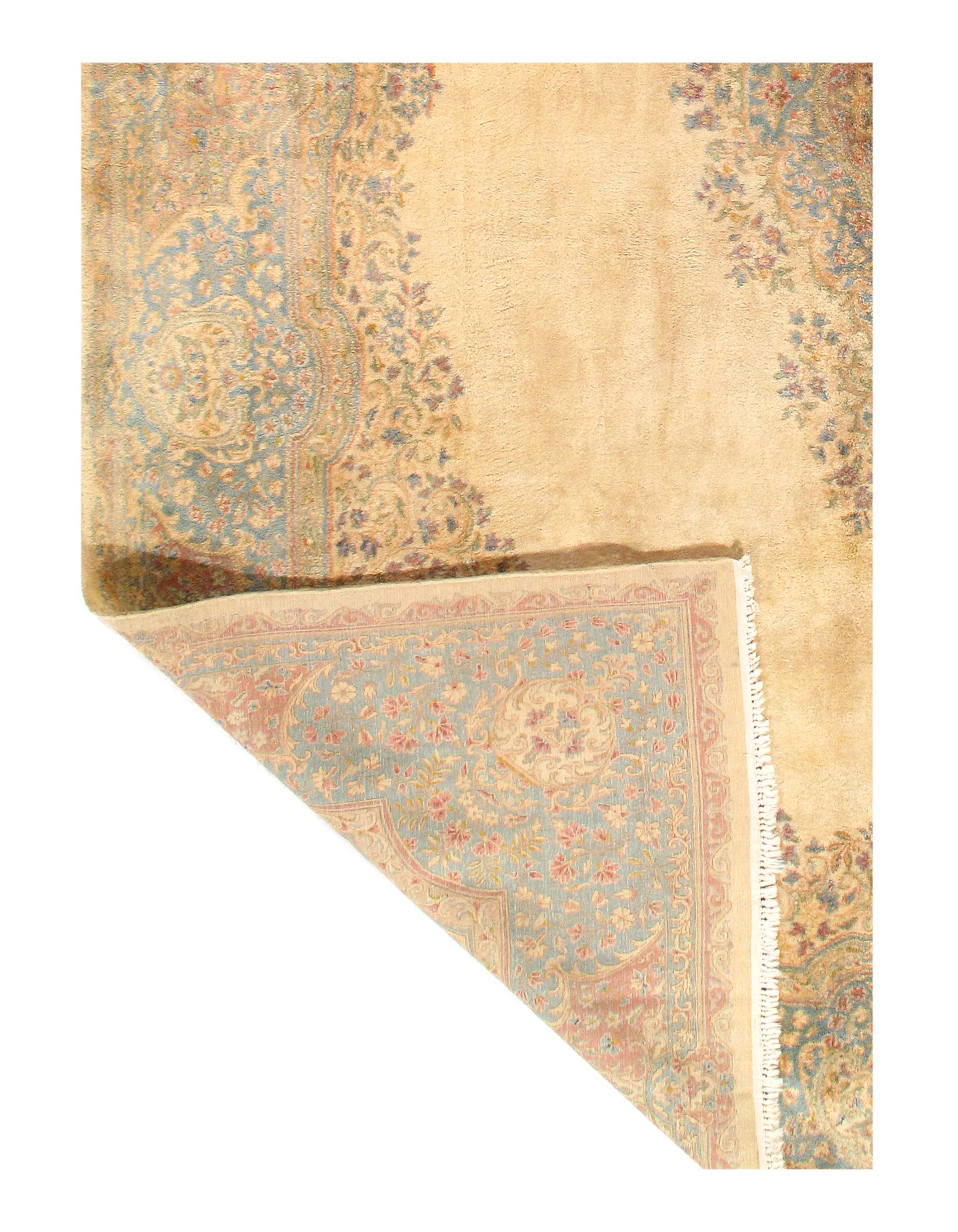 Kerman is an ancient city, with an incredible history going back over a thousand years. Marco Polo was one of the first westerners to view Kerman rugs. The city is located in the central south-eastern section of Iran, in the province that bears its name. Kerman rugs and carpets are perhaps one of the most recognizable within the antique Persian rug category. A typical pattern for Kerman rugs and carpets is a floral or architectural theme in the main border with a central medallion in the field. Other patterns include the finer Kerman Lavar style with garden, tree-of-life, vase, and all-over mille fleur designs, or the many pictorials which tell the story of a significant figure or event in history. The vase design carpets originated during the Safavieh dynasty, and are among the greatest masterpieces of Persian weaving.