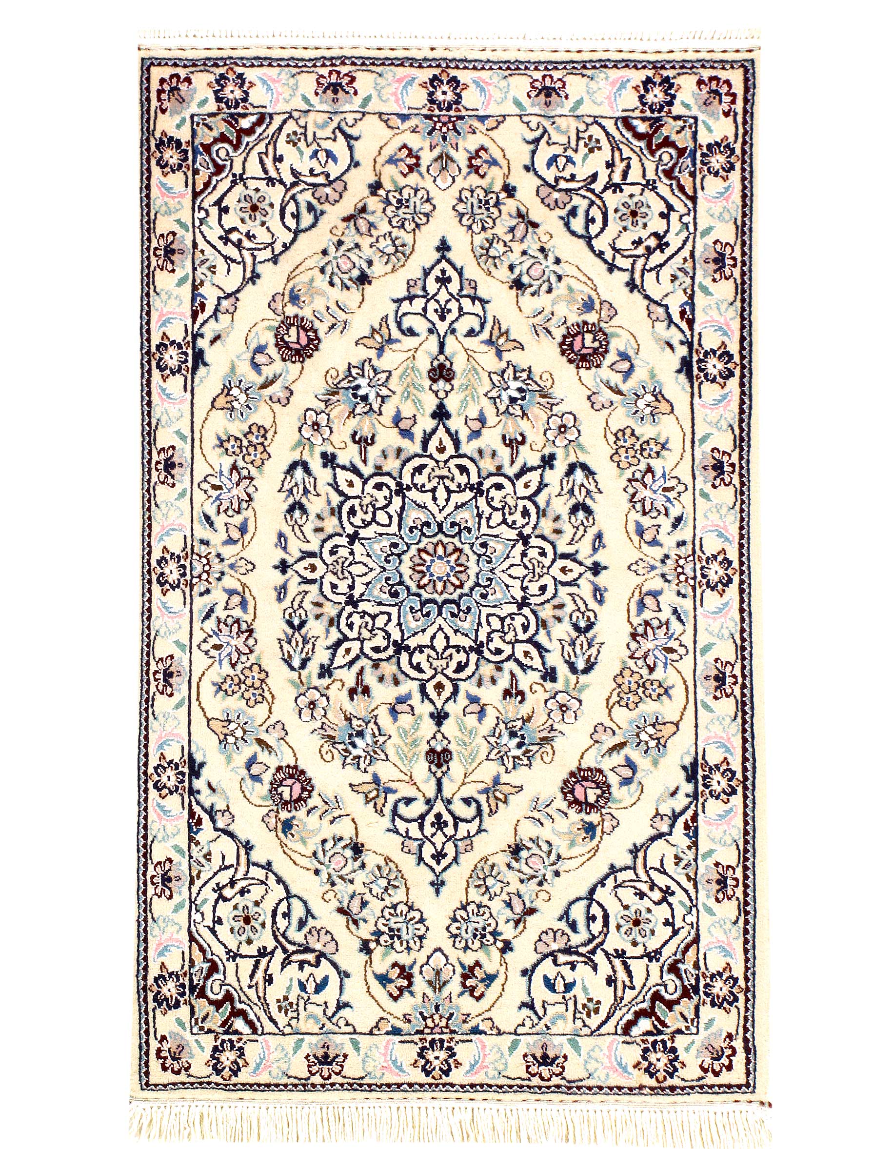 Hand knotted Nain rug ,Original Fine Persian Rug. Handmade Hand-knotted Silk & wool on a Silk .Classical combination of colors, cream ground .