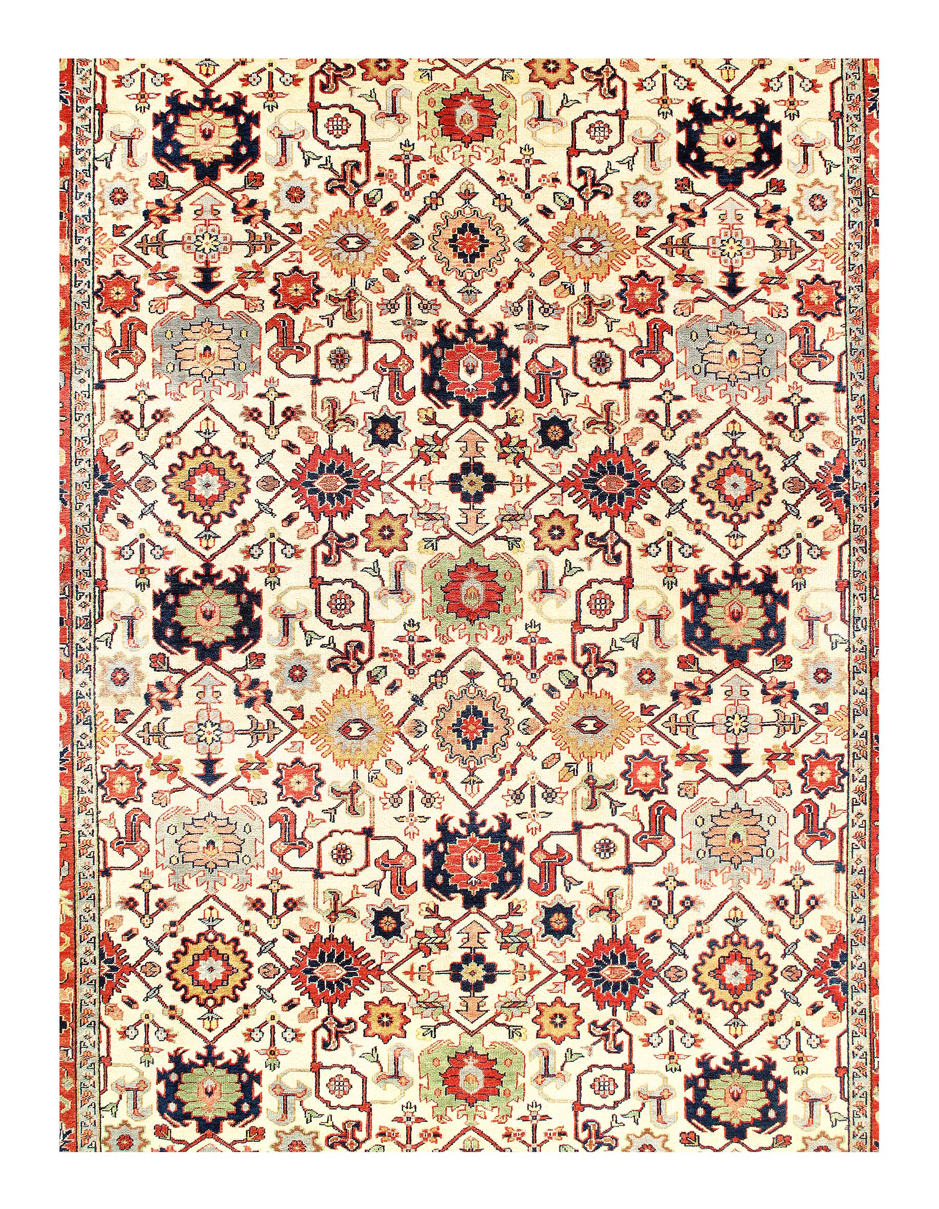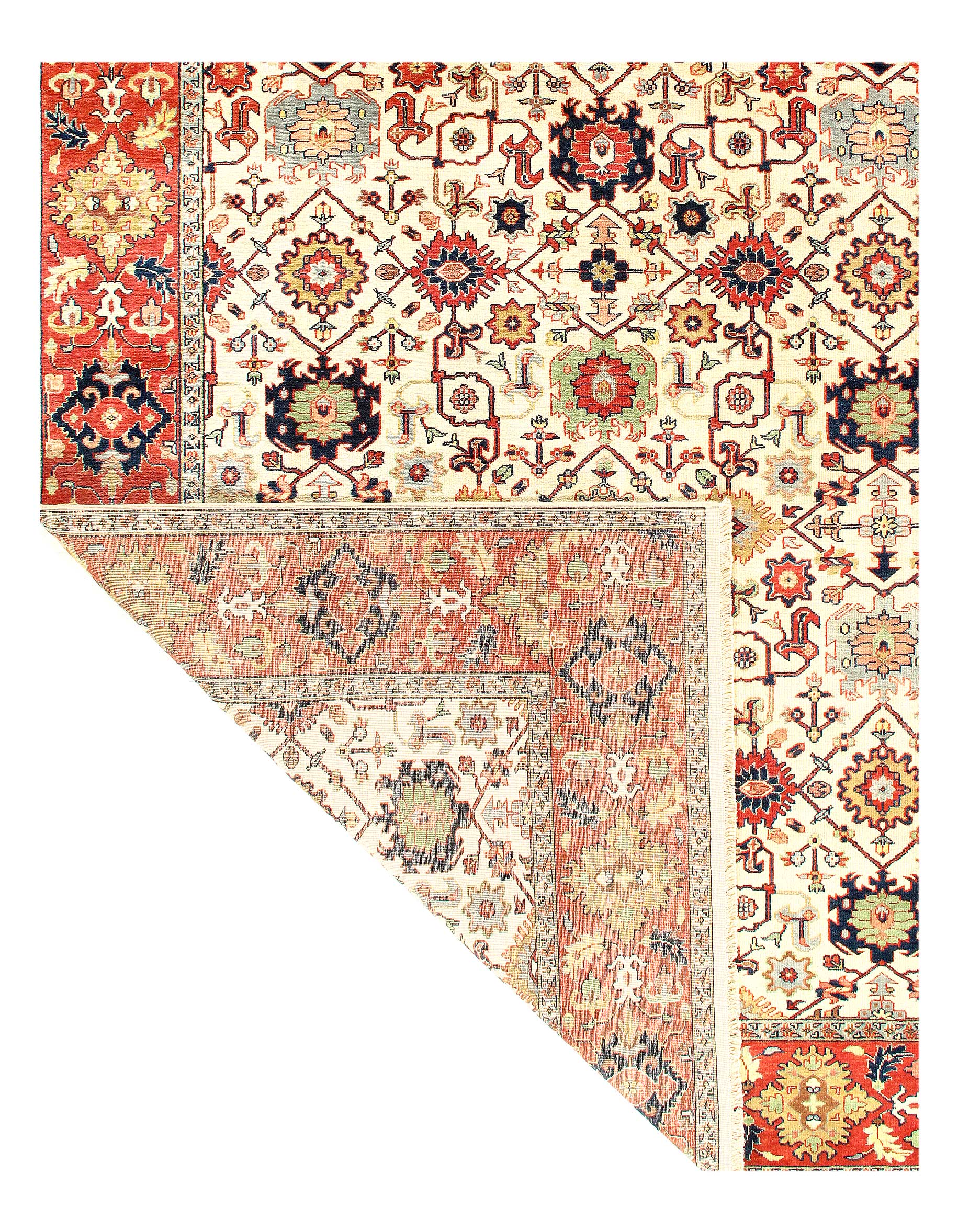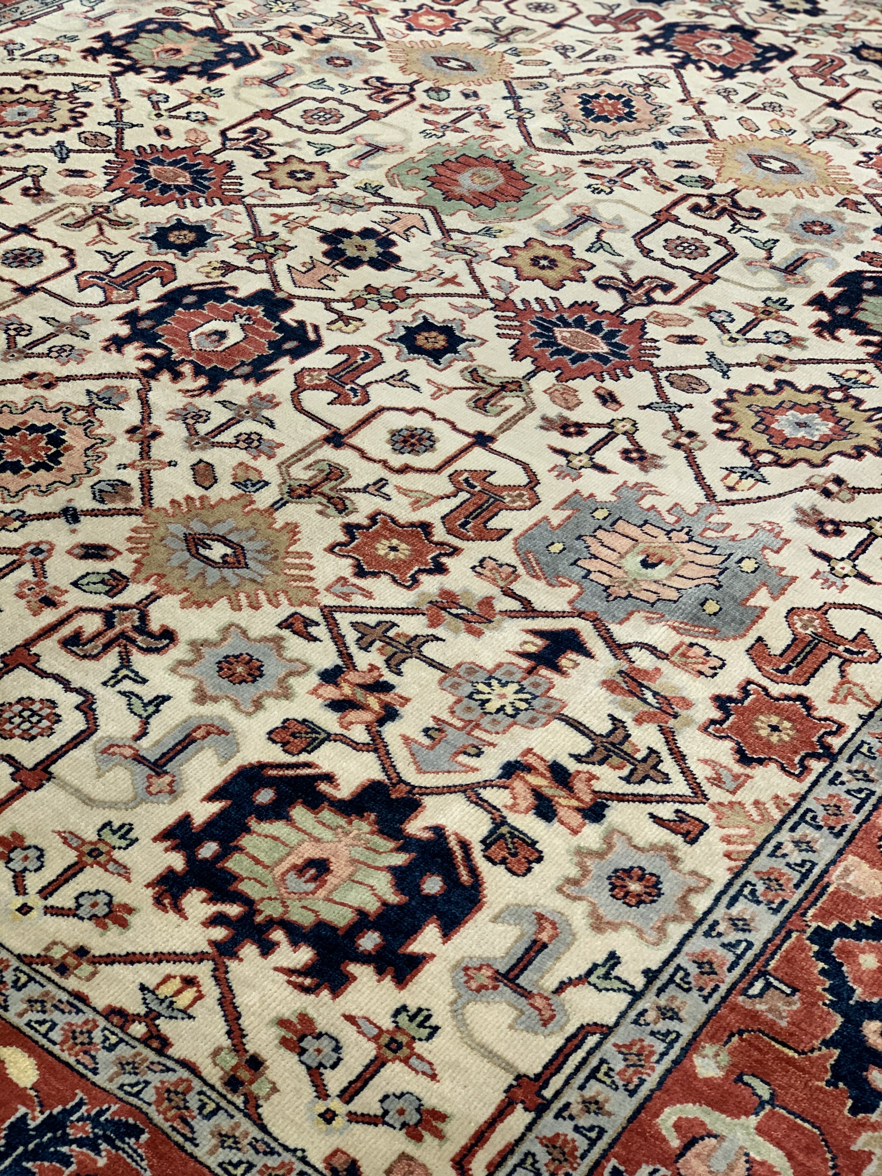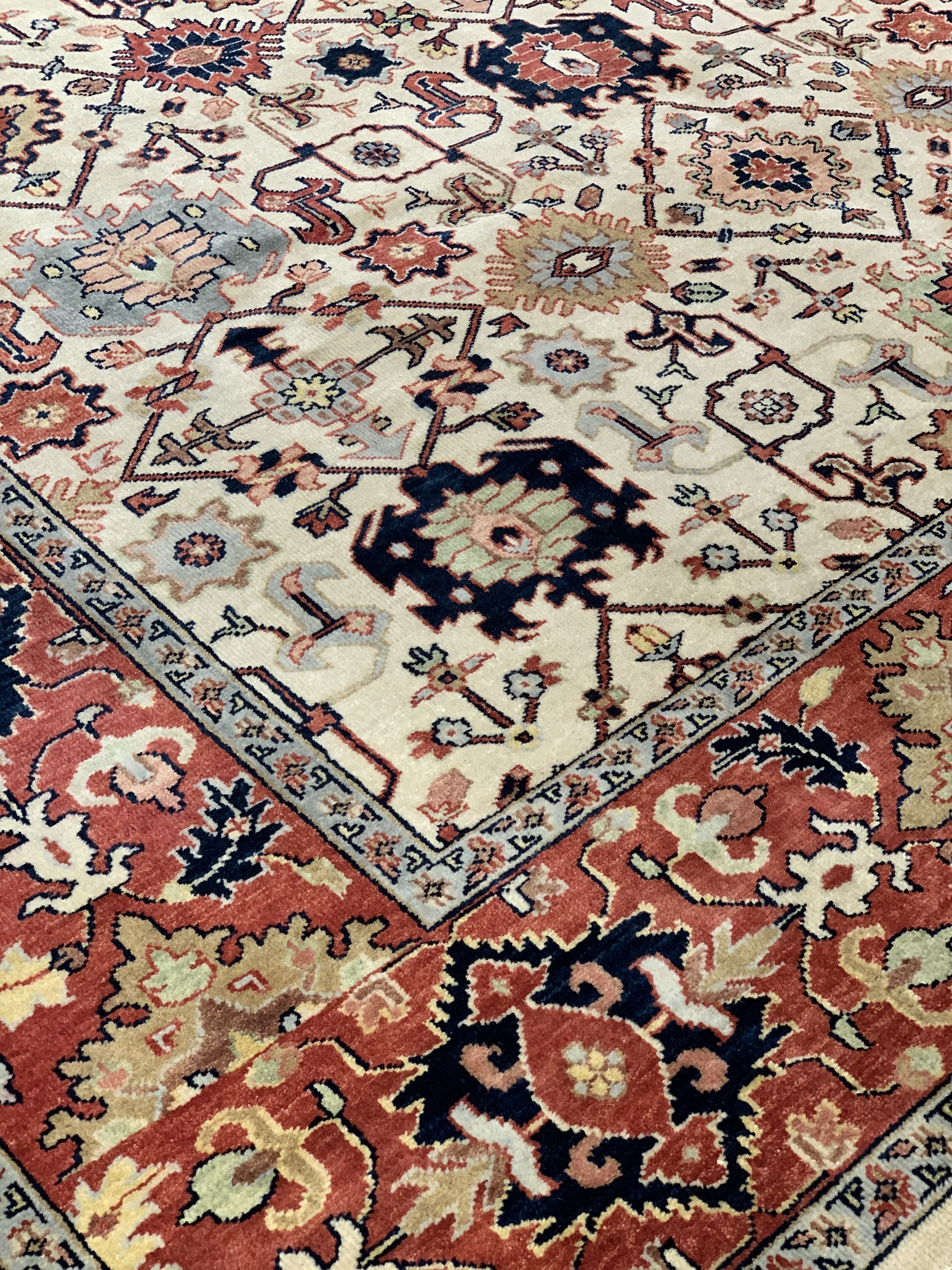 Serapi design rug. Handmade and hand-knotted in fine lambswool on a cotton foundation. Vegetable dyed hand-spun wool rug.