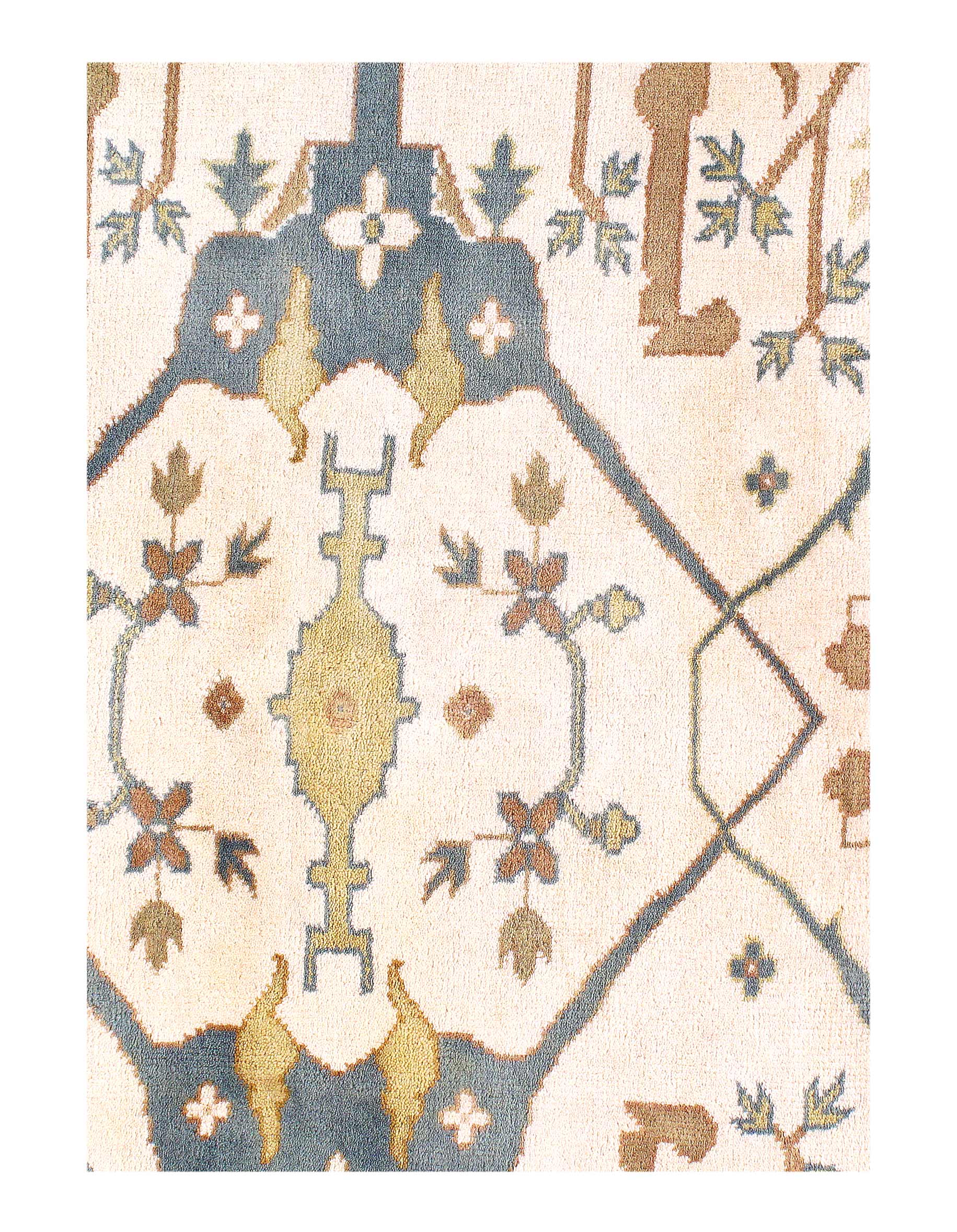 Oushak features the subtle elegance of classic Anatolian designs in tradition and styling of the finest Turkish carpets. These rugs provide a union of pattern, color, and the finest yarns and finishing. Each rug is finished with an antique wash that gives these rugs an authentic Oushak look. These rugs are hand knotted using the finest 100% New Zealand wool. The beauty of these rugs will enhance any interior decor.