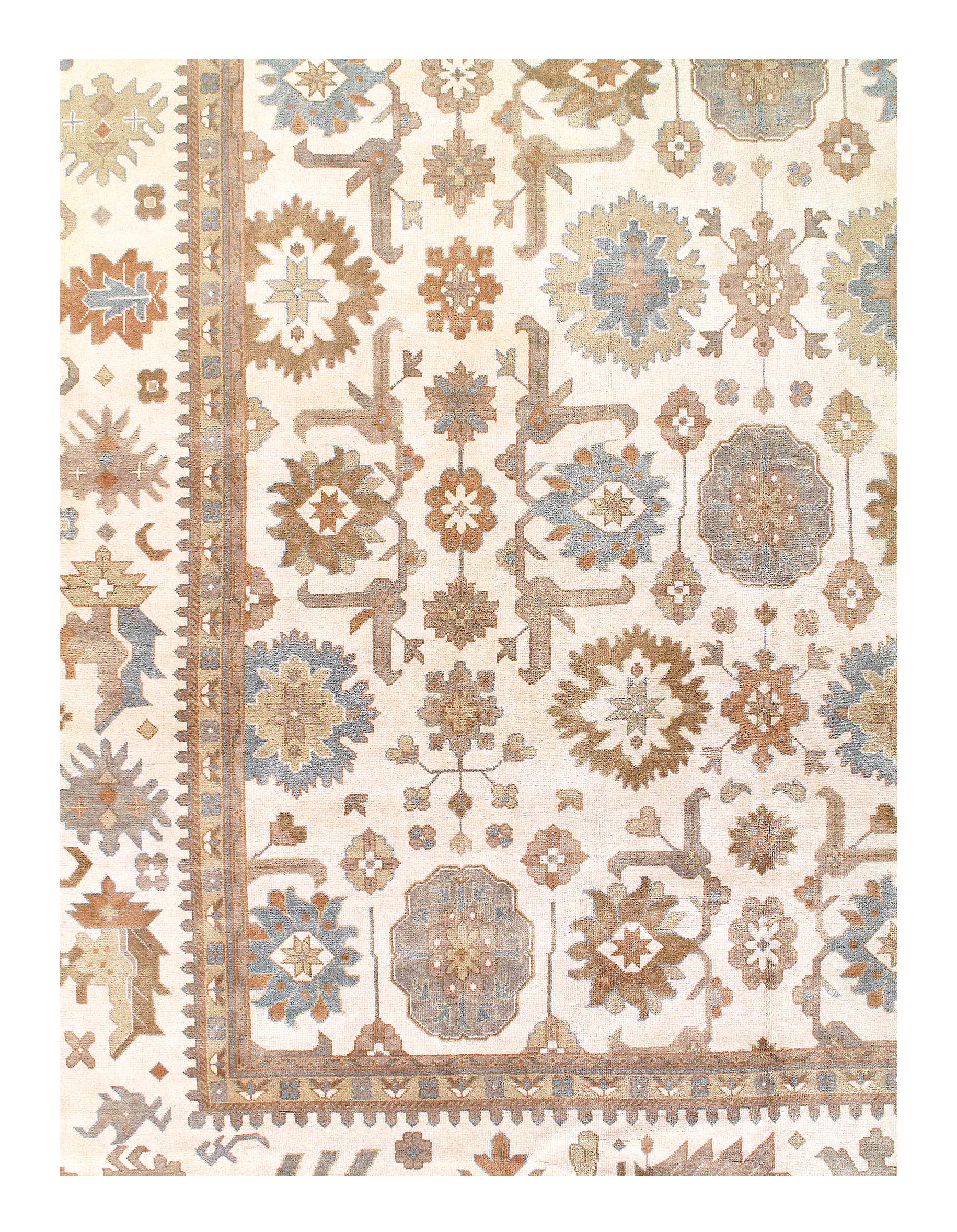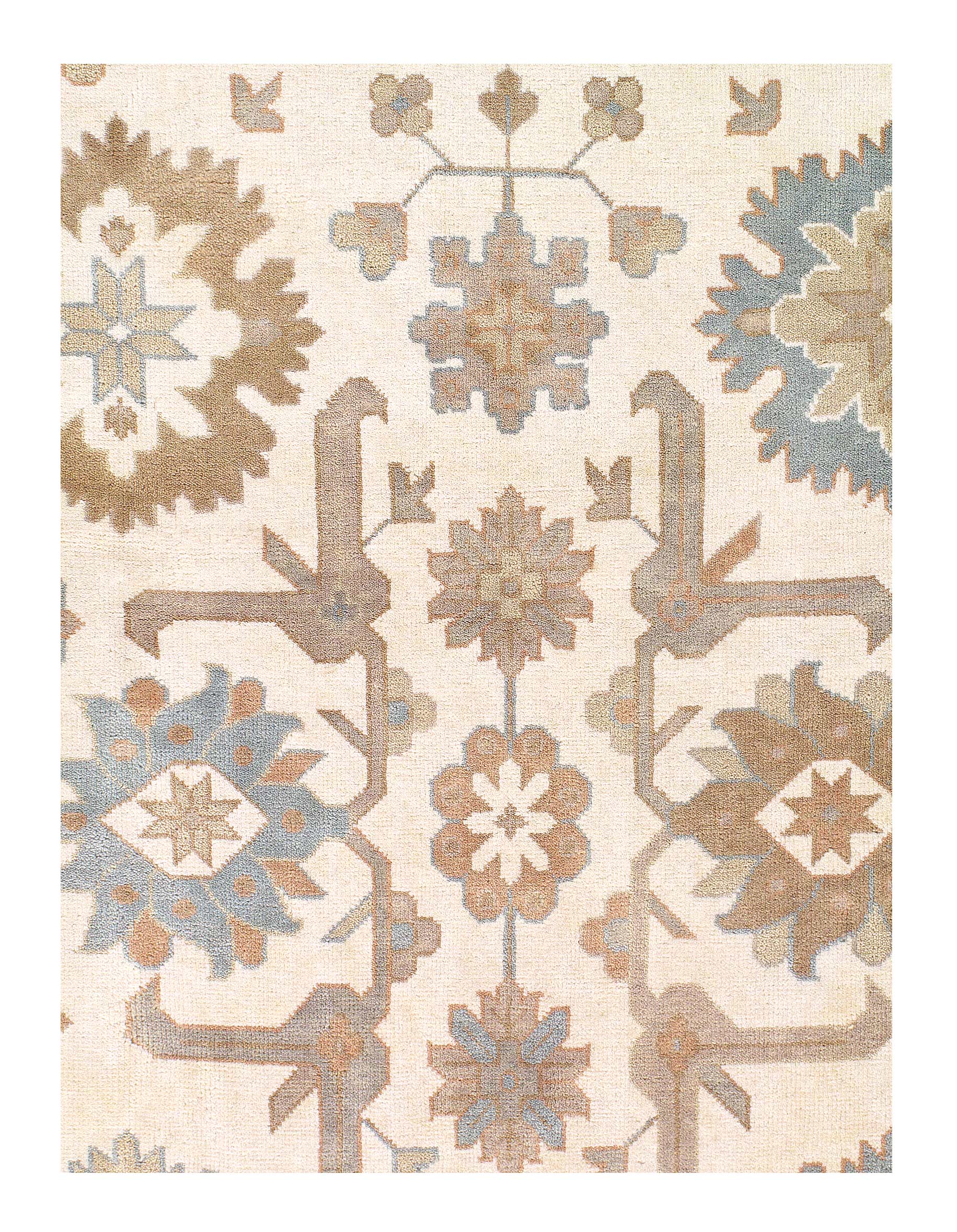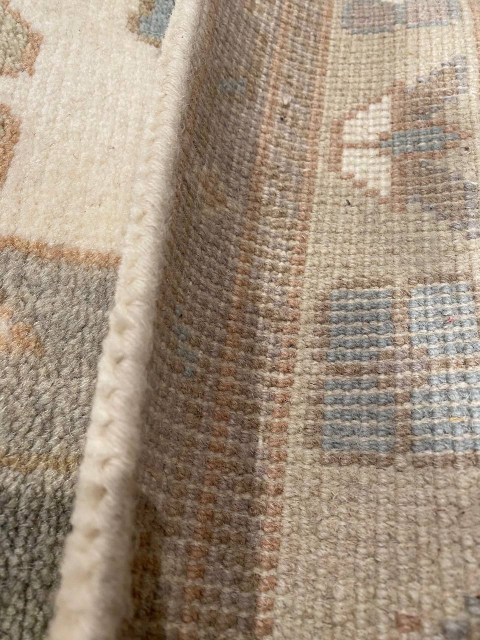 Oushak features the subtle elegance of classic Anatolian designs in tradition and styling of the finest Turkish carpets. These rugs provide a union of pattern, color, and the finest yarns and finishing. Each rug is finished with an antique wash that gives these rugs an authentic Oushak look. These rugs are hand knotted using the finest 100% New Zealand wool. The beauty of these rugs will enhance any interior decor.