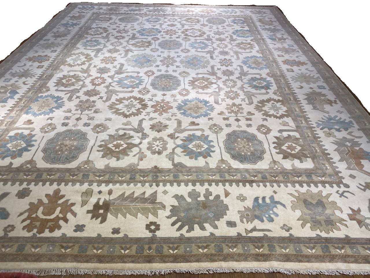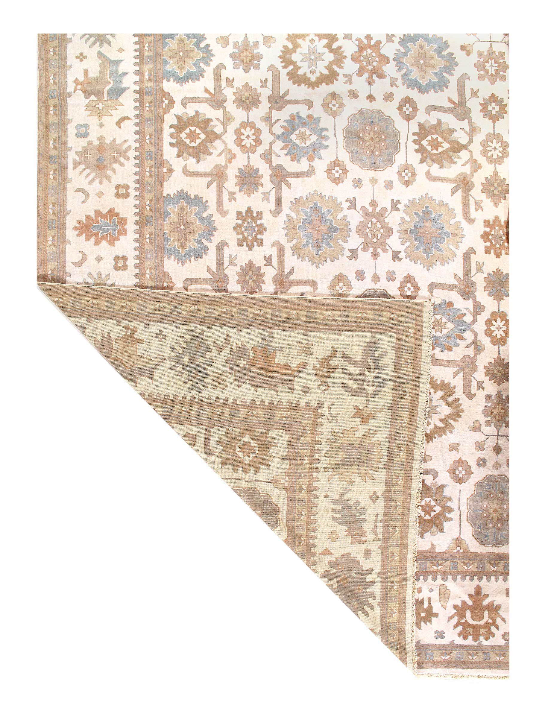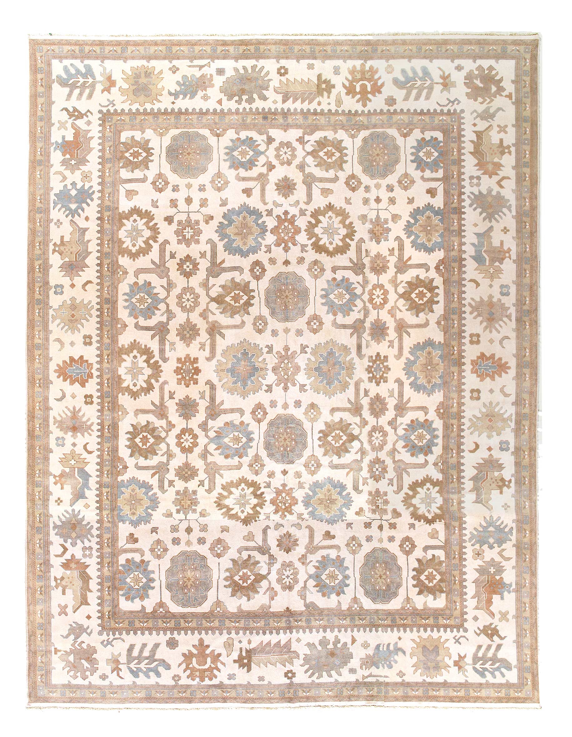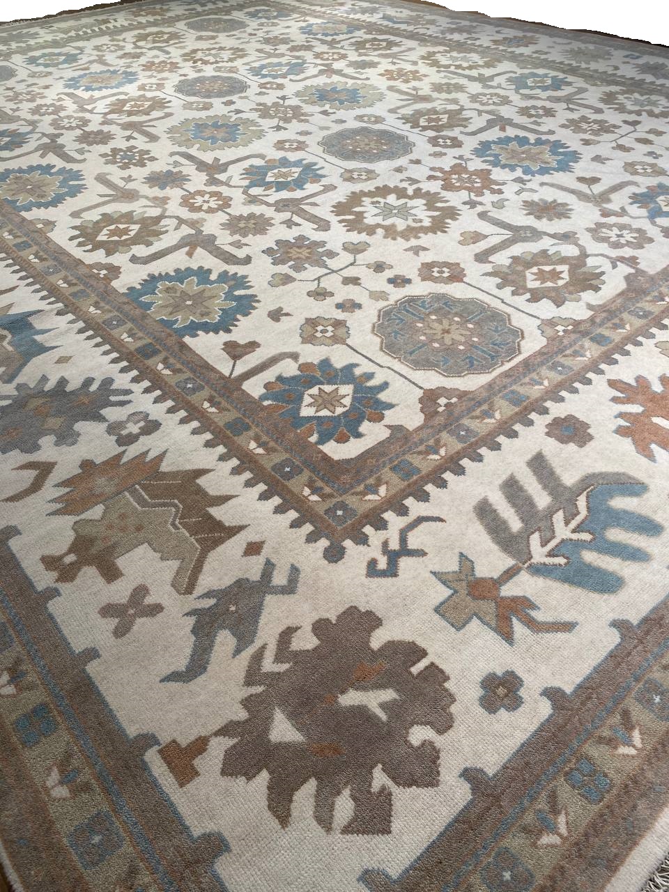 Oushak features the subtle elegance of classic Anatolian designs in tradition and styling of the finest Turkish carpets. These rugs provide a union of pattern, color, and the finest yarns and finishing. Each rug is finished with an antique wash that gives these rugs an authentic Oushak look. These rugs are hand knotted using the finest 100% New Zealand wool. The beauty of these rugs will enhance any interior decor.