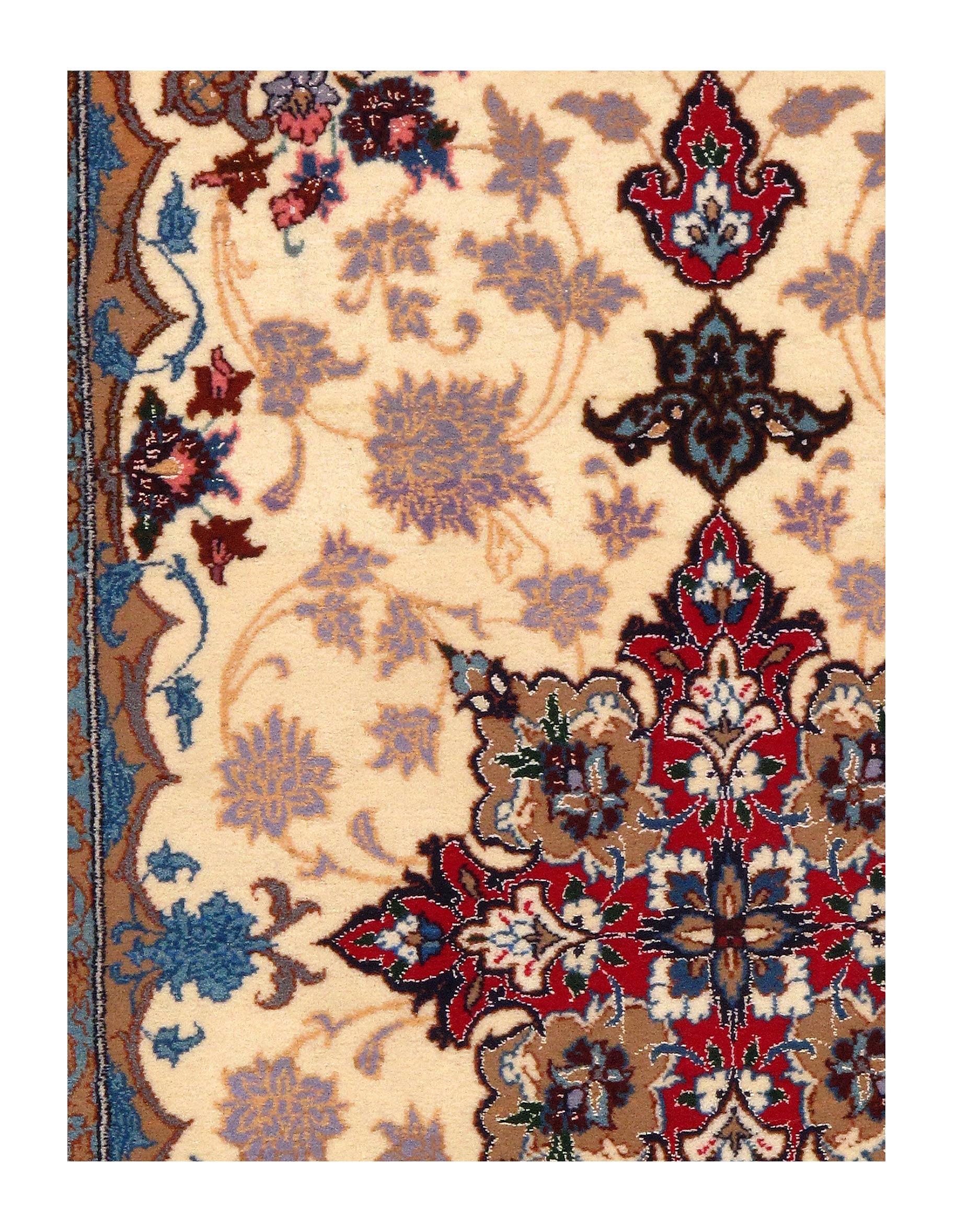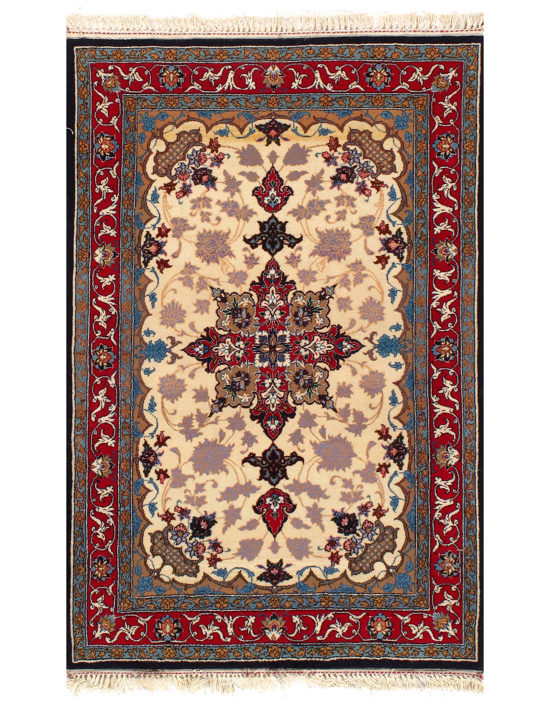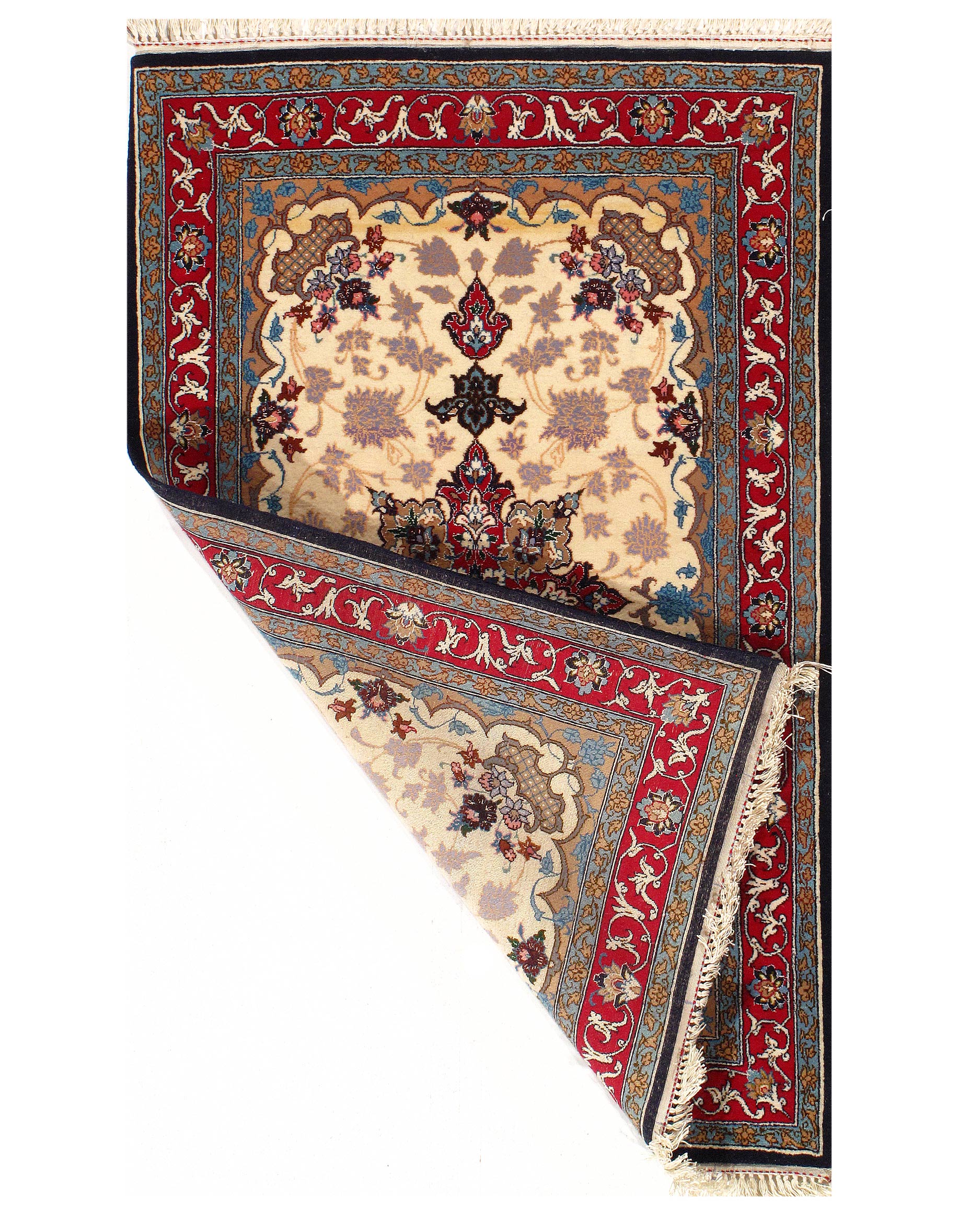 The Isfahan rugs are made with exceptionally good quality of wool & silk. They use traditional motifs inspired by architectural tiles that once decorated the historical buildings from which these rugs originated in. When it comes to high class designs the composition, patterns, and materials of Isfahan meets those expectations. The motifs usually consist of medallions with palmetts and also figural motifs. Isfahan rugs have an extremely high knot density and are woven with silk and golden threads, which give them their luxurious look.