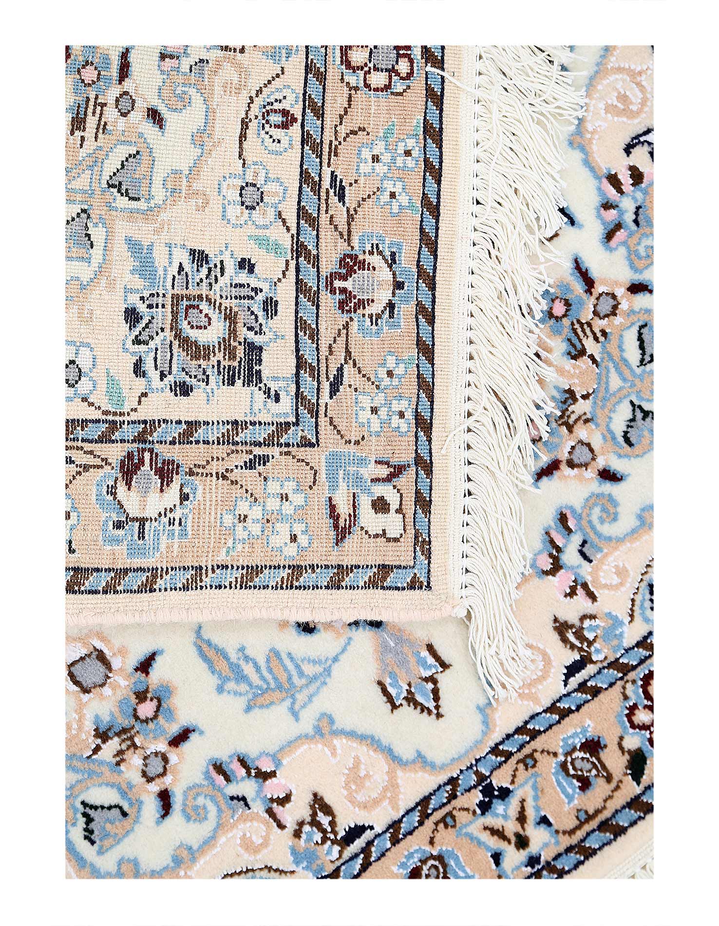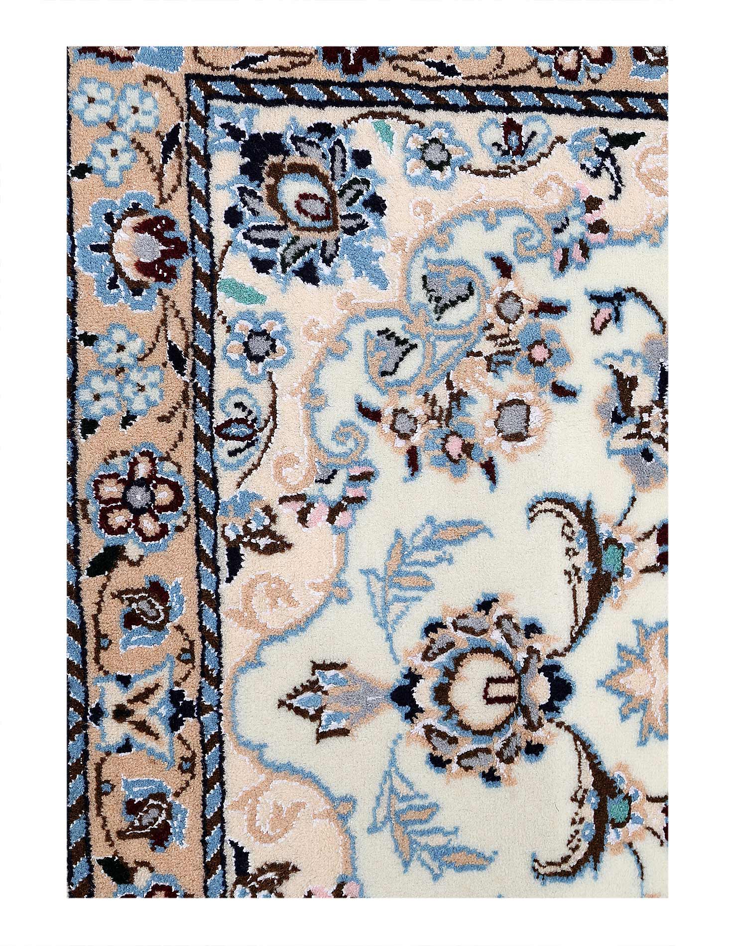 Hand knotted Nain rug ,Original Fine Persian Rug. Handmade Hand-knotted Silk & wool on a Silk .Classical combination of colors, cream ground .